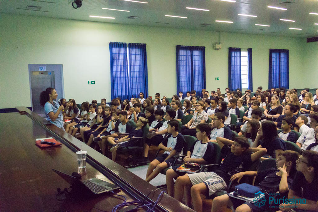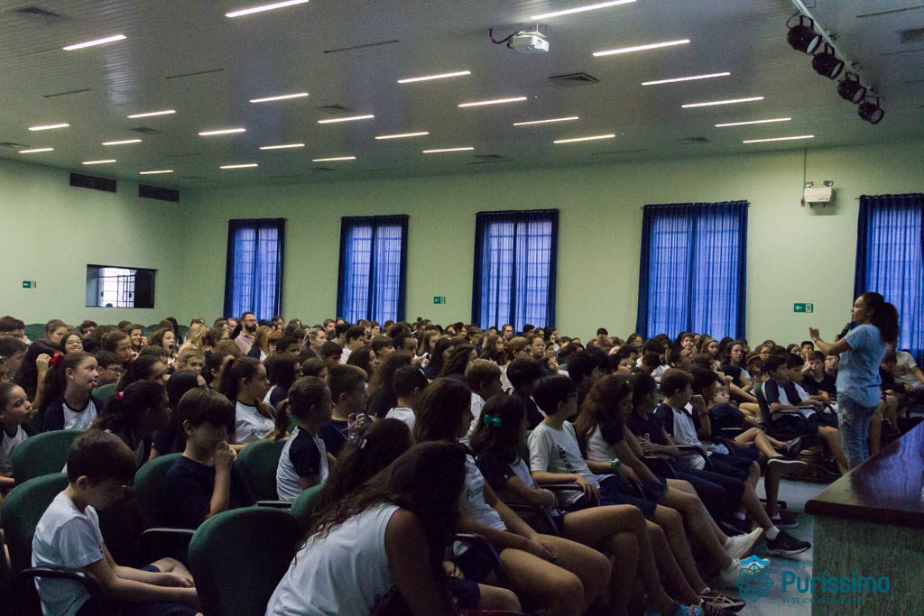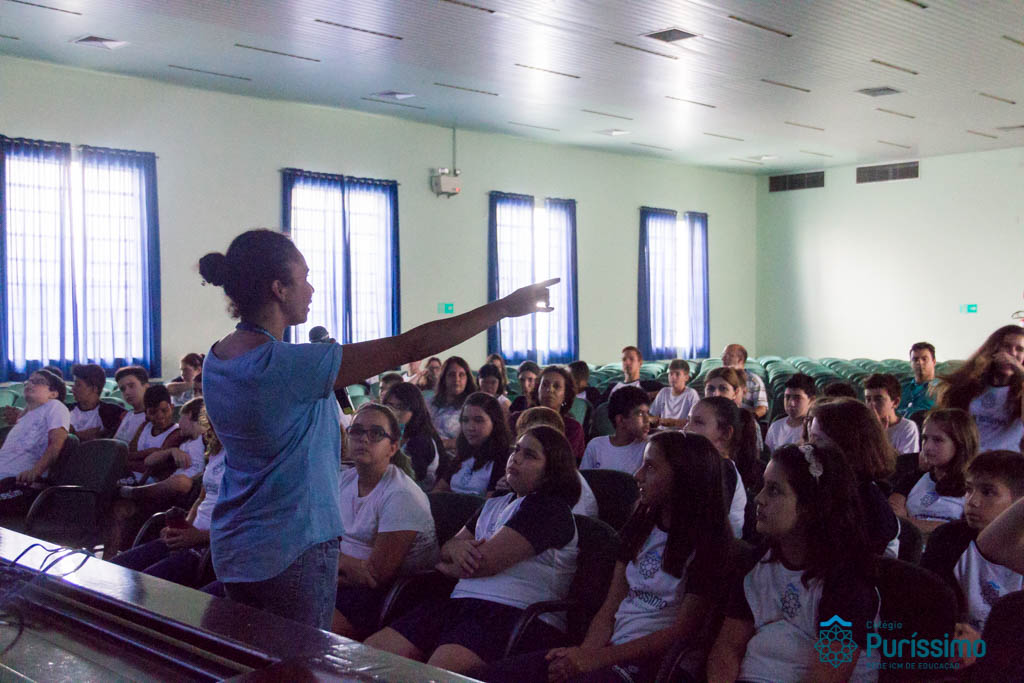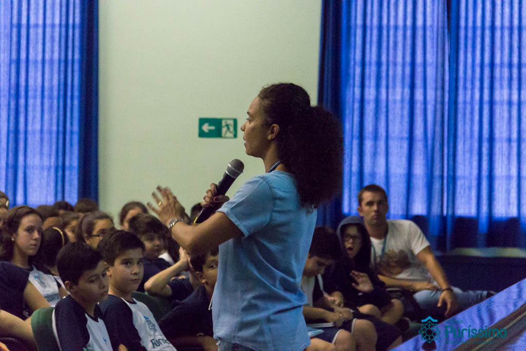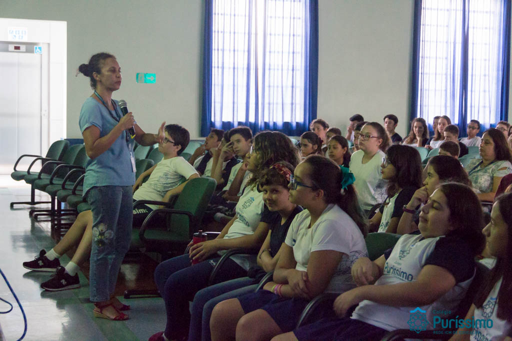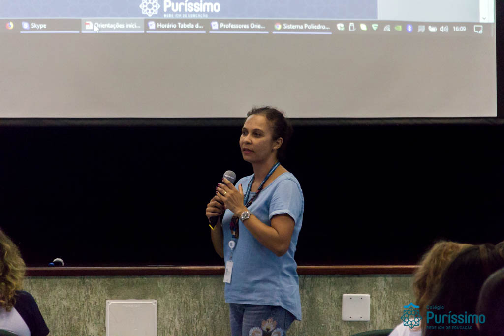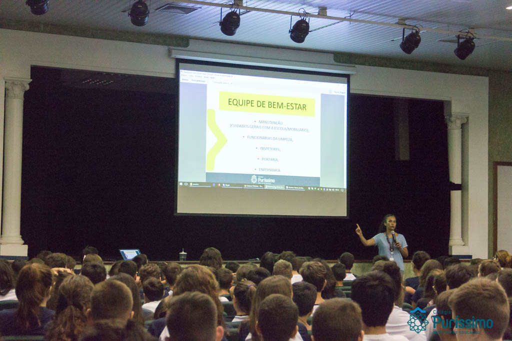 Nesta segunda-feira, dia 29 de Janeiro, a coordenadora do Ensino Fundamental II, Janaina Cortinhas, conversou um pouco com os alunos dos 6ºs a 9ºs anos sobre algumas orientações pedagógicas para esse ano letivo.