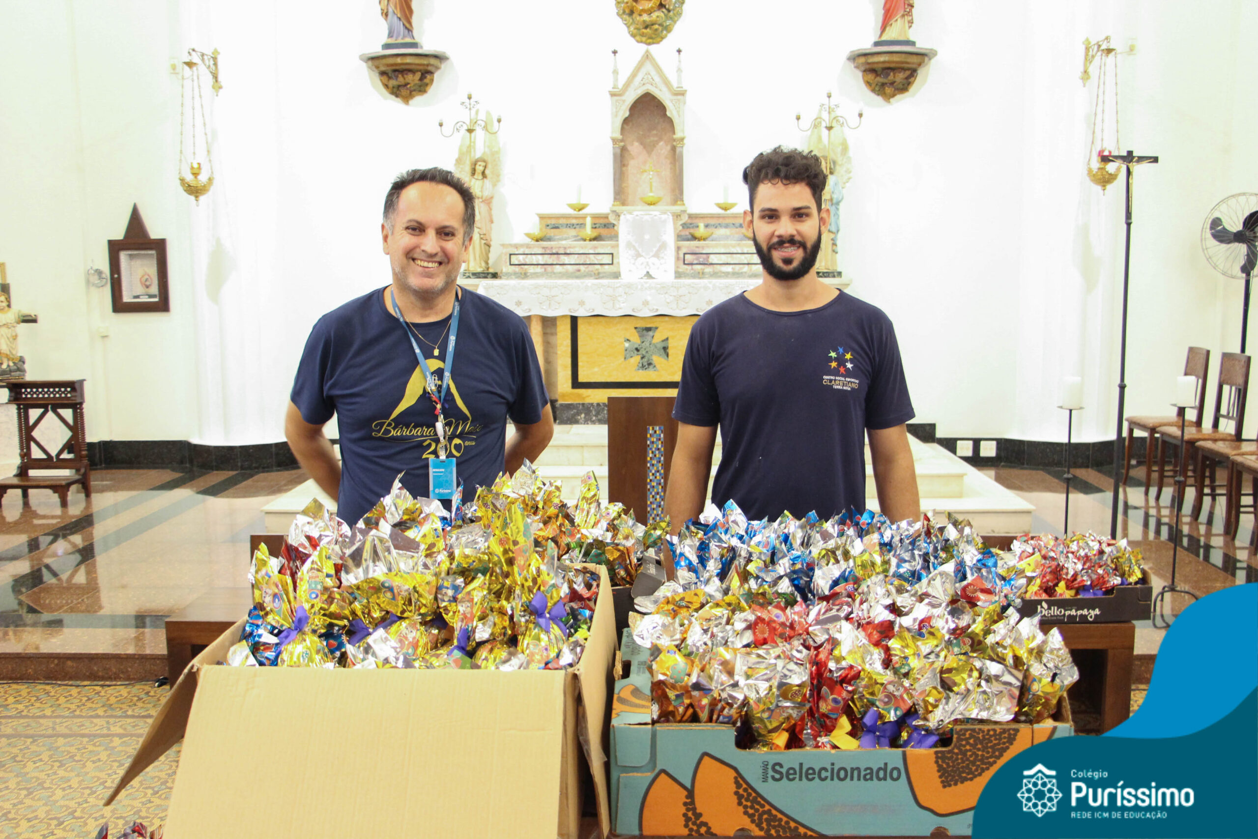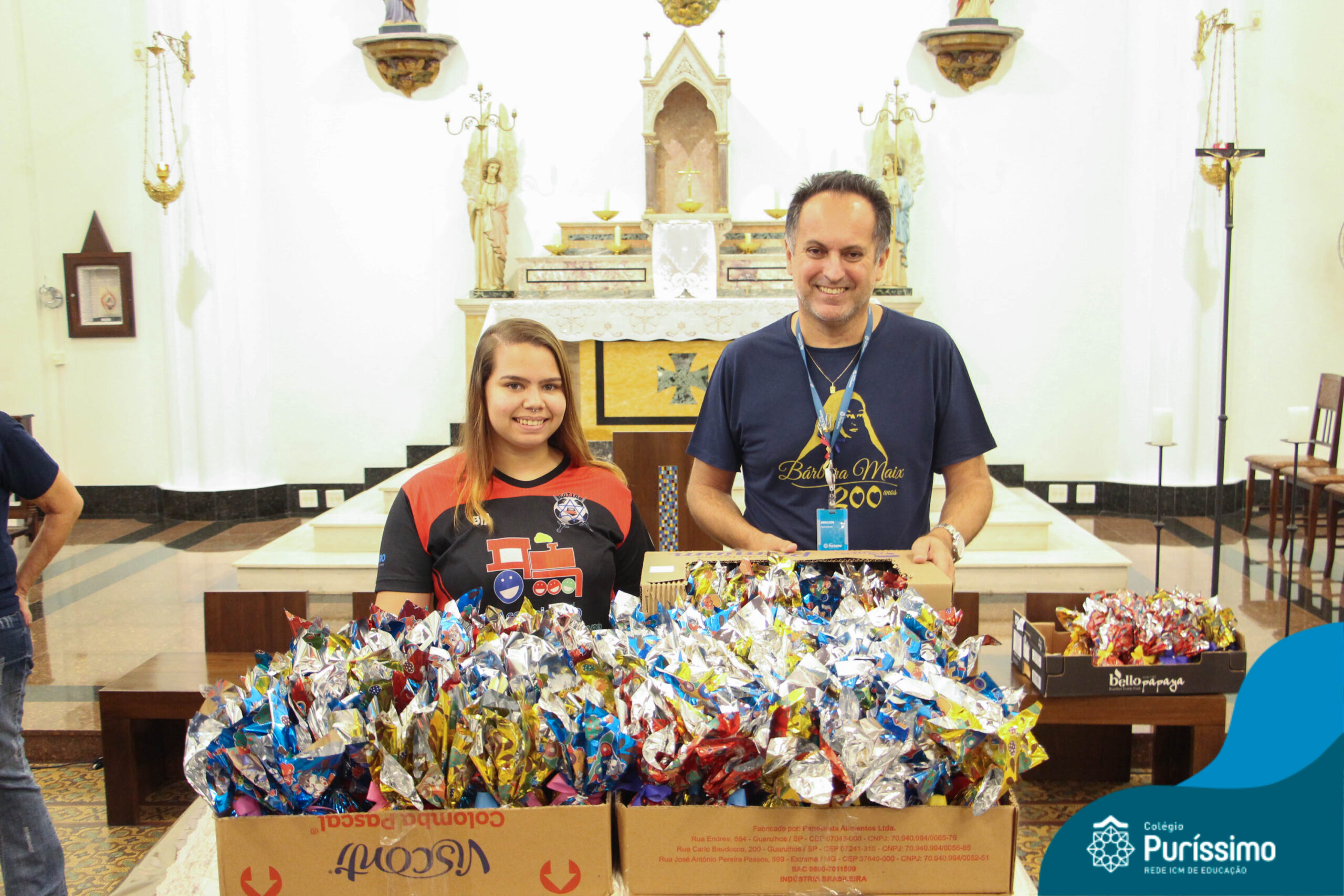 Ao todo foram arrecadados 965 ovos de Páscoa! Desses, 315 foram doados à Pastoral da Criança, 199 para o Centro Social e Esportivo Claretiano, 120 para a Estação do Bem e 331 para o Vicentinos.