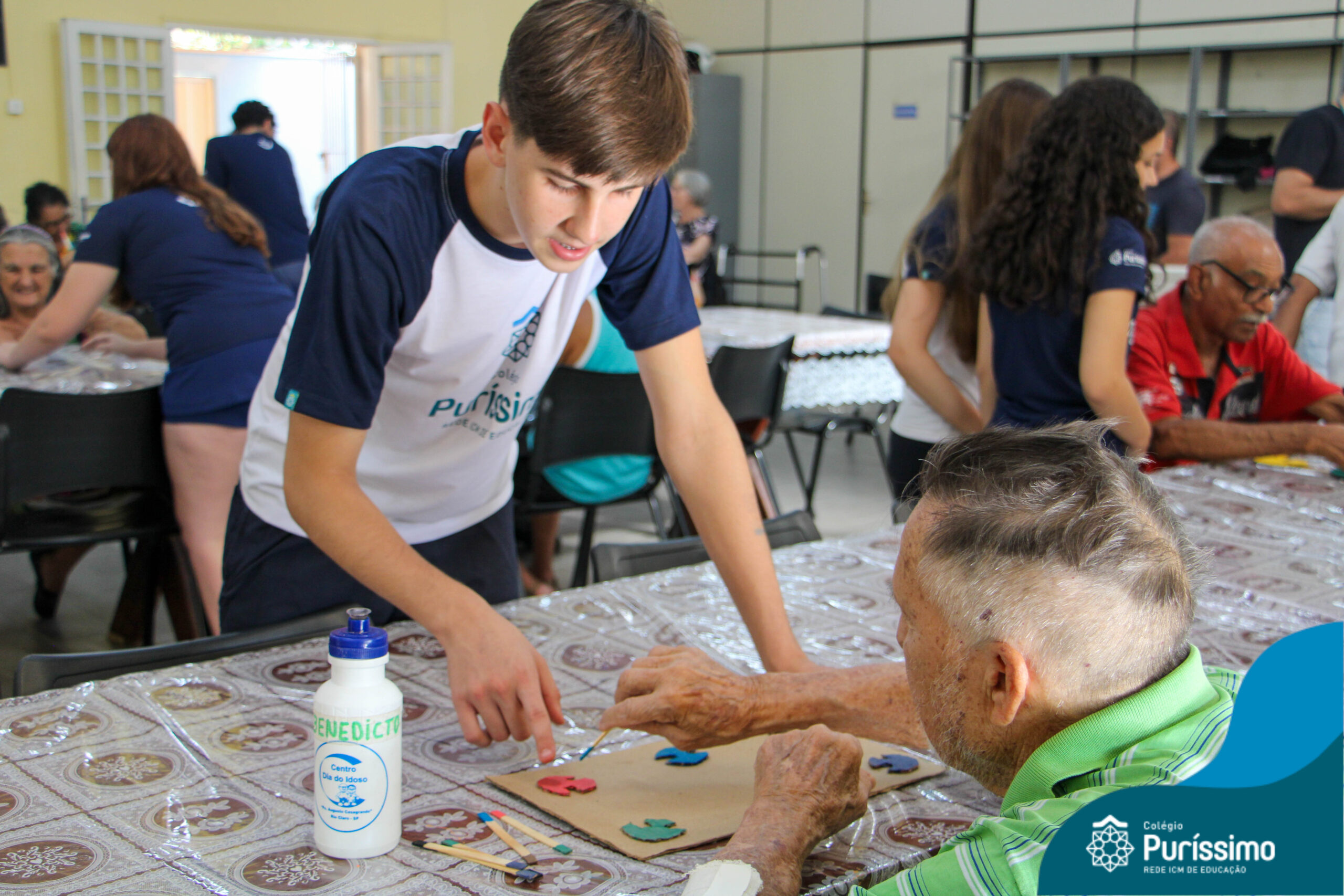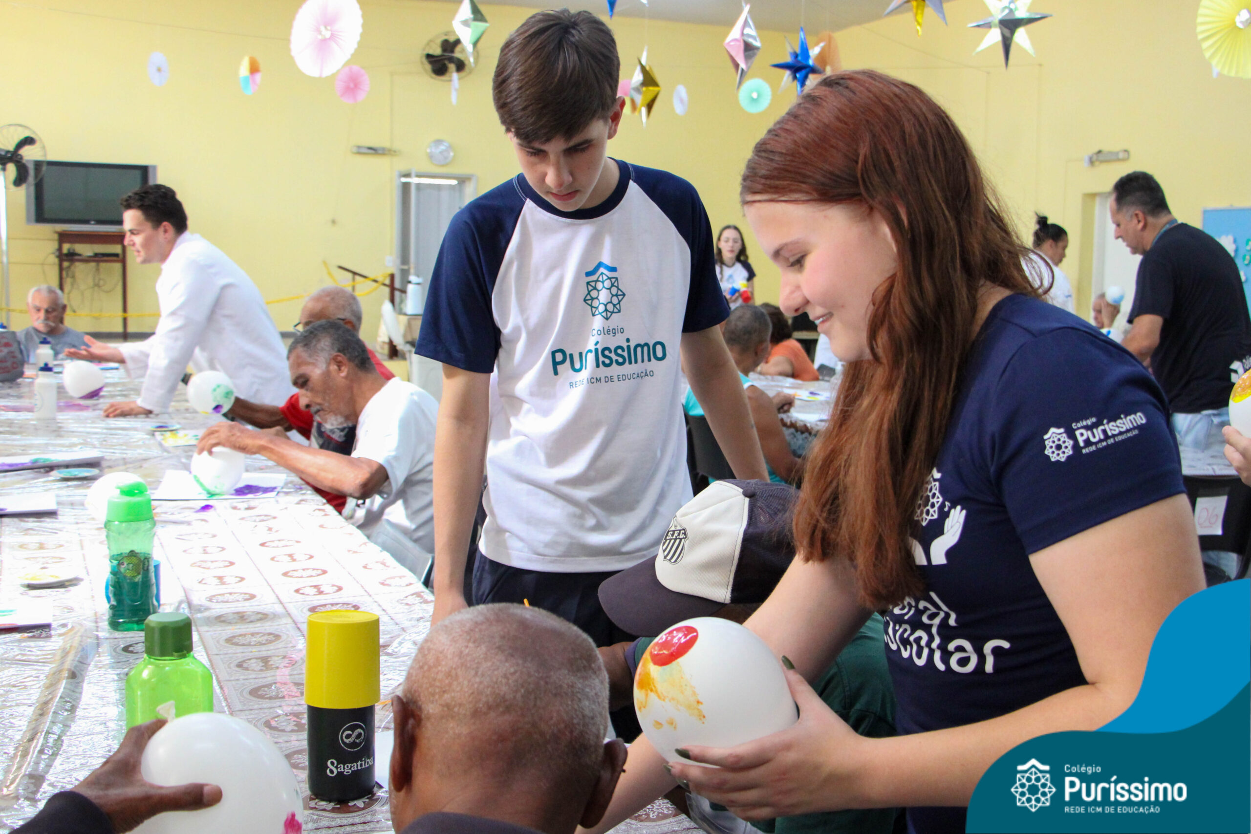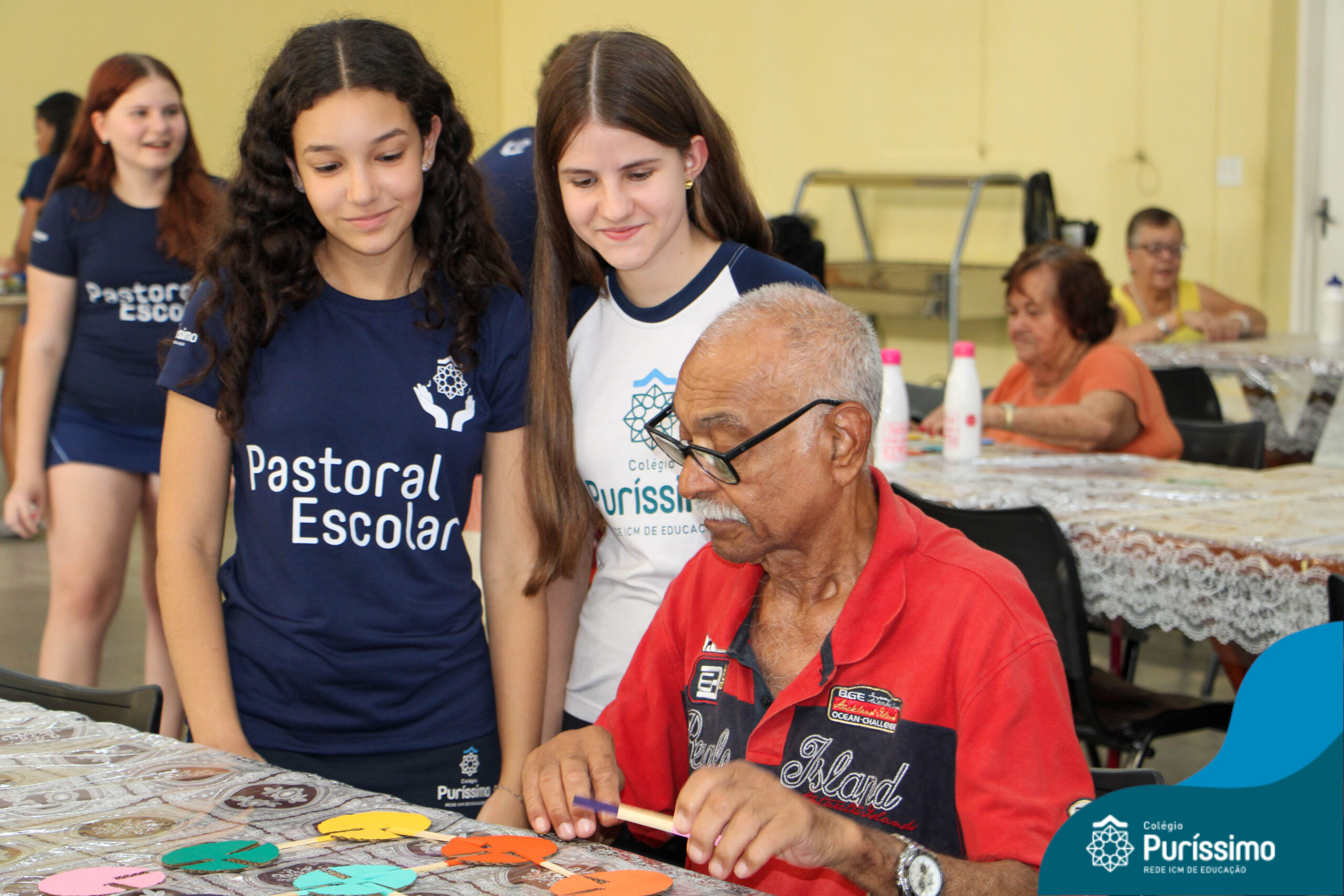 Muito mais que um dia, o mês de Abril foi marcado pelas atividades que os alunos da Pastoral Escolar realizaram no Centro do Idoso Pe. Augusto Casagrande. Durante o mês, eles puderam conviver, ensinar e aprender com as pessoas que frequentam a instituição por meio de atividades lúdicas.