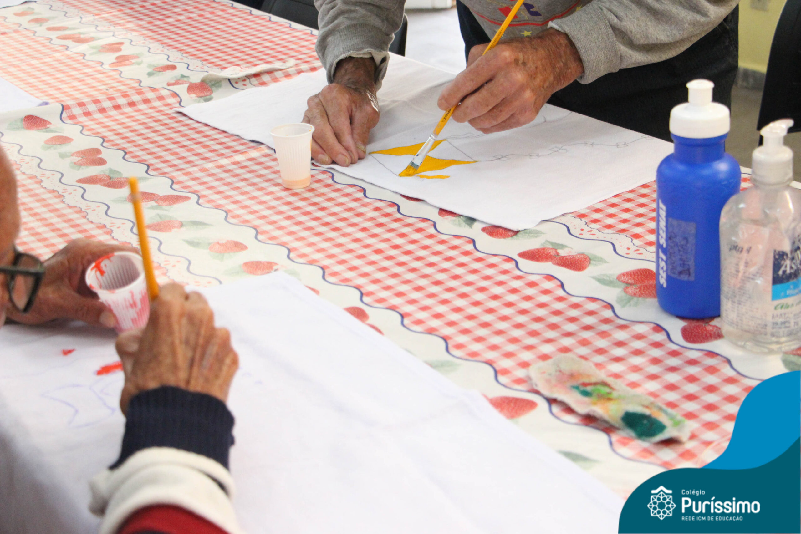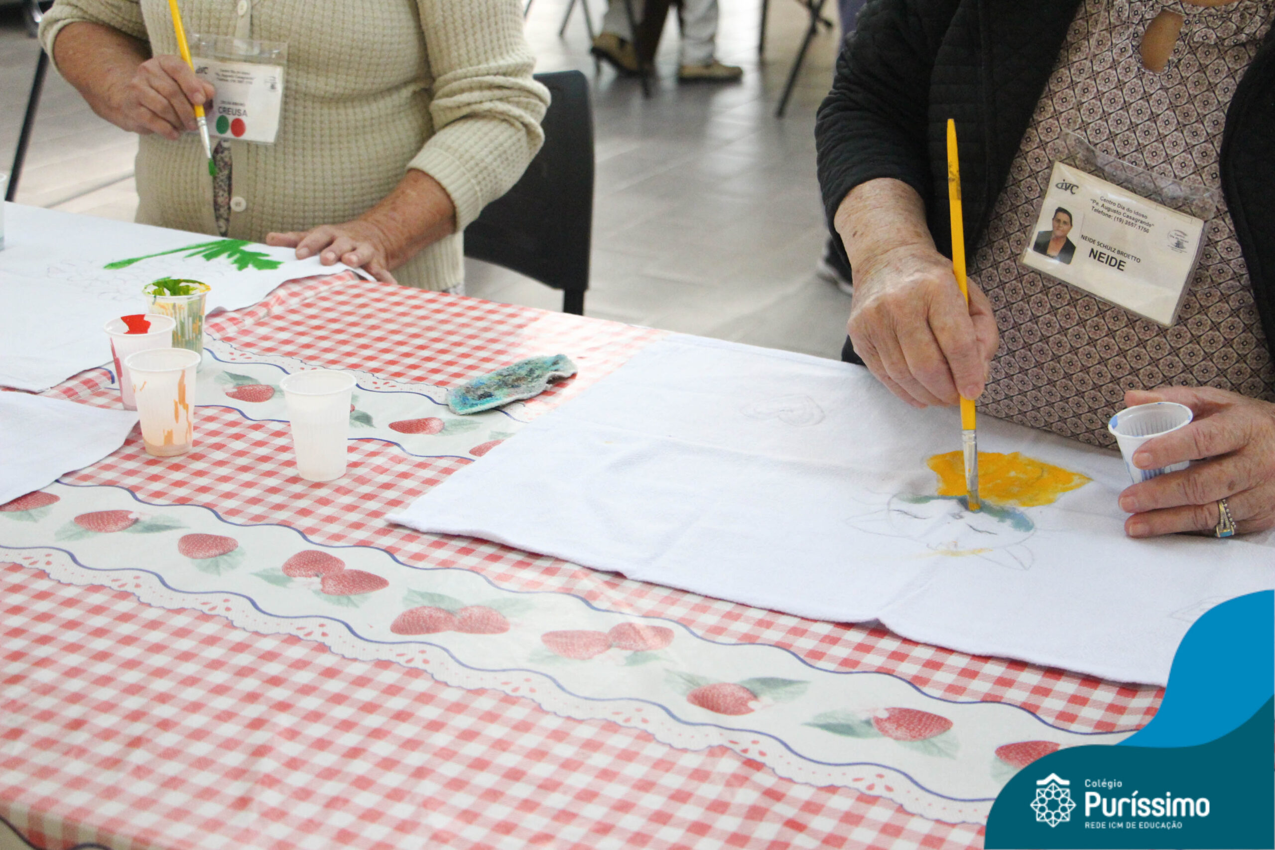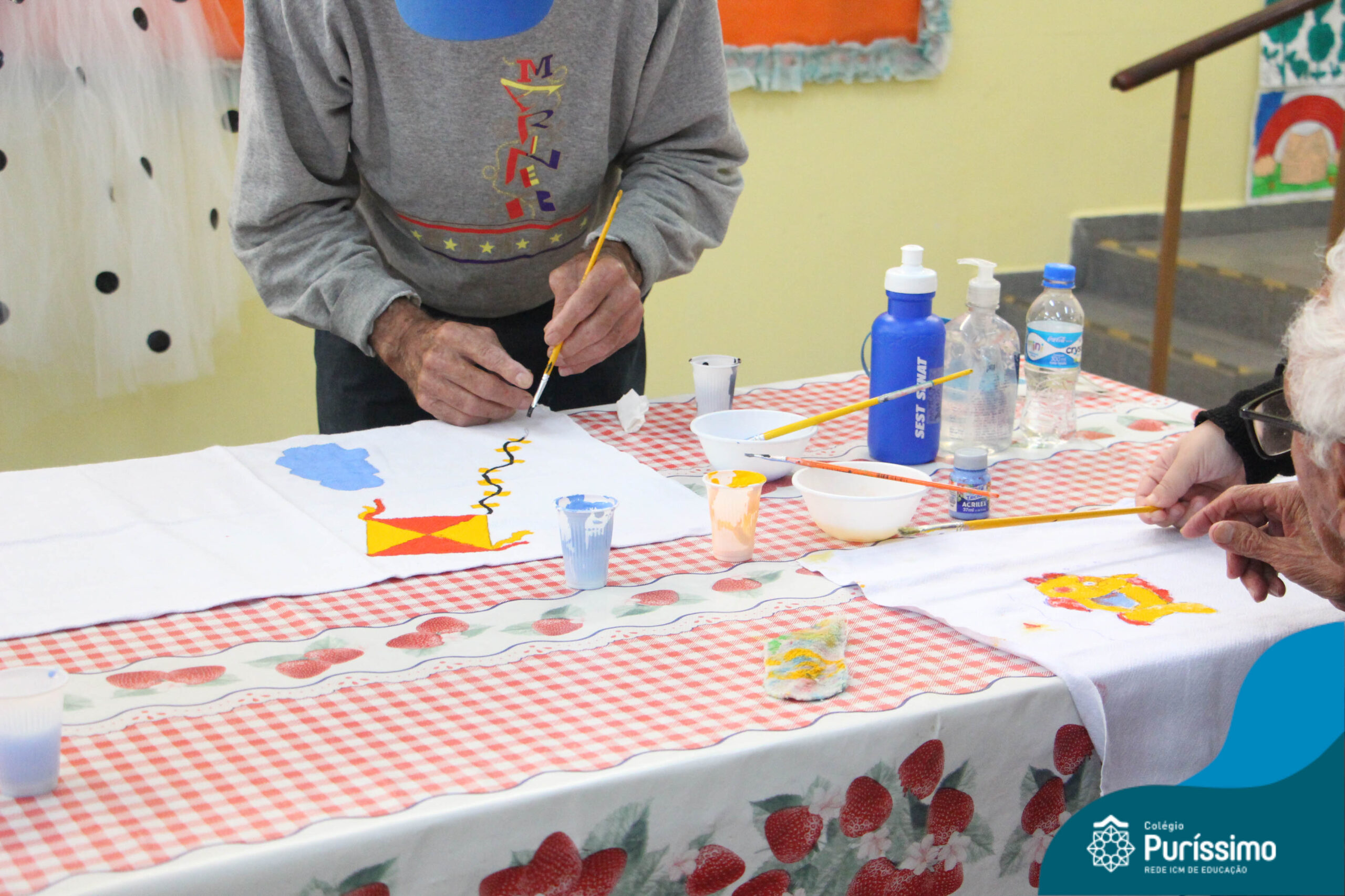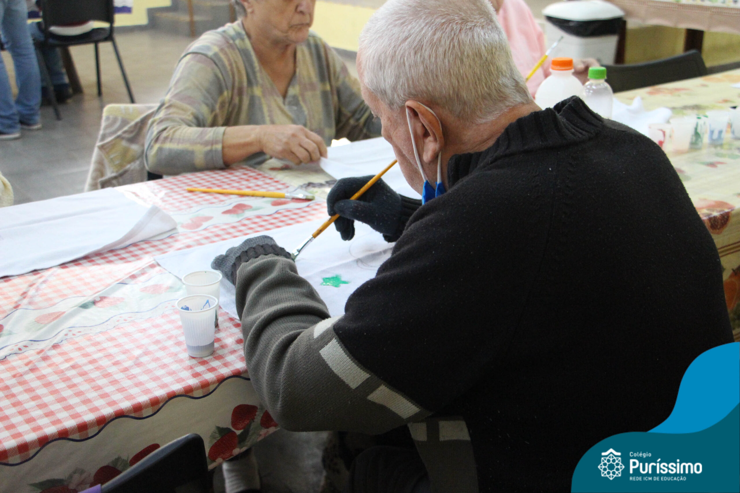 A visita foi preparada inicialmente com os preparativos de marcação dos desenhos nos panos de prato e no dia da visita os idosos puderam conversar, pintar e levar a lembrança que foi confeccionada com muito carinho. Os idosos que tinham um pouco de dificuldade, contaram com a colaboração dos alunos.
