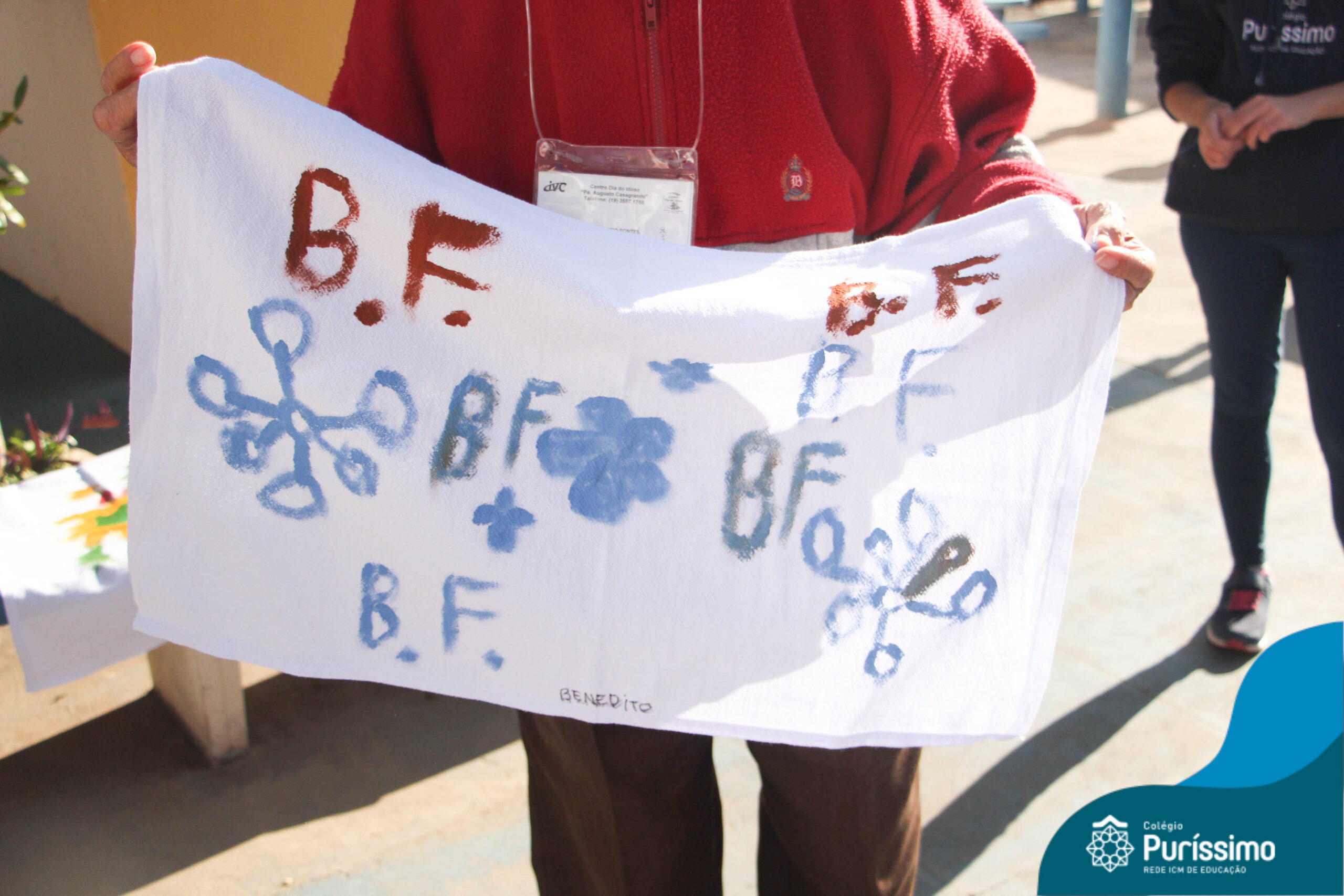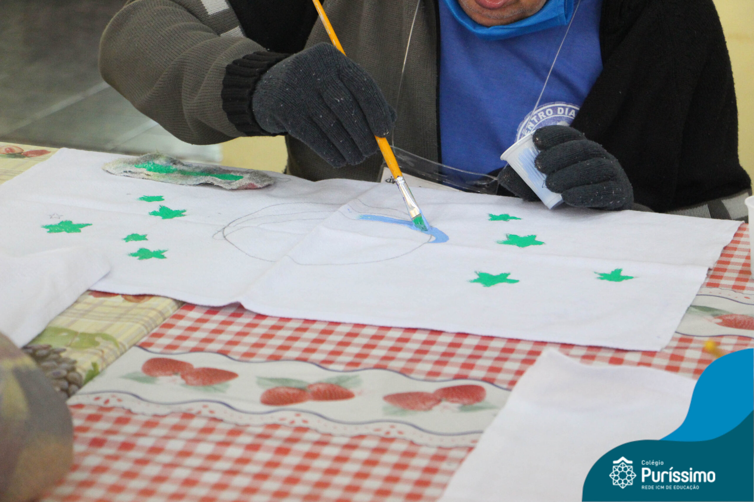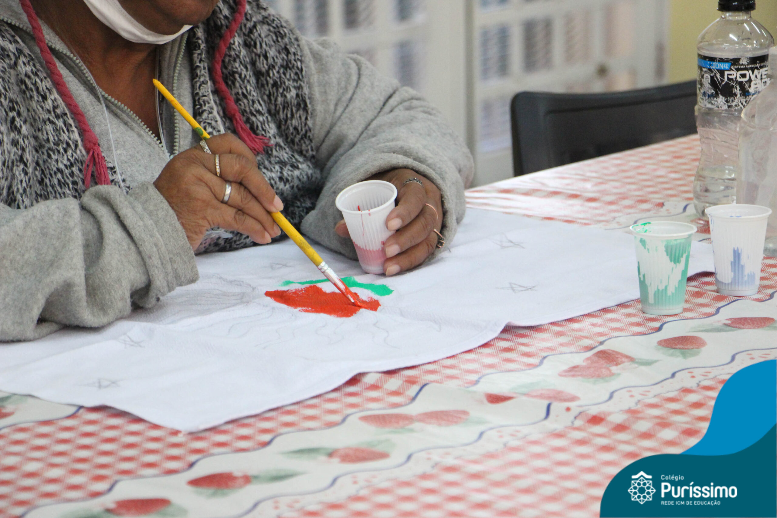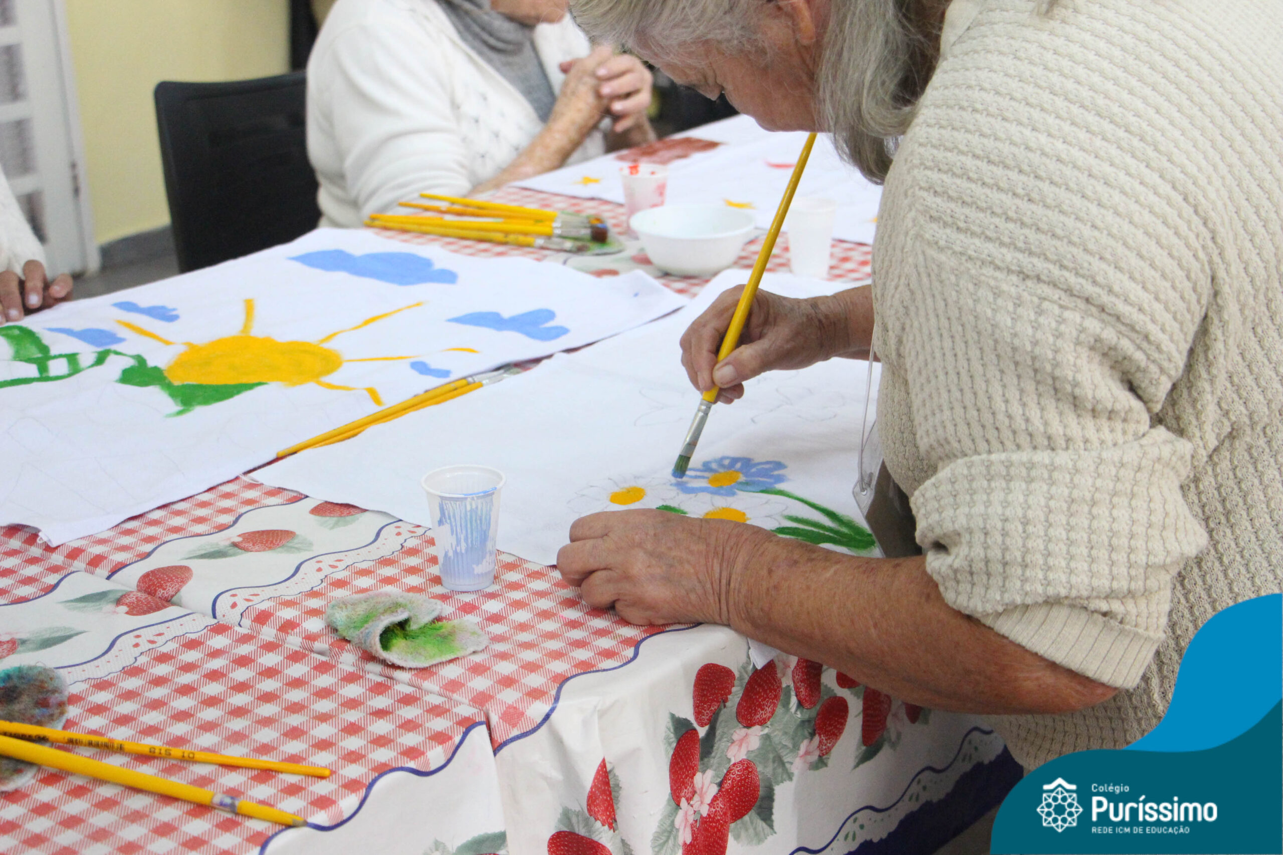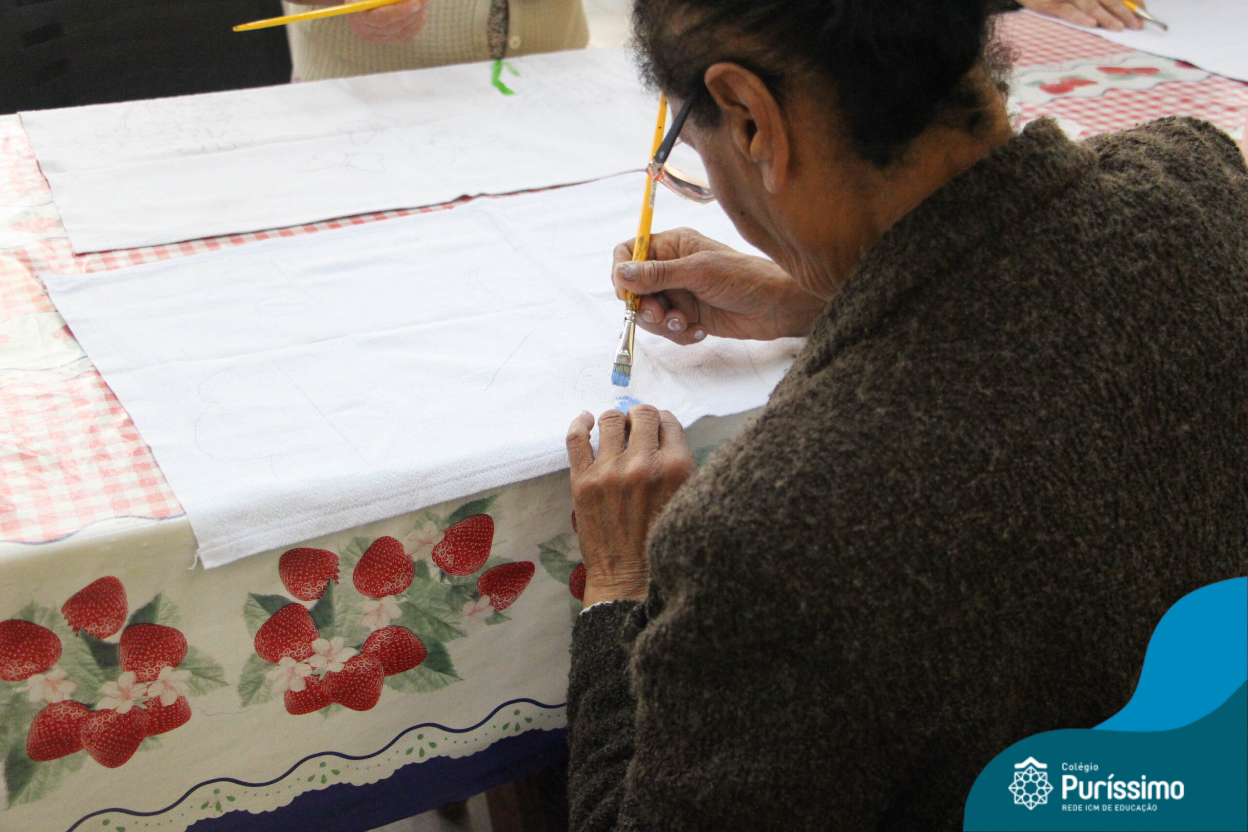 A visita foi preparada inicialmente com os preparativos de marcação dos desenhos nos panos de prato e no dia da visita os idosos puderam conversar, pintar e levar a lembrança que foi confeccionada com muito carinho. Os idosos que tinham um pouco de dificuldade, contaram com a colaboração dos alunos.
