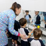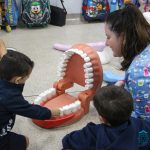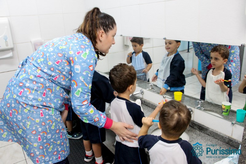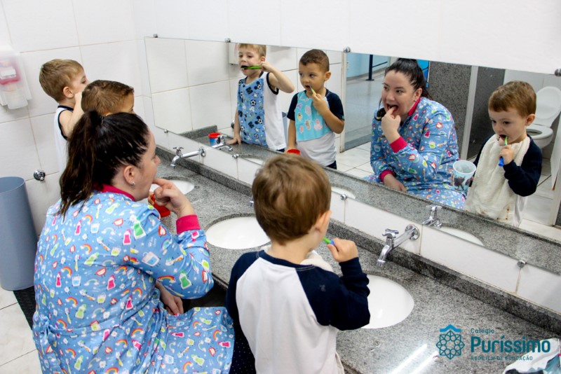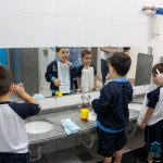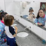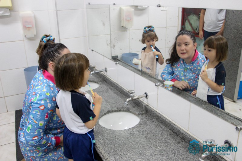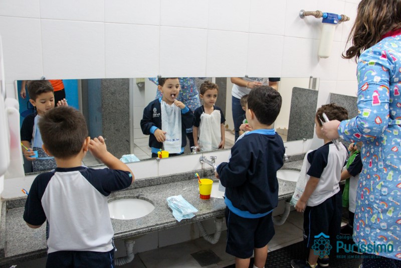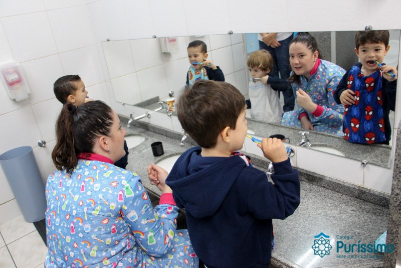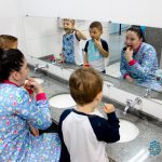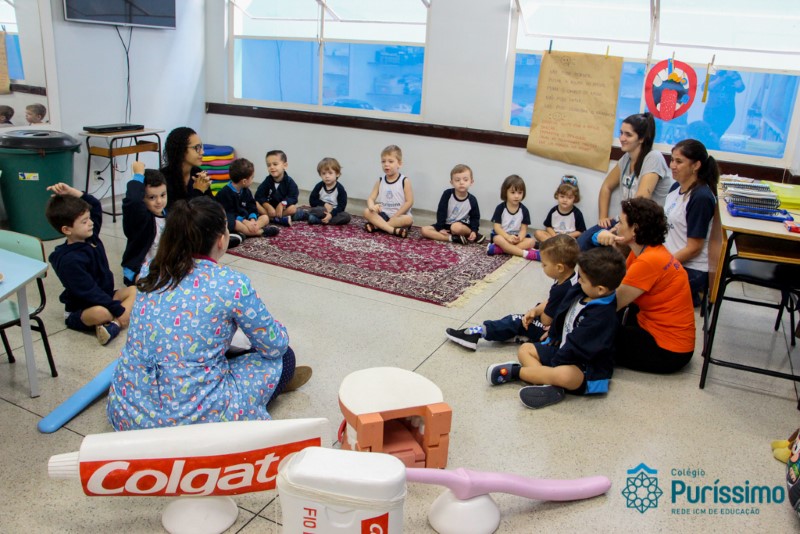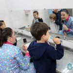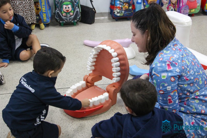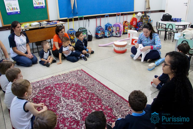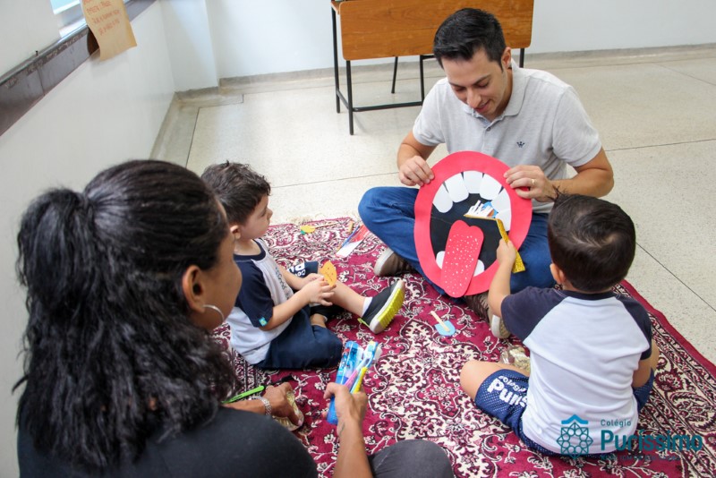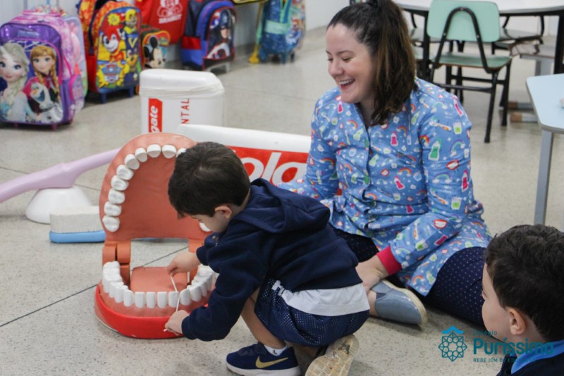 Na semana passada, a dentista Mariana da Fonseca Salomão, mãe do aluno Otávio do Maternal II M e o dentista, Bruno de Souza Batista Gomes, pai do aluno Filipi, do Maternal II, vieram ao Colégio para conversar com as respectivas turmas e ensinar as crianças sobre a importância de cuidar dos dentes, através de uma boa alimentação e também com a escovação. As crianças manusearam os materiais apresentados e fizeram muitas perguntas, além de aprenderem na prática a escovação correta.