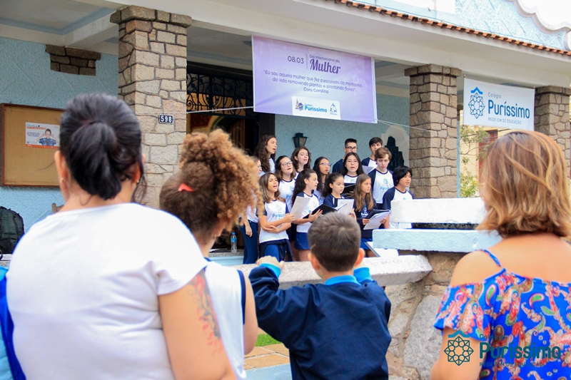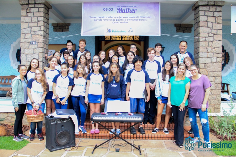Na última sexta-feira, 08 de março, foi comemorado o dia internacional da mulher, sendo assim, os alunos da Pastoral Escolar, em parceria com a APM, elaboraram uma surpresa para as mulheres que passaram em frente aos portões do Colégio, além de distribuírem um bombom com uma mensagem simbólica, o Coral da Juventude ICM encantou a todos na varanda da Casa Azul.