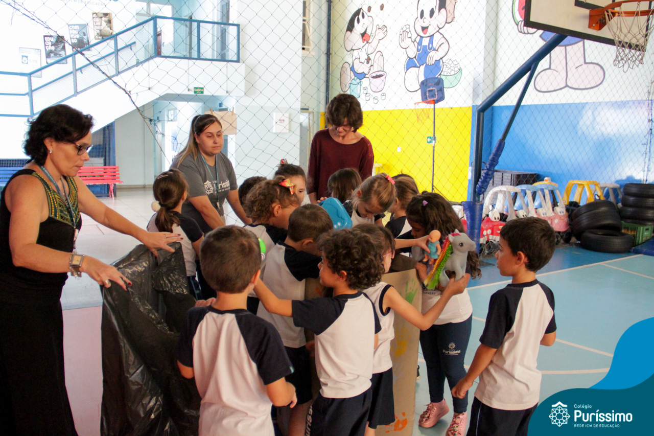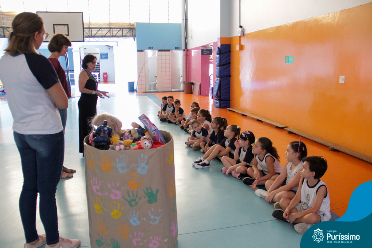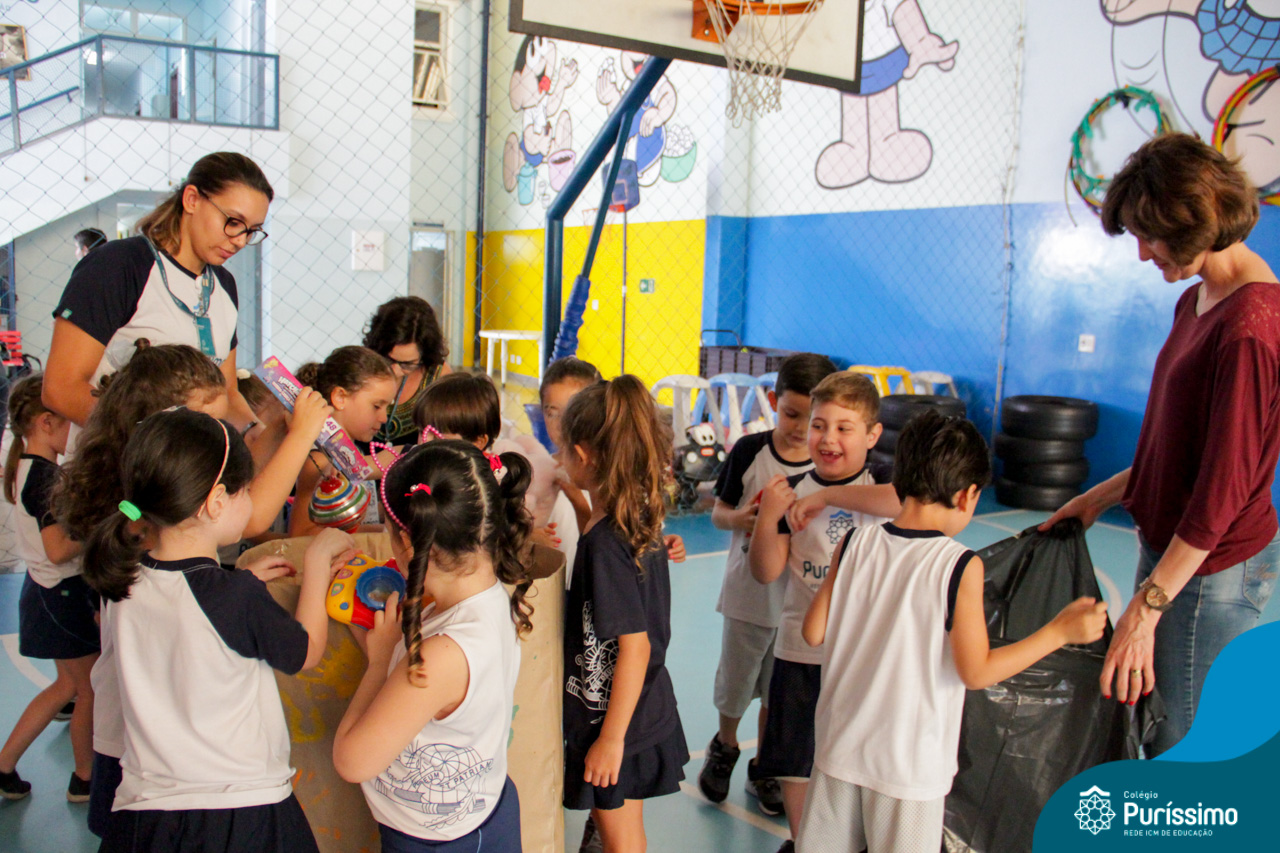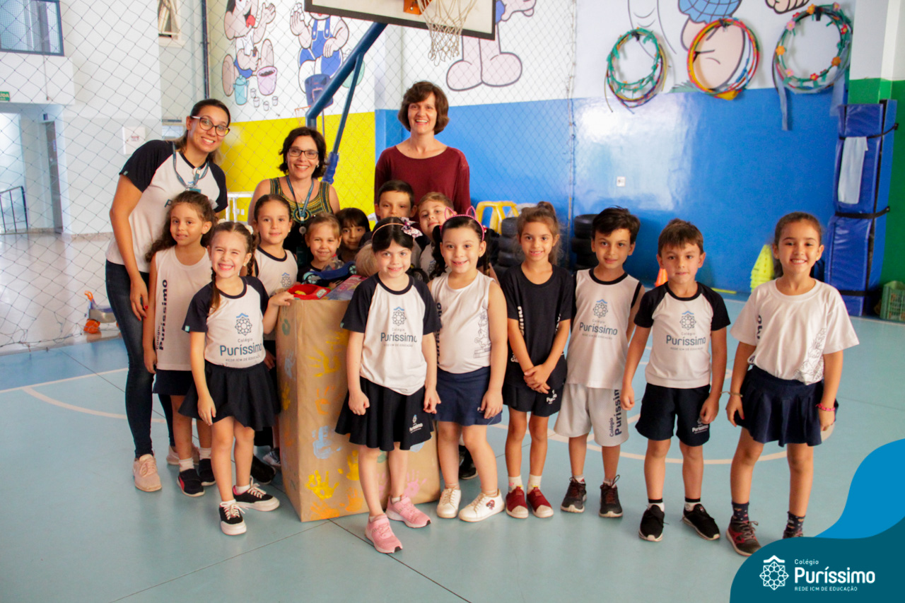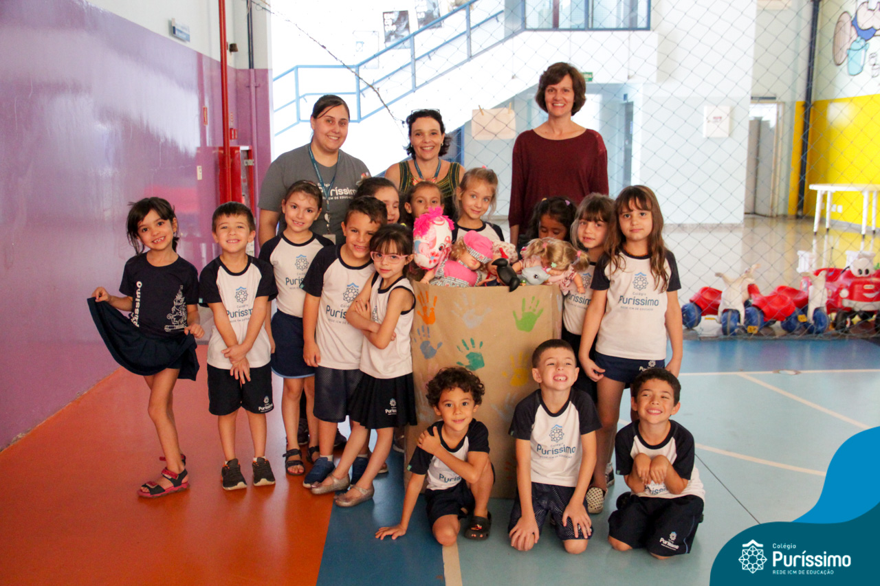 Após o feriado de dia das crianças, as turmas do Pré N2 chegaram animadas contando sobre os presentes e brinquedos que haviam ganhado. A partir do assunto , as professoras conversaram com os alunos sobre o que poderia ser feito com os brinquedos “antigos” que eles não brincavam mais. A partir daí surgiu a ideia de fazer uma campanha para arrecadar brinquedos para as crianças que não tem ou não ganharam nada nessa data, aí surgiu a campanha !Com as nossas mãos fazemos a diferença”.