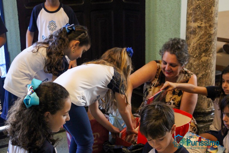 Em agosto os alunos dos 2ºs anos participaram de uma divertida gincana a partir da leitura do livro de férias, uma das provas da gincana tinha por objetivo arrecadar livros usados para serem doados a uma instituição que atende crianças carentes. Em parceria com a Pastoral Escolar, os alunos dos 2ºs anos doaram 307 livros infantis ao “Projeto Diva Marques Gouvêa”, que atende mais de 100 crianças. A representante do projeto, Profª Gracielene, esteve no colégio e recebeu dos alunos representantes os livros doados, eles também puderam conhecer um pouco mais sobre o Projeto Diva e as crianças que ele atende.