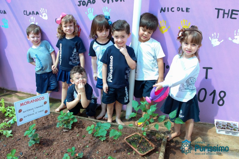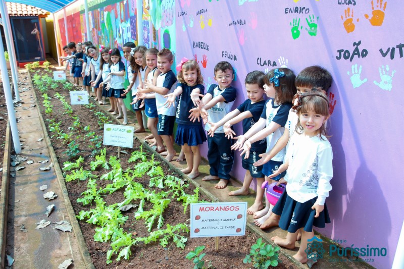 Durante o mês de outubro, os alunos da Educação Infantil e dos 1º anos, manhã e tarde, plantaram e cultivam em nossa horta um projeto que surgiu para estimular de forma dinâmica e prazerosa a autonomia, responsabilidade, paciência, cuidado e respeito entre os alunos e a natureza, além de incentivar uma alimentação mais saudável e diversificada.