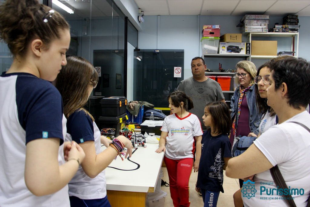 Os alunos dos 6ºs anos concluíram ontem as oficinas oferecidas no 1º semestre. Tanto na turma de robótica, com o professor Valci Rodrigues, como na turma de gastronomia, com o chef João Rogério, os alunos mostraram aos pais as atividades realizadas em sala, explicaram o funcionamento e a montagem de um robô, bem como os programas utilizados para isso, também degustaram salgados e doces feitos e decorados pelos próprios alunos aprendidos durante o semestre. Foi uma experiência enriquecedora para ambas as turmas que trabalham a autonomia e o desenvolvimento em protagonismo e liderança.
