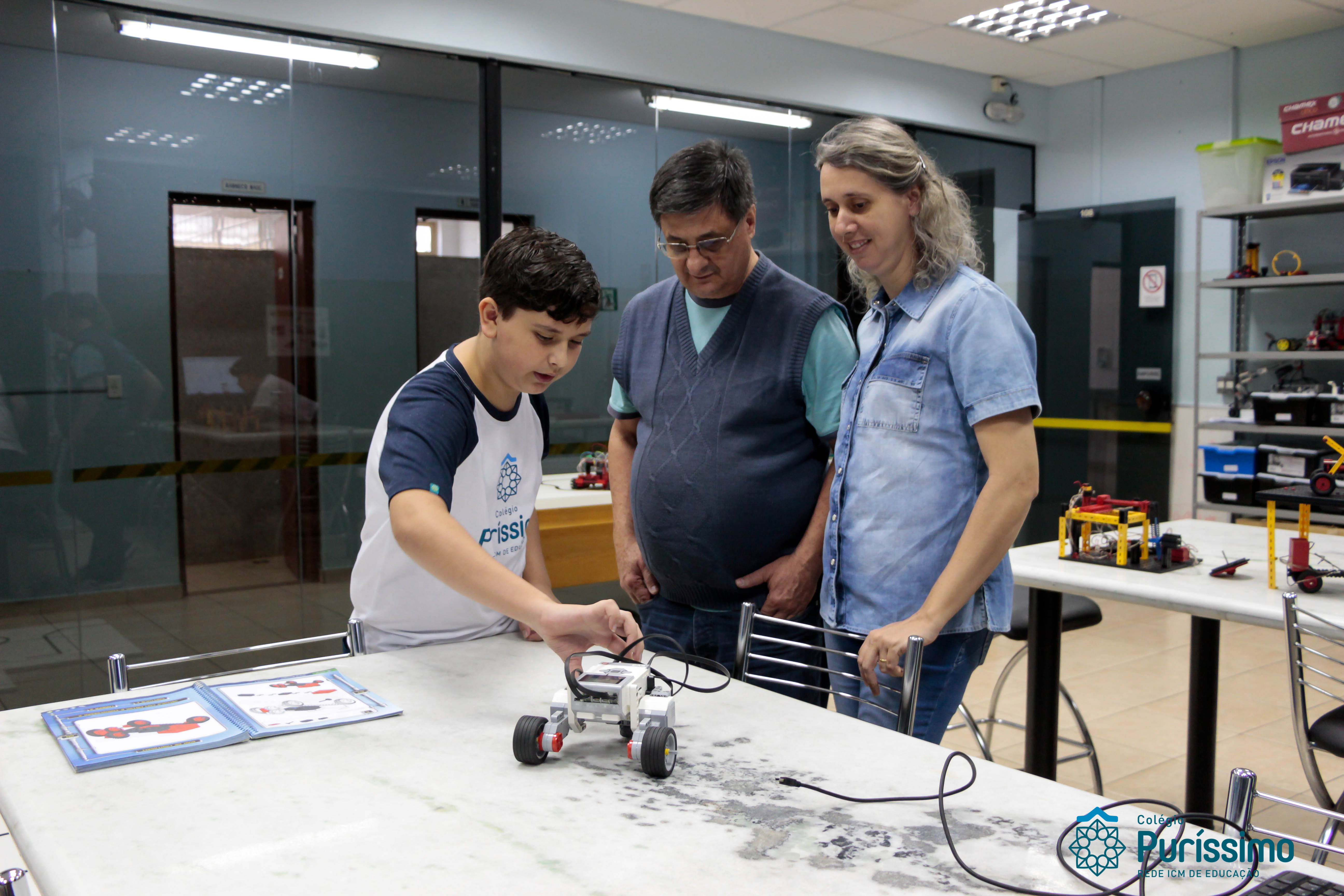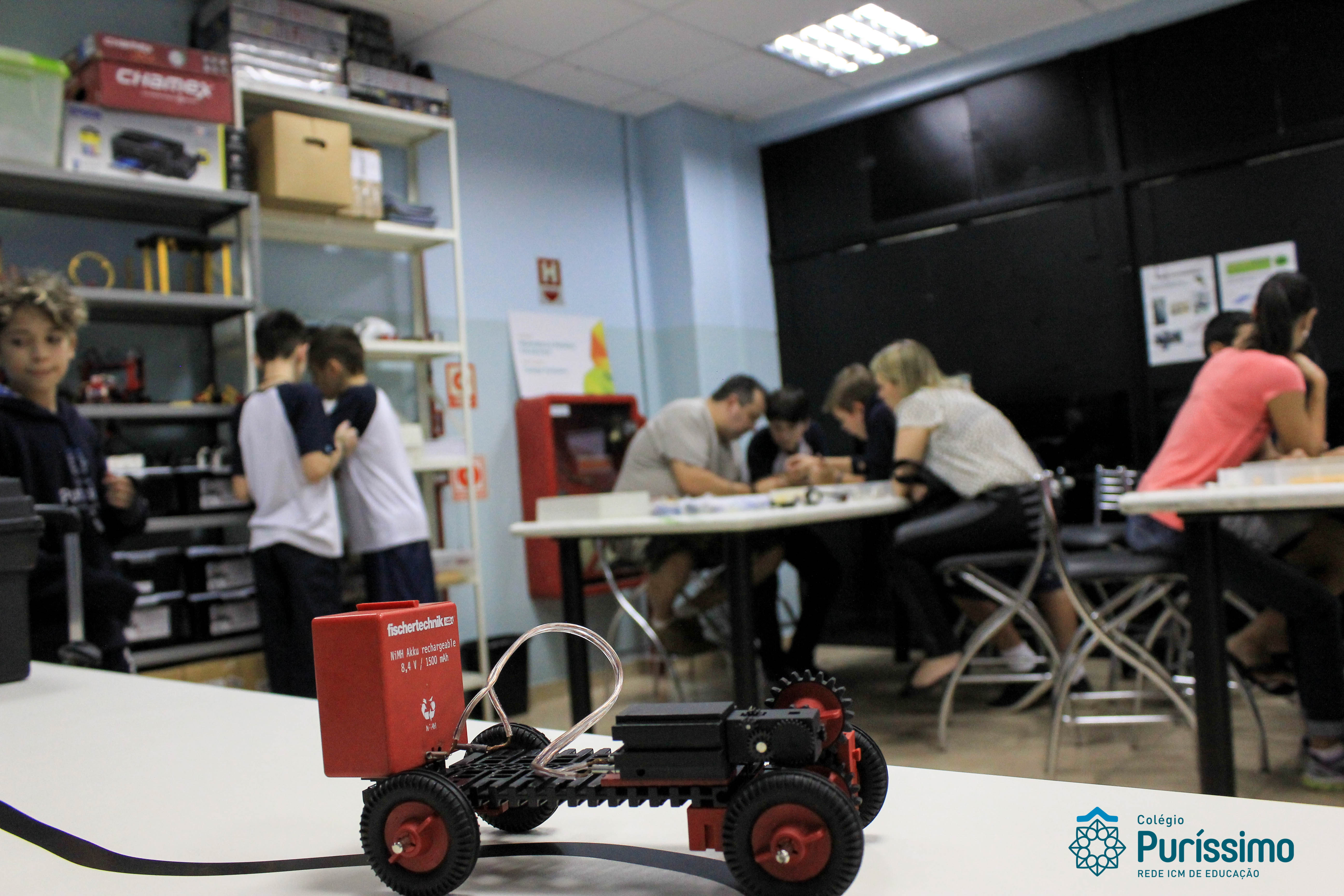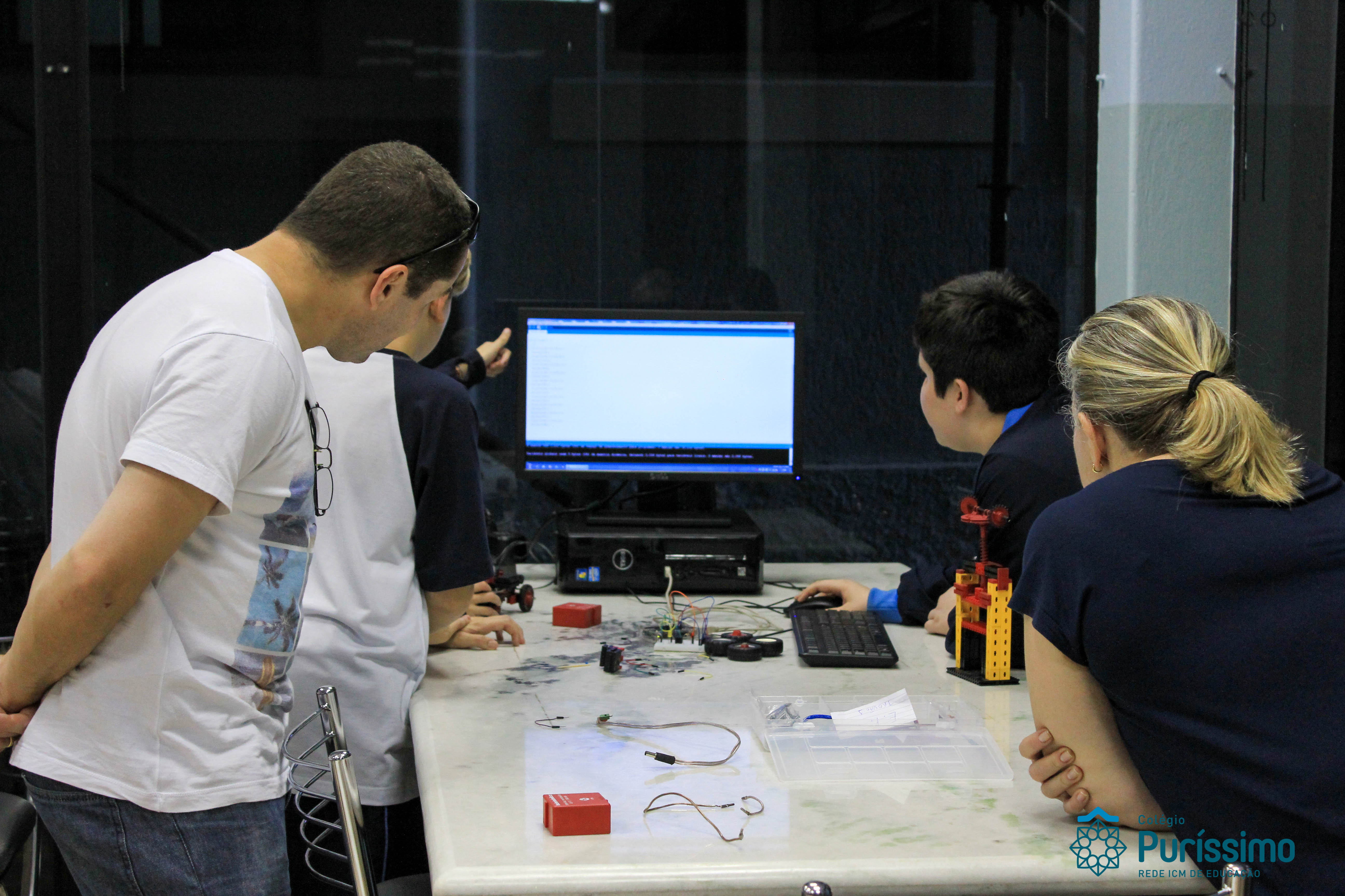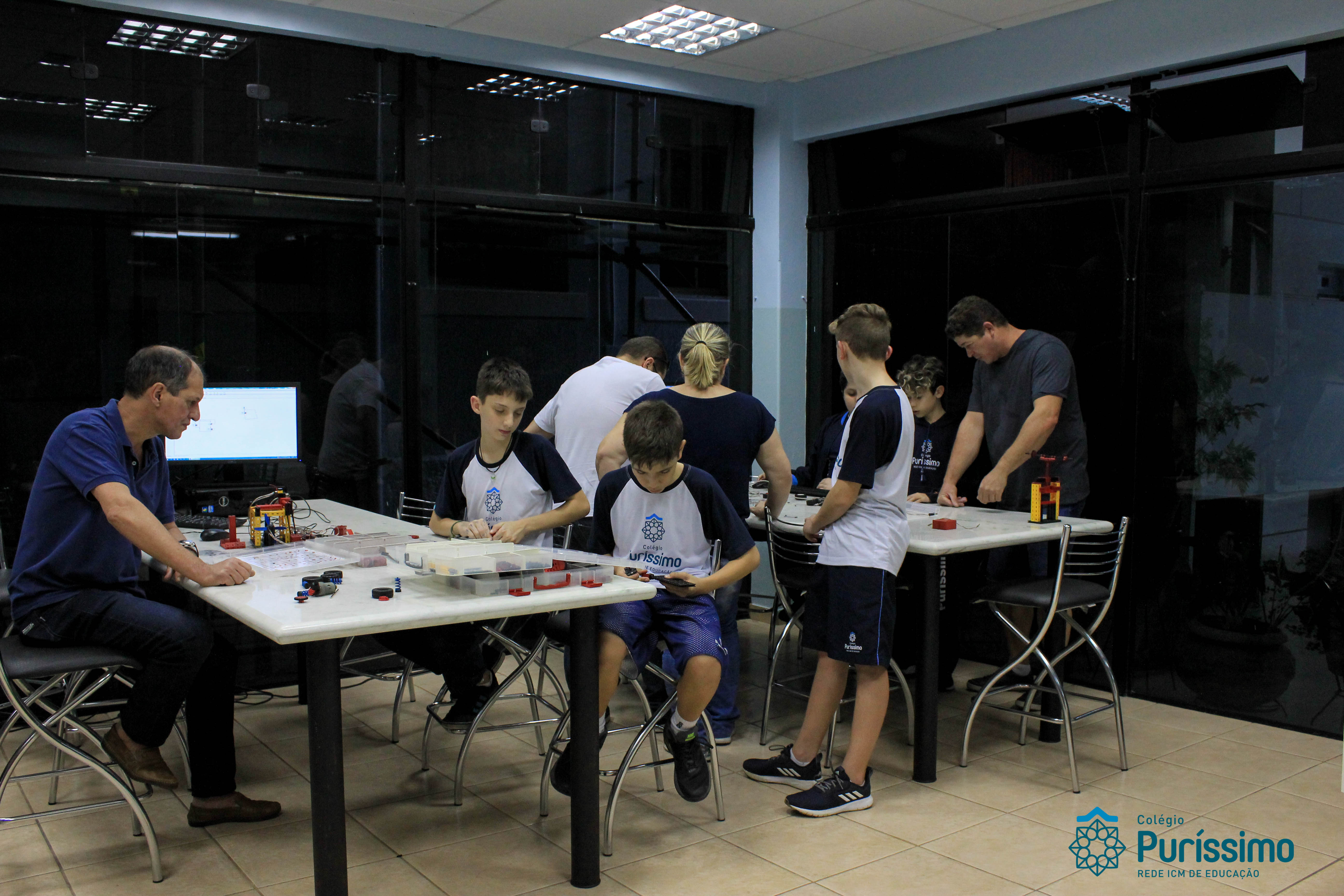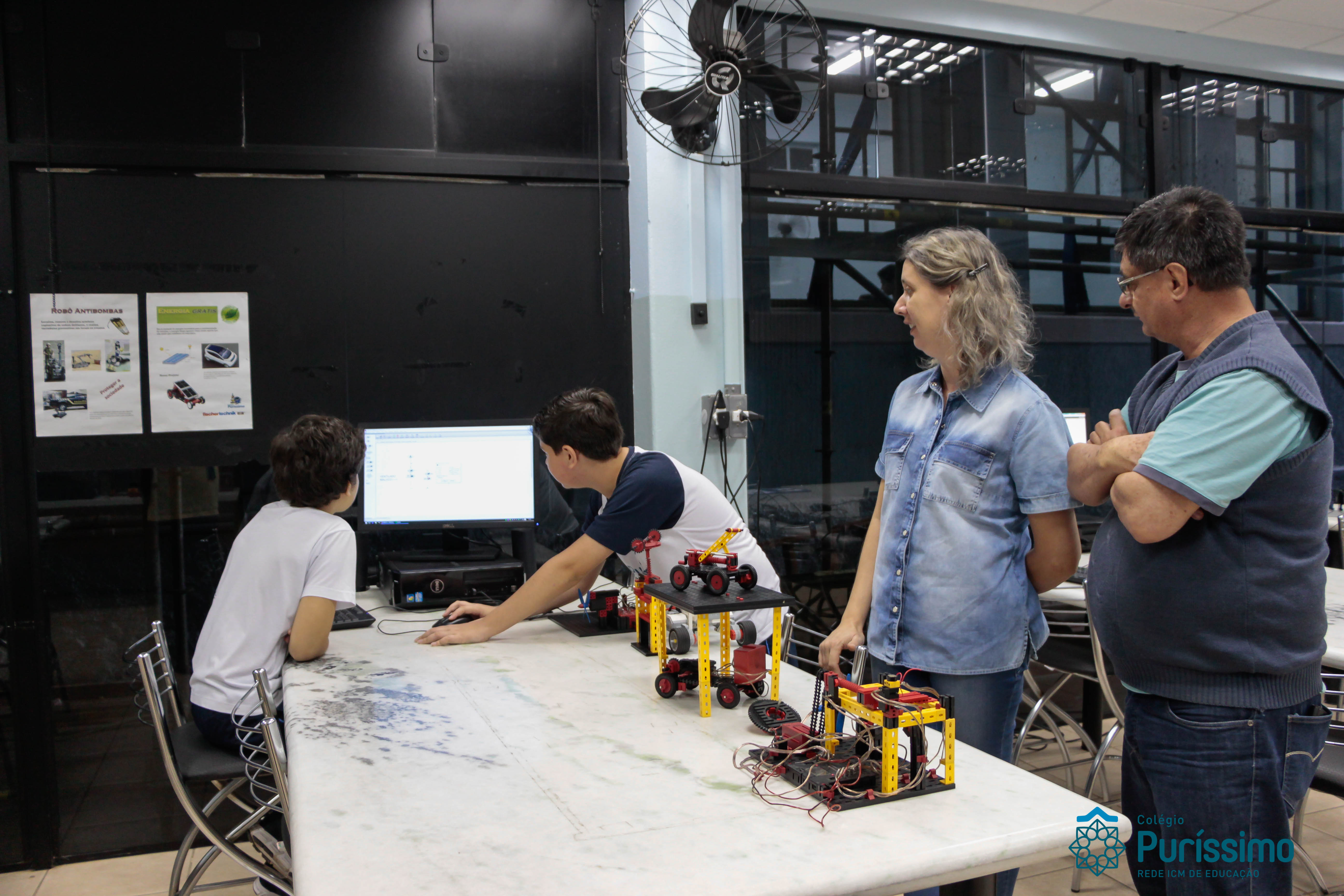 Ao longo da semana passada ocorreu o encerramento das Oficinas dos 6ºs anos para esse primeiro semestre. Os pais foram convidados a comparecerem para acompanharem de perto o trabalho desenvolvido pelos seus filhos no decorrer dos meses. Na oficina de design de games, as crianças explicaram aos pais os jogos desenvolvidos e o passo a passo que aprenderam durante as aulas, na oficina de gastronomia os alunos decoraram uma mesa com diversos doces feitos por eles e que ficaram para a degustação dos presentes. Já na oficina de robótica, os alunos explicaram aos pais como foram criados os robôs, os programas de computação usados para dar movimento e direção a alguns deles e o funcionamento de cada um.