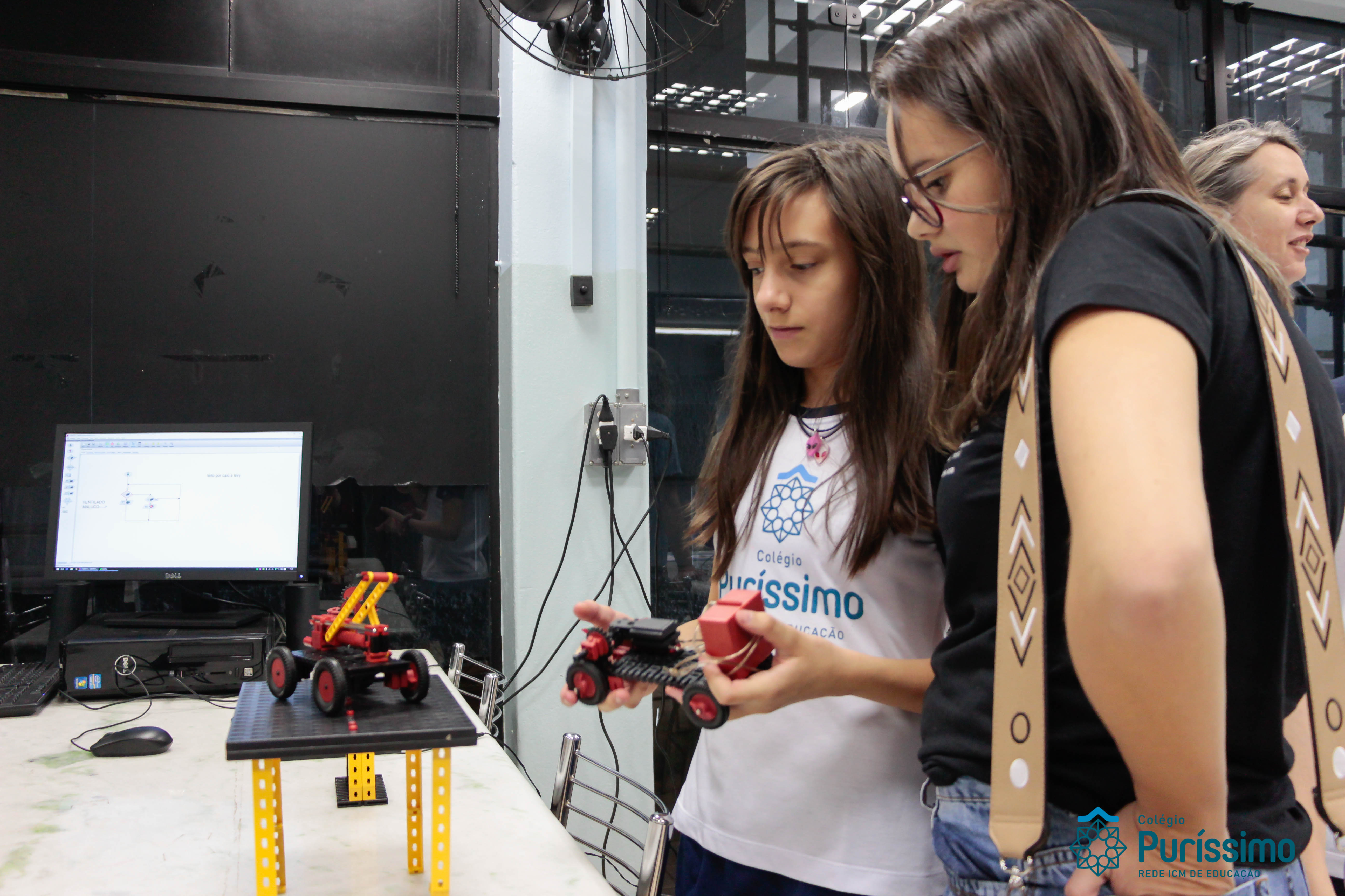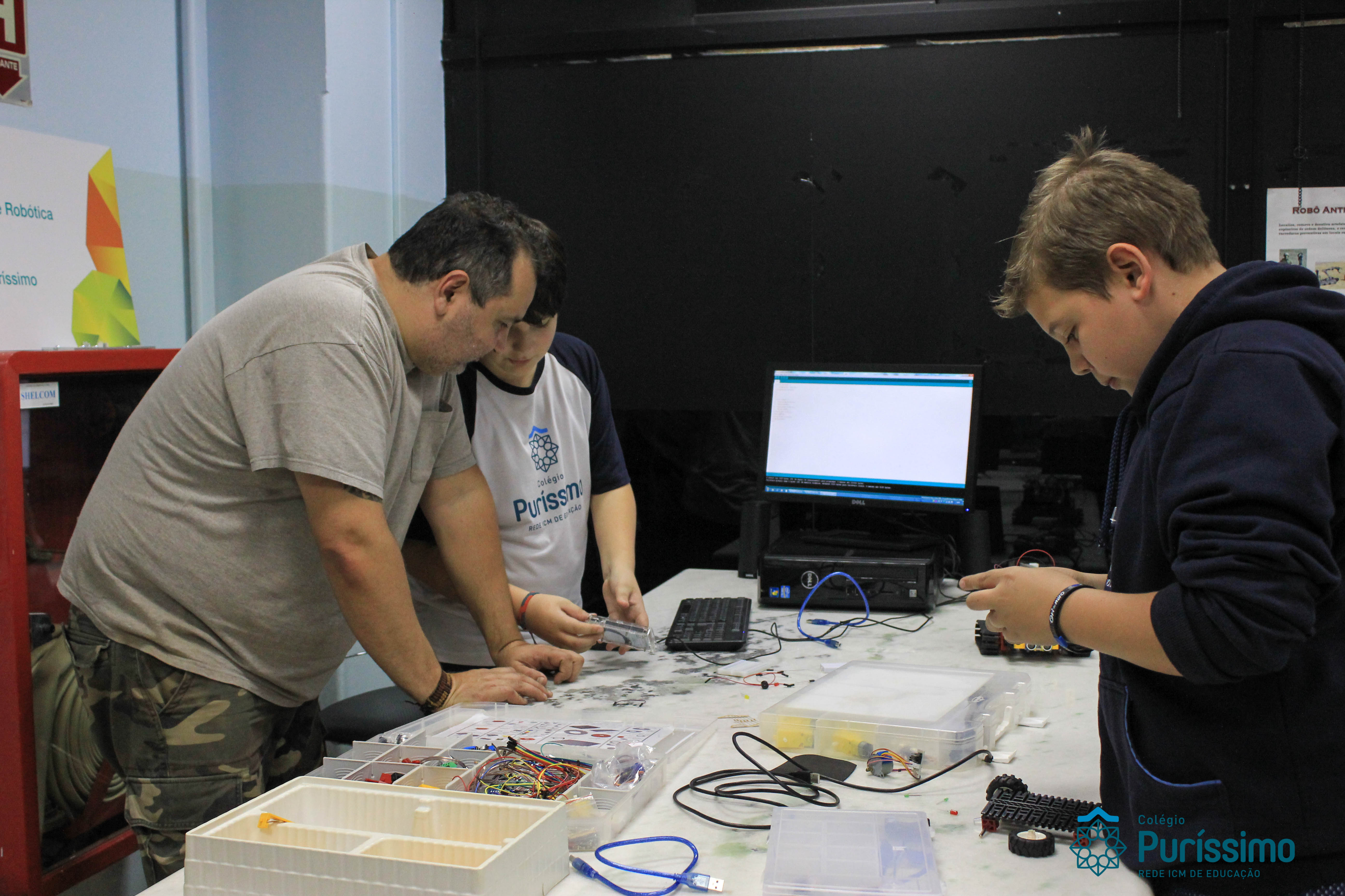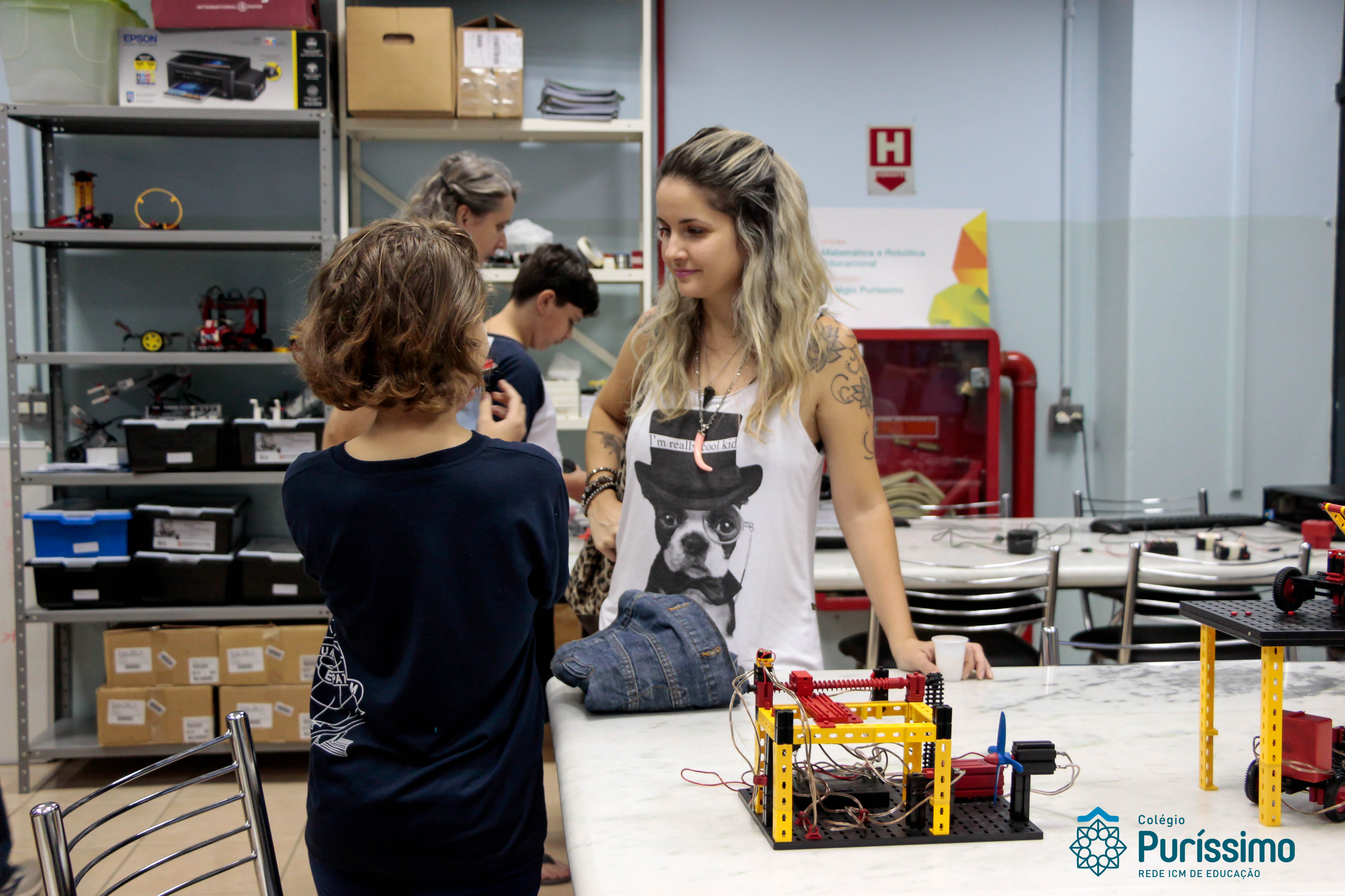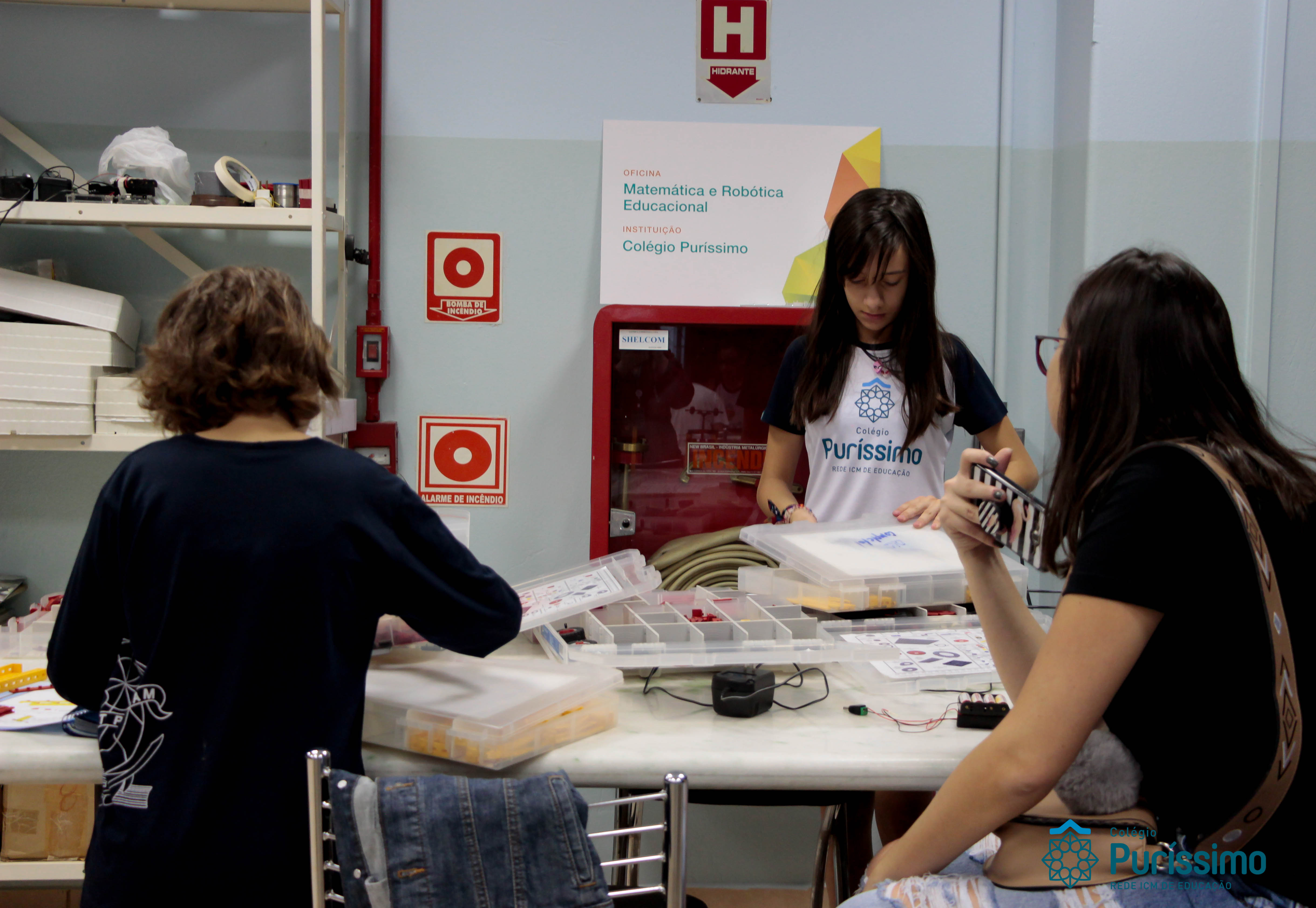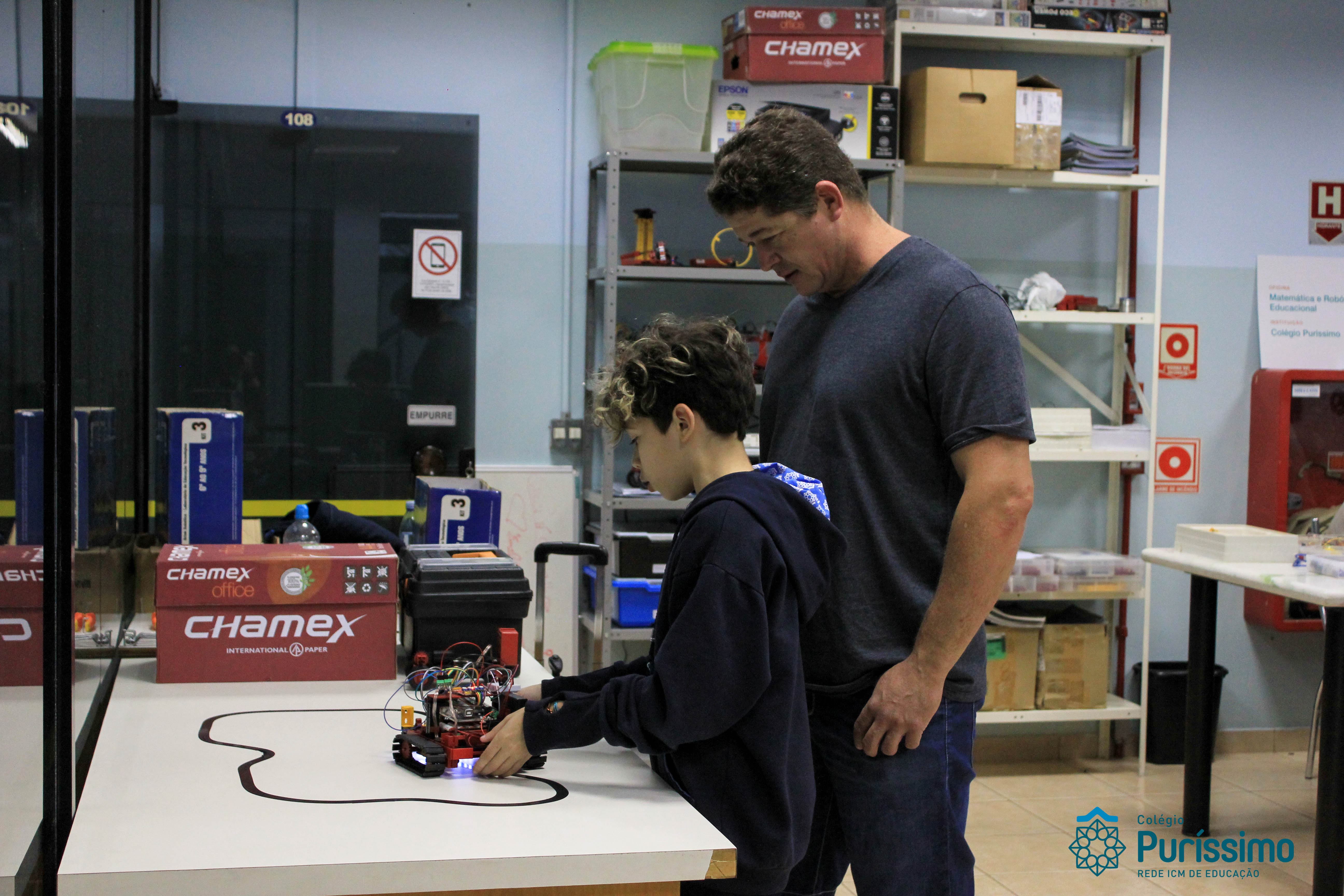 Ao longo da semana passada ocorreu o encerramento das Oficinas dos 6ºs anos para esse primeiro semestre. Os pais foram convidados a comparecerem para acompanharem de perto o trabalho desenvolvido pelos seus filhos no decorrer dos meses. Na oficina de design de games, as crianças explicaram aos pais os jogos desenvolvidos e o passo a passo que aprenderam durante as aulas, na oficina de gastronomia os alunos decoraram uma mesa com diversos doces feitos por eles e que ficaram para a degustação dos presentes. Já na oficina de robótica, os alunos explicaram aos pais como foram criados os robôs, os programas de computação usados para dar movimento e direção a alguns deles e o funcionamento de cada um.