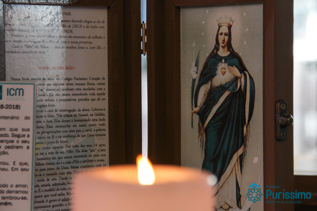 Ao longo do mês de maio nossas famílias receberam a visita da capelinha de Nossa Senhora, momento de vivência da espiritualidade mariana. Para fecharmos o mês dedicado a Maria, o Serviço de Pastoral Escolar, preparou o momento celebrativo, com músicas, dança e poema voltados para a pessoa de Maria. No final as capelinhas foram recolhidas, mas com a certeza de que a passagem de Nossa Senhora continua presente na vida de todos nós. Como estamos chegando próximos das férias, também foi momento de agradecermos o semestre vivido.