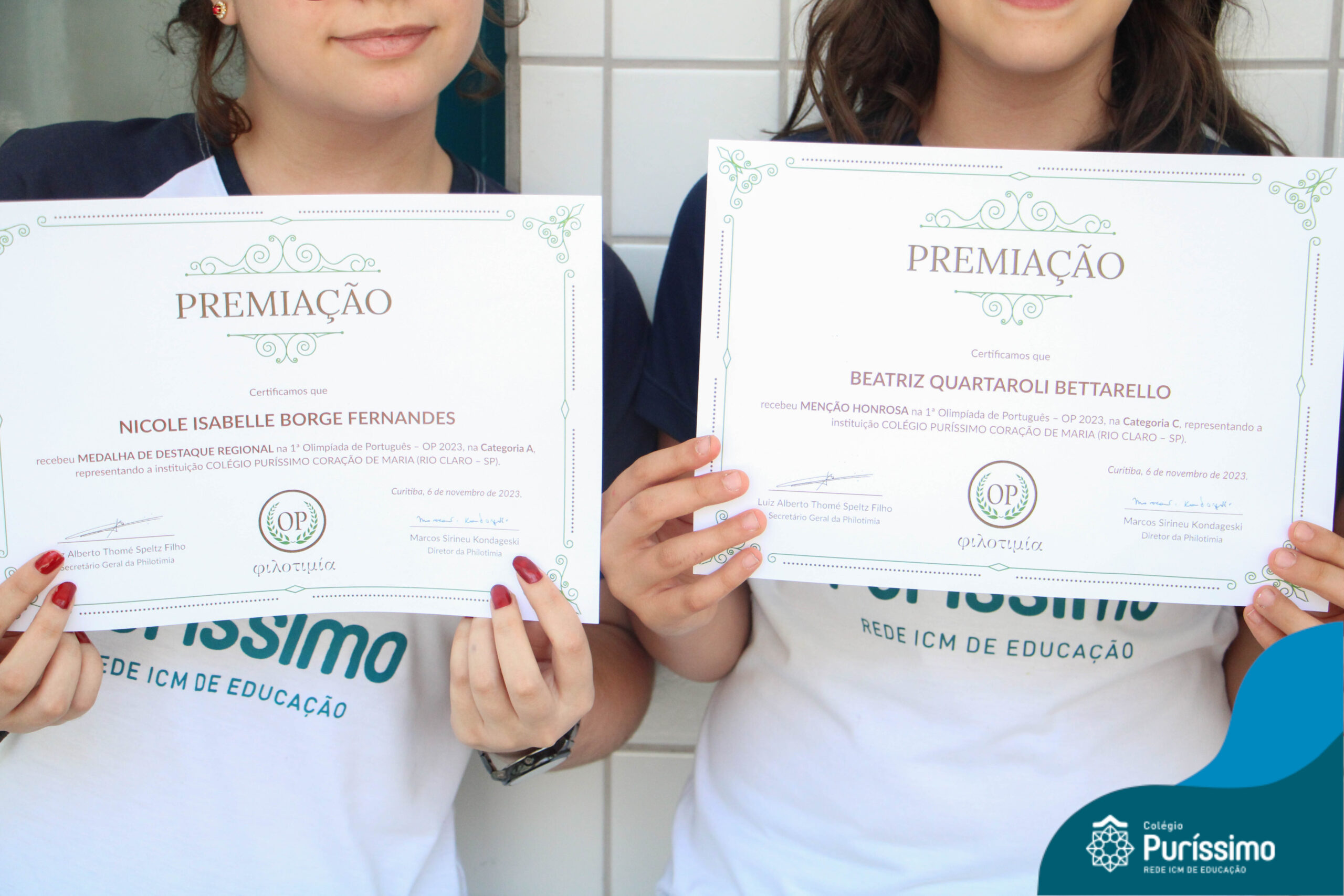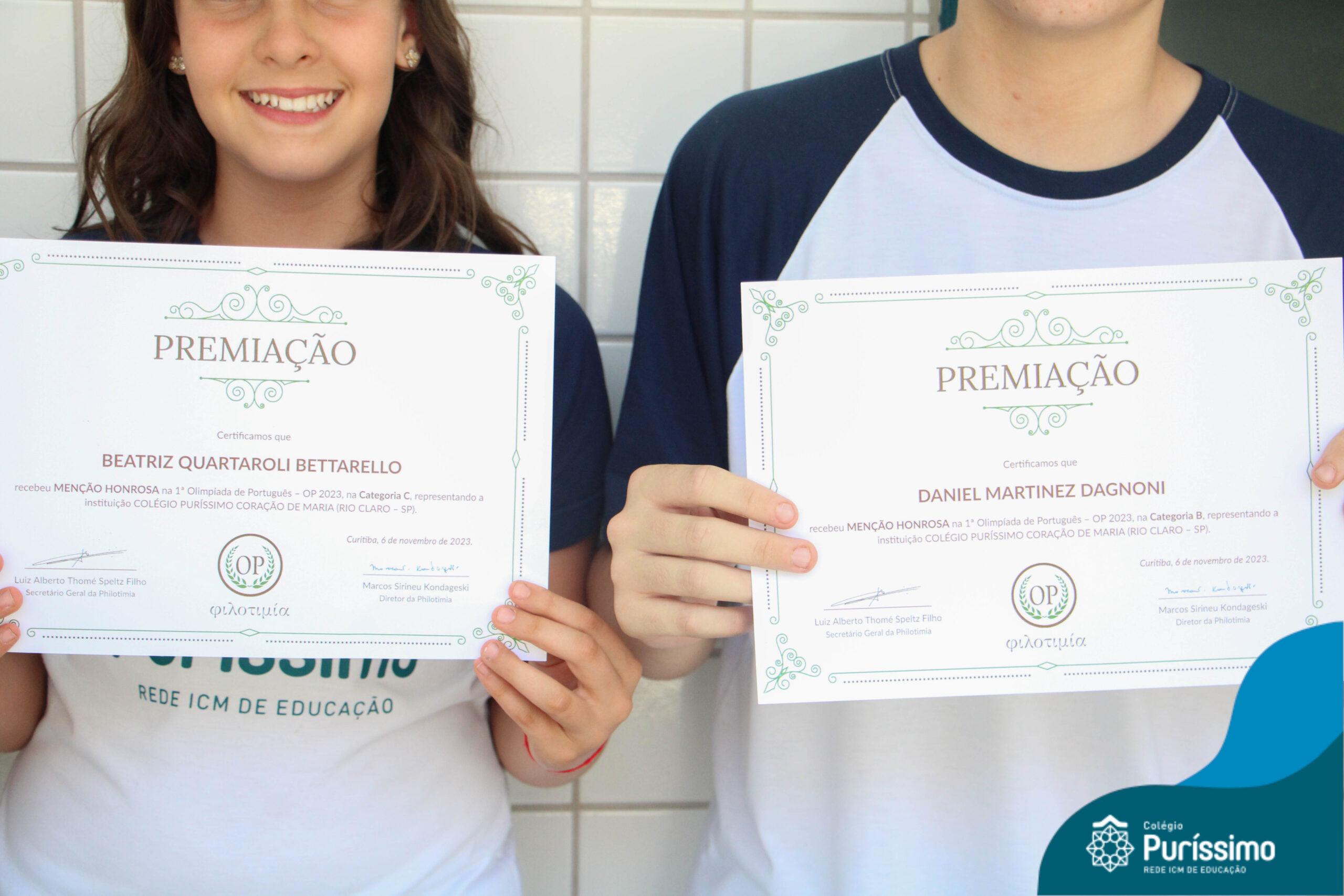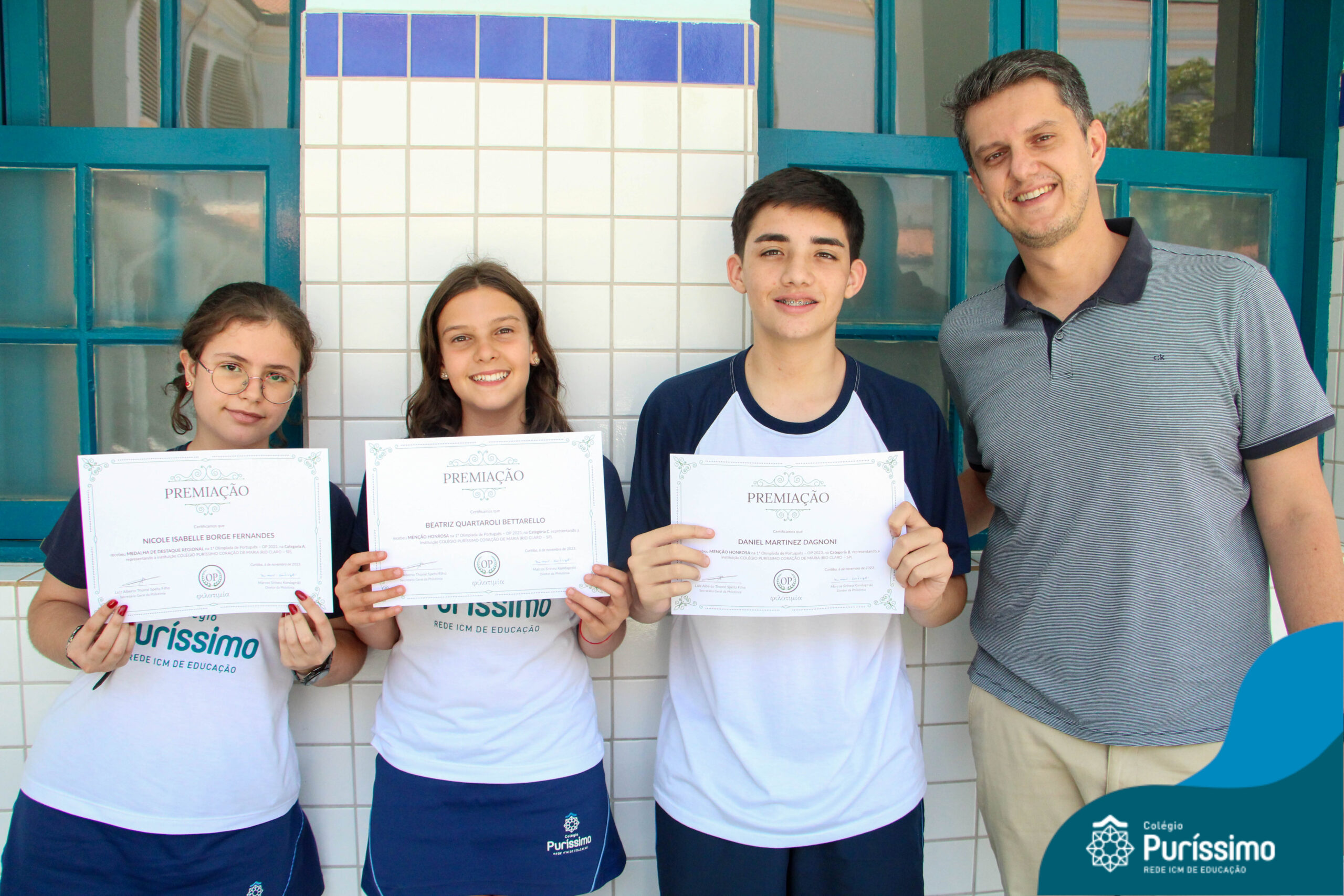 Os estudantes Daniel Dagnoni, 9º ano, Beatriz Bettarello, 6º ano, e Nicole Fernandes, 2ª série EM, foram premiados na Olimpíada de Português – OP 2023!