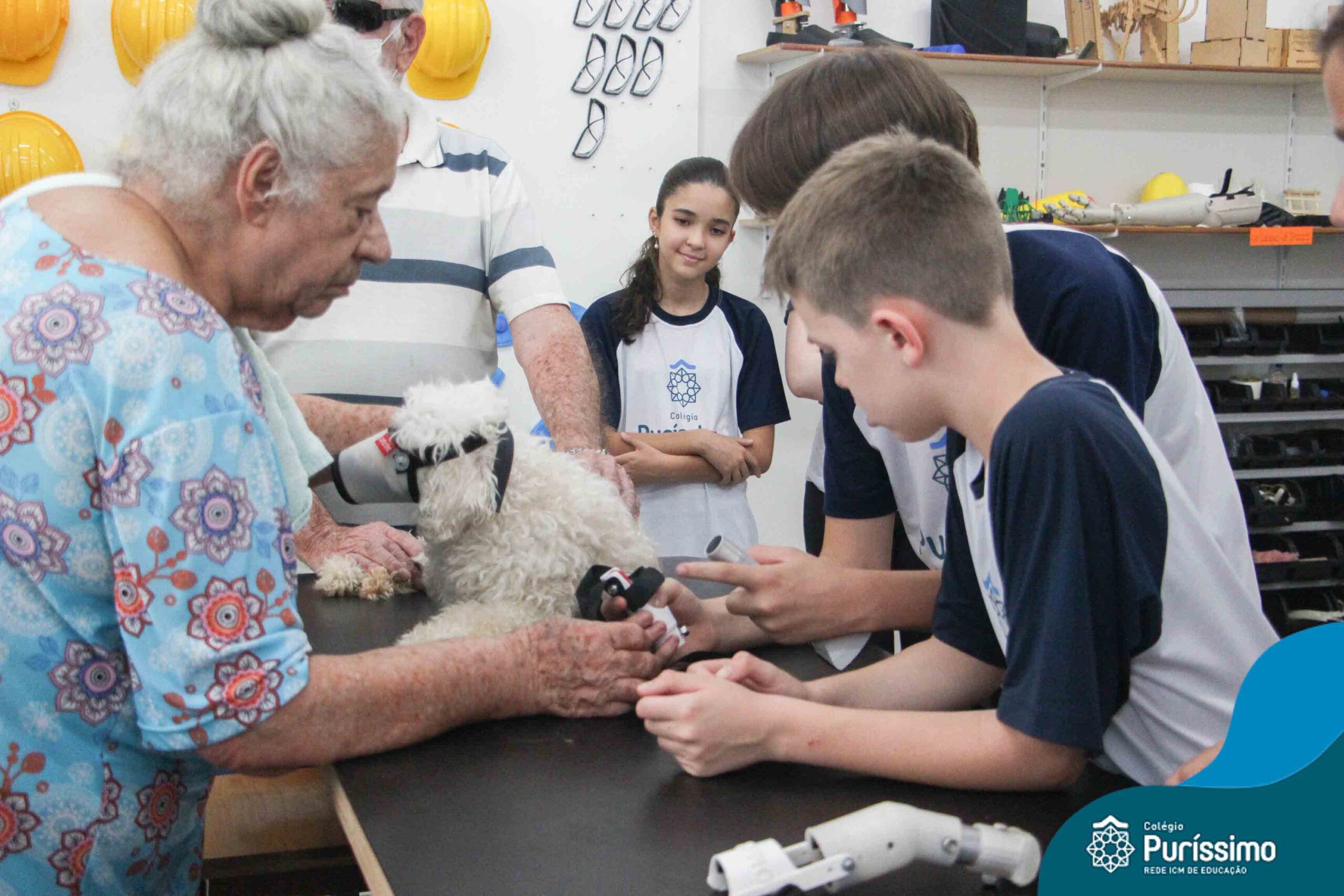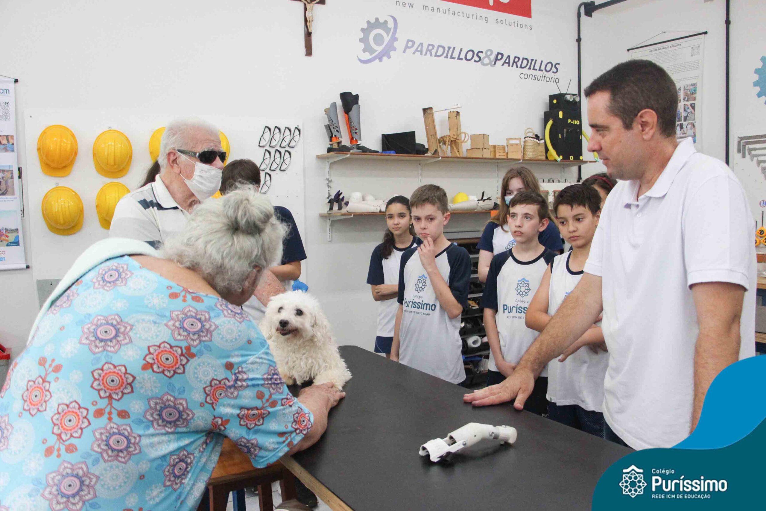 Depois de 2 meses de trabalho, finalmente a Mel recebeu seu prótese desenvolvida pelos nossos estudantes.