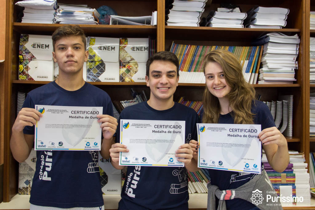 Os alunos do 1º e 2º ano do Ensino Médio, João Vitor Zonta da Silva, Letícia Mijolaro Sartori e Henrique Souza Marques, sob orientação da professora de geografia, Thaís Tinós, participaram da Olimpíada Brasileira de Geografia (OBG) e conquistaram a medalha de ouro na classificação estadual.