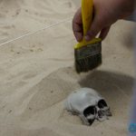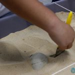 Na última semana do mês de março, os alunos dos 6ºs anos participaram de uma atividade diferente durante as aulas de História. Tendo em vista compreender de forma prática o trabalho de um arqueólogo e como este profissional estuda os vestígios materiais deixados pelos seres humanos, foi simulada uma pequena escavação arqueológica. Na medida em que os alunos escavavam e descobriam pistas no sítio arqueológico representado na caixa interativa, discutiam sobre as etapas do trabalho de um arqueólogo e elaboravam possíveis hipóteses a partir do que haviam encontrado ali.