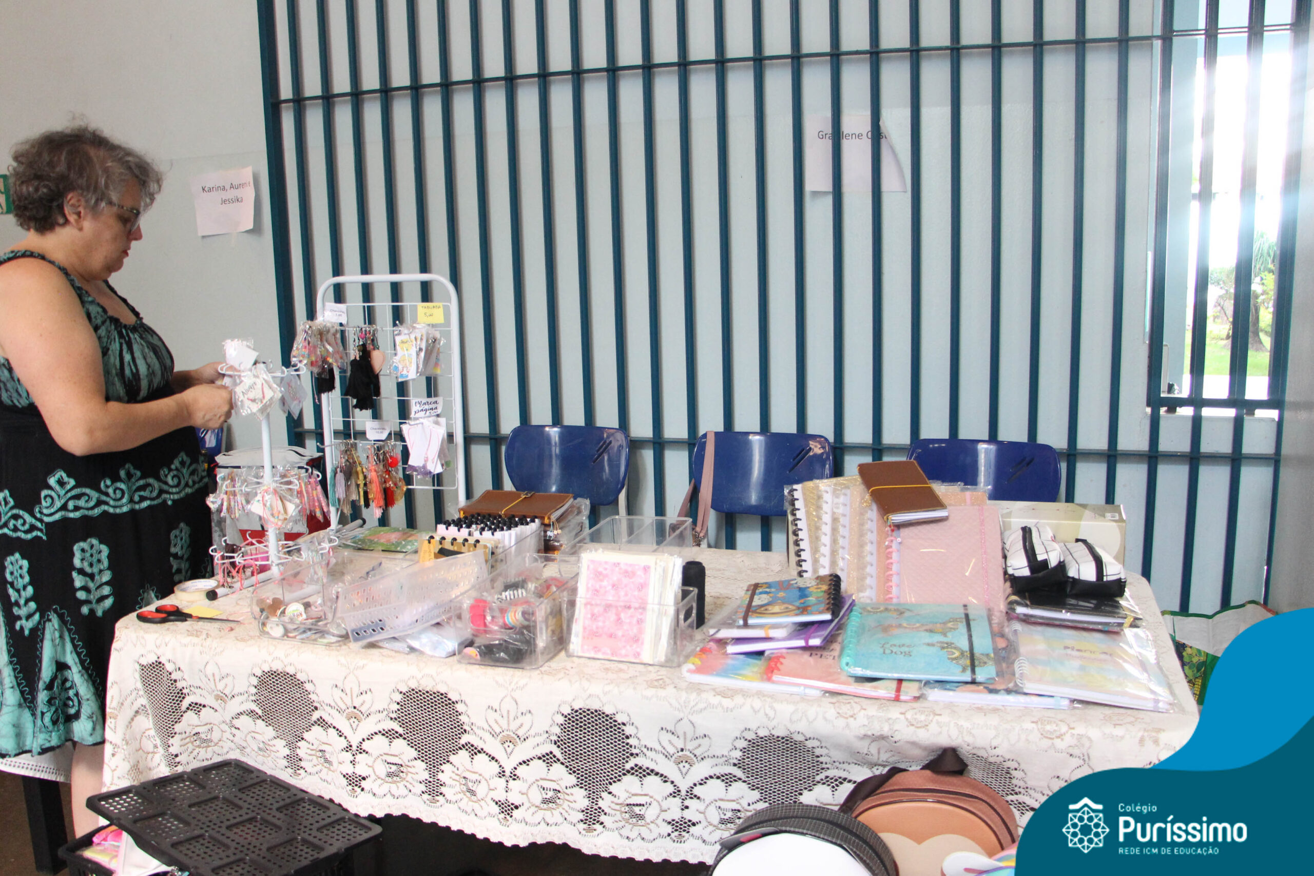 Nesse primeiro dia de feira tivemos diversos trabalhos incríveis como materiais escolares, artesanato, doces, salgados e muito mais!