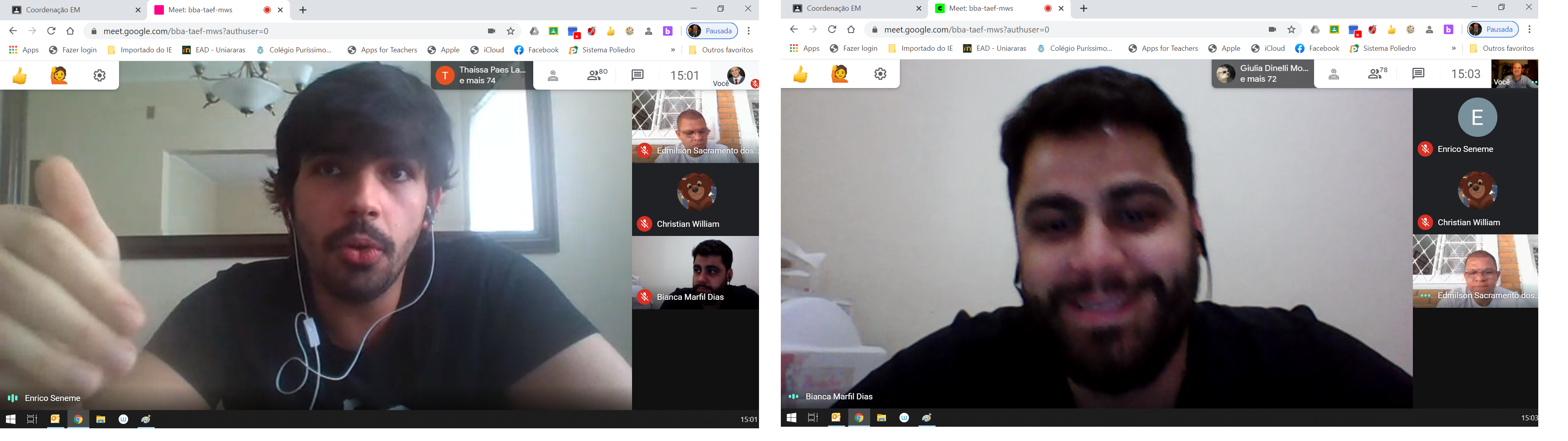 Alguns ex-alunos do colégio, de diferentes áreas, foram convidados a palestrar para nossos alunos do ensino médio e pré-vestibular em uma sala de aula virtual. Os alunos optaram pelas áreas de interesse e ouviram dos ex-alunos e atuais profissionais, os anseios, sucessos e tiraram dúvidas das profissões que seguiram.