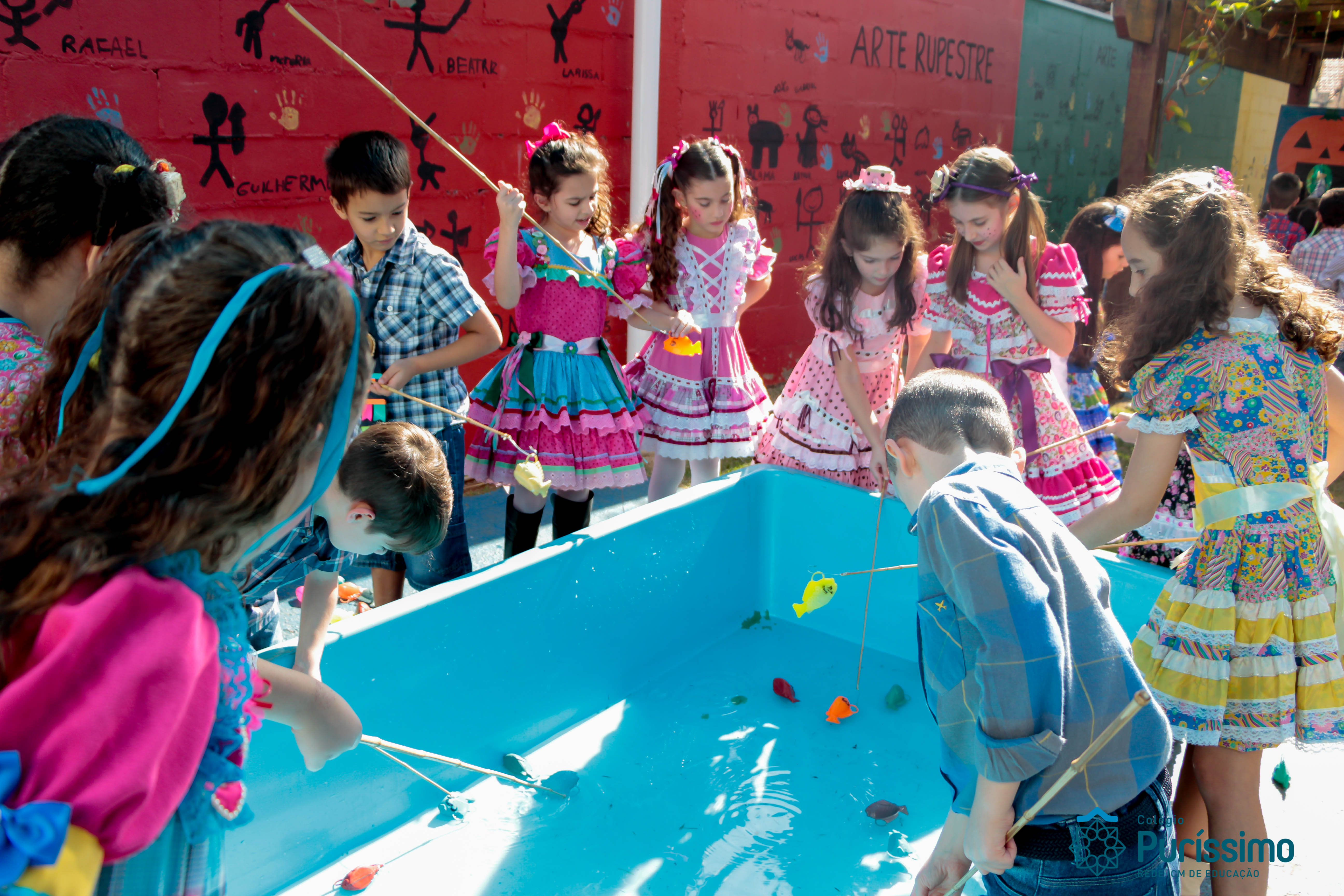 Na última sexta-feira, dia 29 de junho, os alunos da Casa Azul comemoraram o último dia de aula com uma divertida festa junina. As crianças repetiram as danças apresentadas na Festa Junina aberta ao público, brincaram com a pescaria, boca da abóbora e argolas e partilharam de um delicioso piquenique com comidas típicas!
