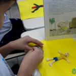 As atividades uniram o brincar e a aprendizagem, dando continuidade ao processo de alfabetização. Teve corrida de títulos, modelagem em massinha dos personagens dos livros, mímica, corrida de bexigas, quebra-cabeça e doação de livros e gibis.