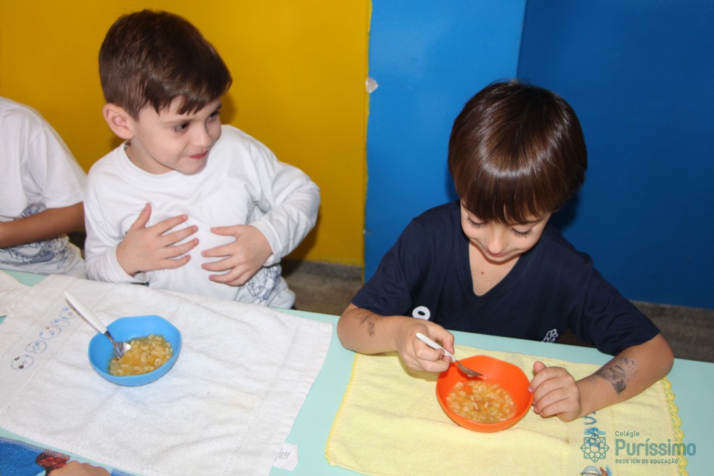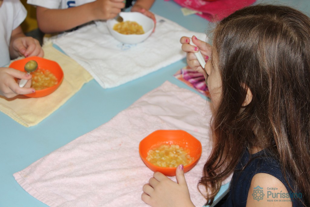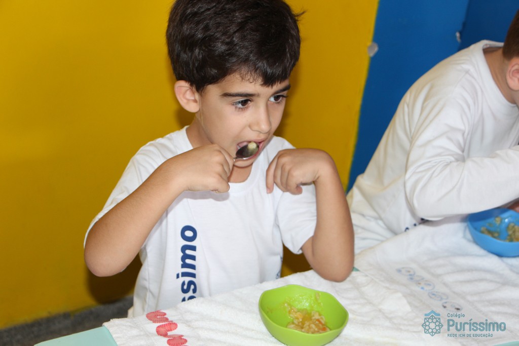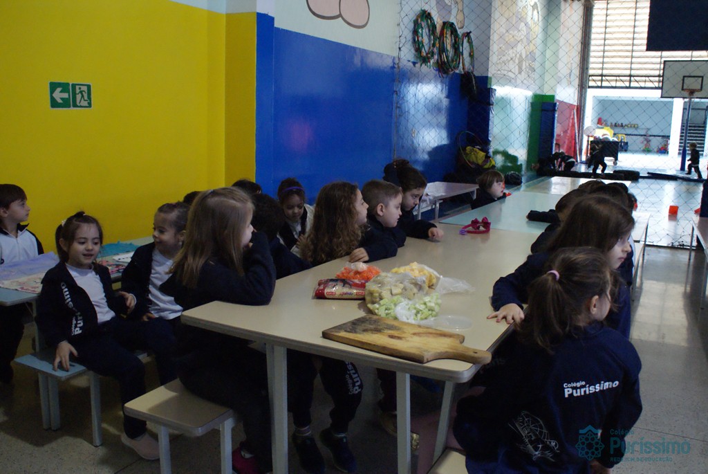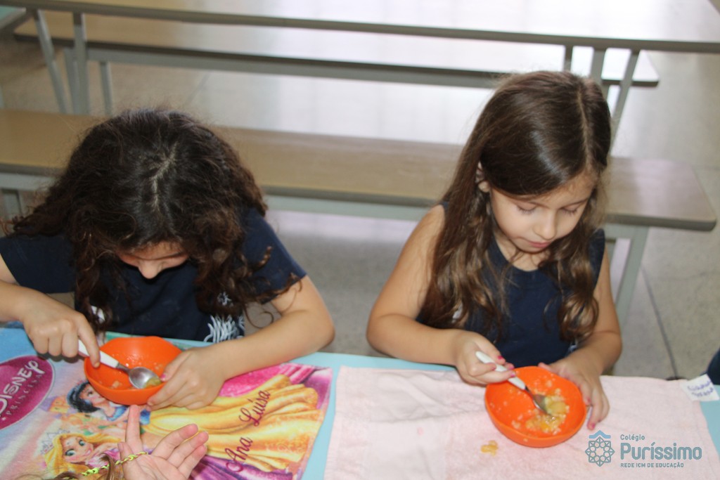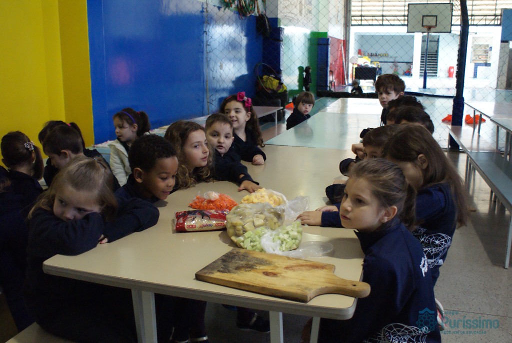 Os pequenos alunos do Jardim II do Colégio Puríssimo tiveram uma experiência diferente na última semana. Eles estão aprendendo sobre a importância de uma alimentação balanceada e saudável, prezando pela alimentação com frutas, verduras e legumes.