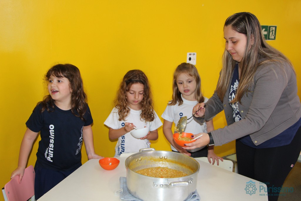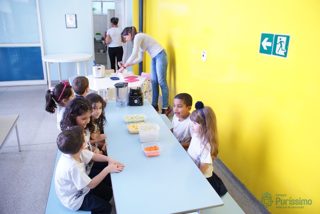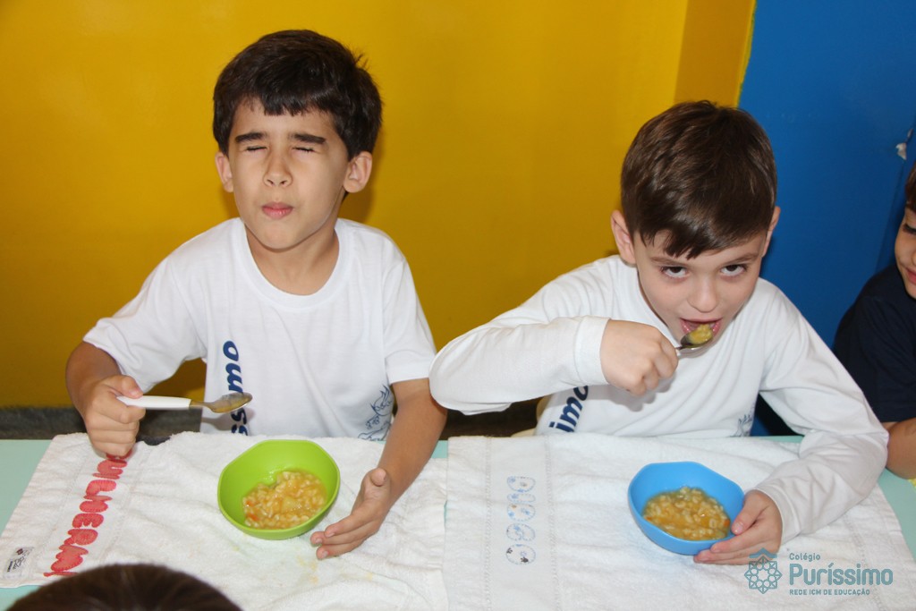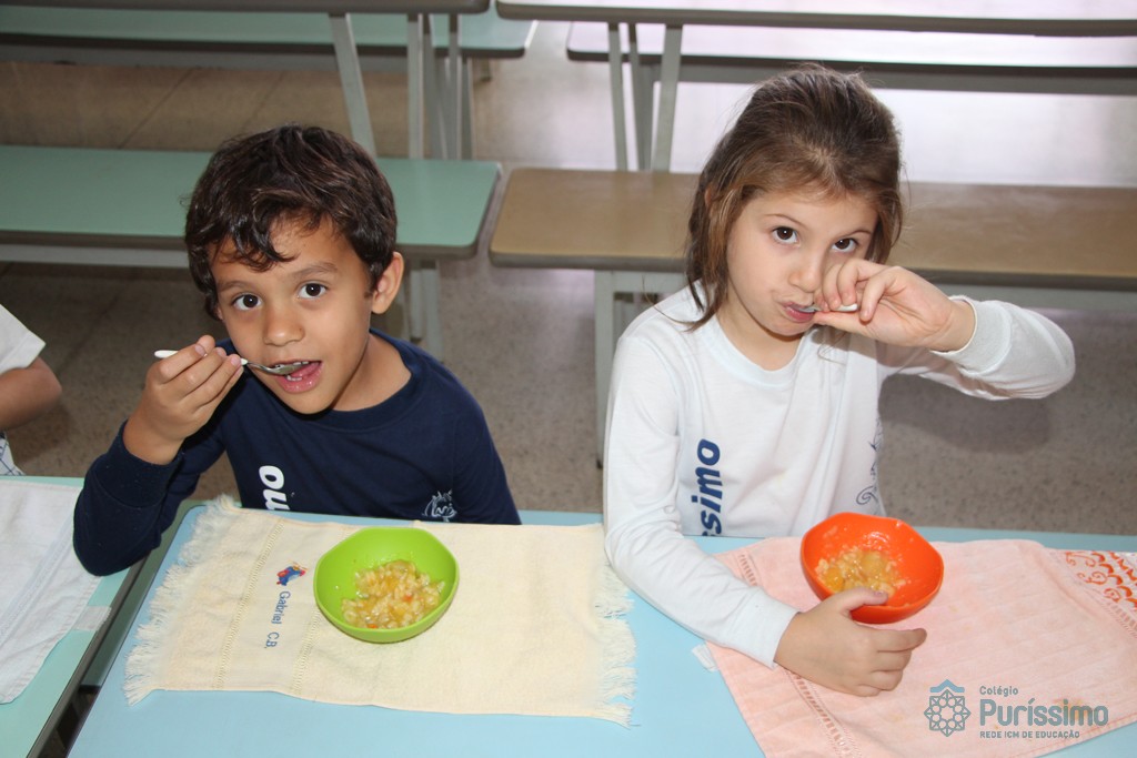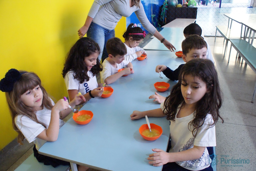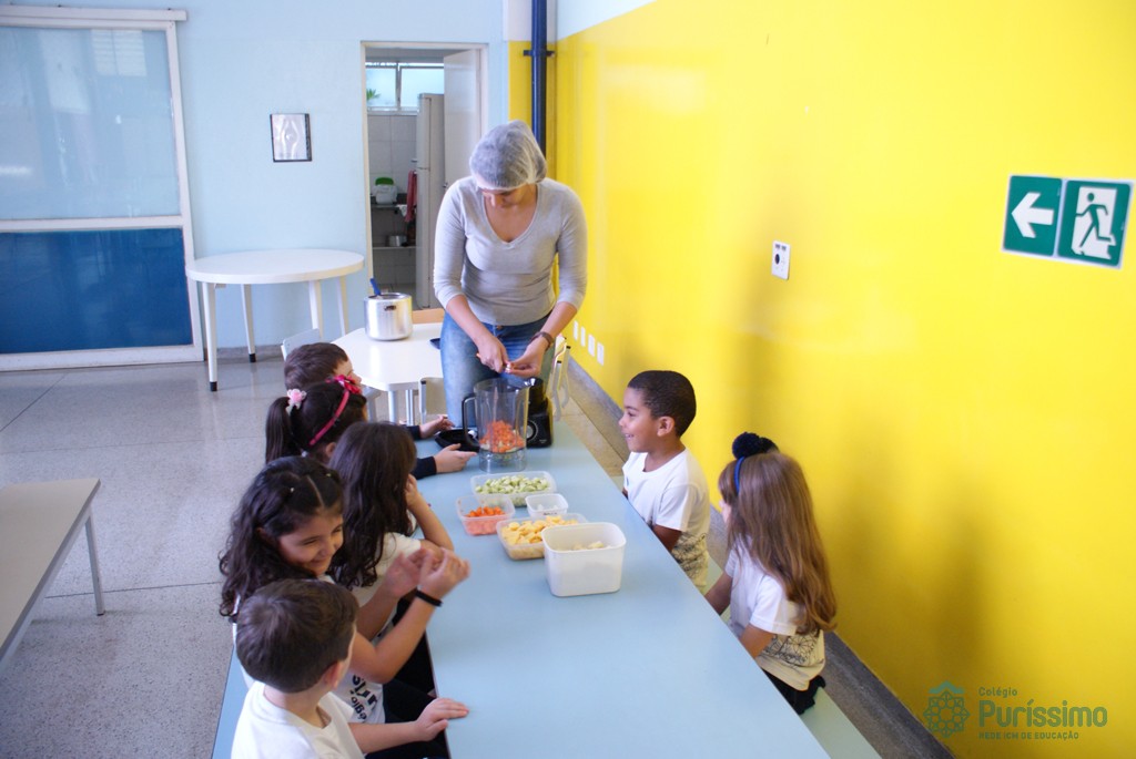 Os pequenos alunos do Jardim II do Colégio Puríssimo tiveram uma experiência diferente na última semana. Eles estão aprendendo sobre a importância de uma alimentação balanceada e saudável, prezando pela alimentação com frutas, verduras e legumes.