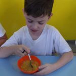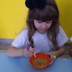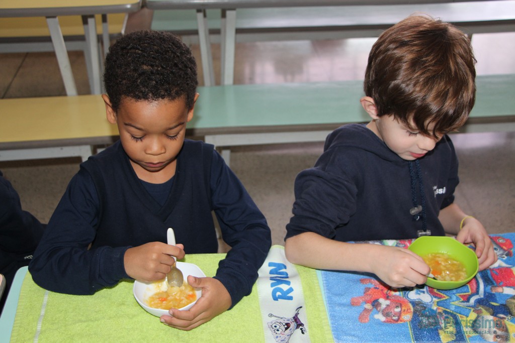 E com a intenção de fechar esse estudo, os estudantes realizaram todas as etapas do processo de produção de uma sopa. Eles encontraram a receita, fizeram a lista de compra, foram pessoalmente ao supermercado, ajudaram a escolher, e trazer os itens, e depois… eles ajudaram até as professoras Michele Fernandes e Vivian de Abreu a cozinhar. E por fim é claro, a melhor parte, comer! Os alunos se deliciaram com a refeição e deixaram pratos e caldeirões vazios.