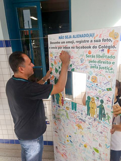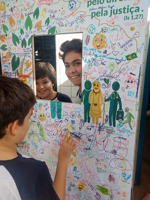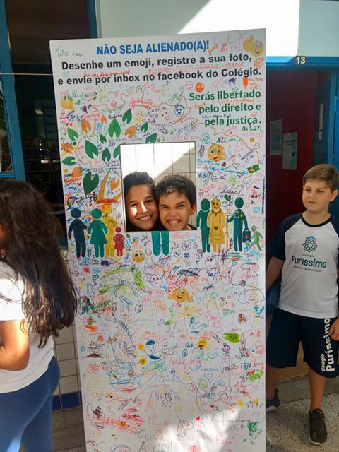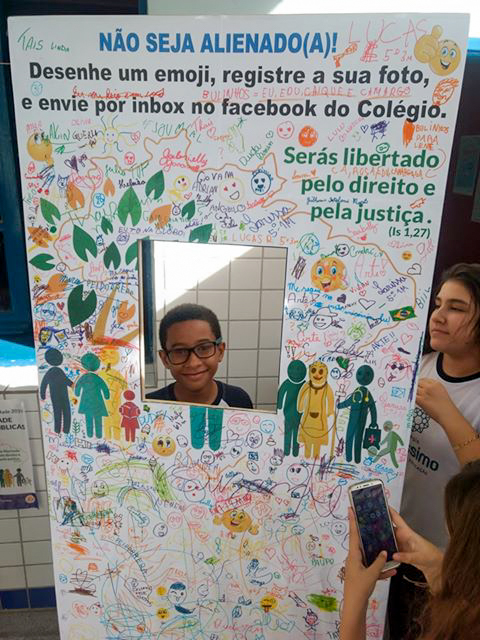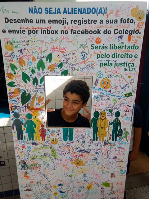 Durante as aulas de artes, a professora Eliana Butolo, junto com os alunos, criaram uma instalação com o tema da Campanha da Fraternidade 2019 “Fraternidade e Políticas Públicas”. Os alunos se envolveram com o projeto e nos enviaram algumas fotos. Confiram!
