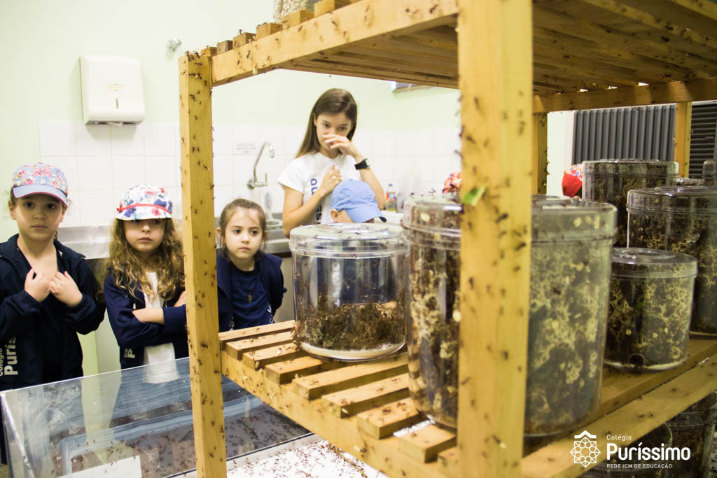 Além do jardim, os alunos conheceram o Formigueiro, montado pelos estudantes de Biologia, onde aprenderam a função de cada formiga dentro da colônia e puderam observar como é o funcionamento de um formigueiro. No Insetário, conheceram diferentes espécies de abelhas e a sua importância para o planeta.