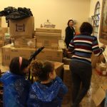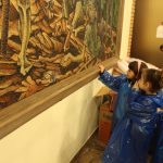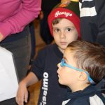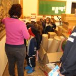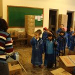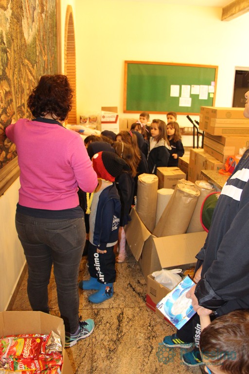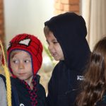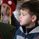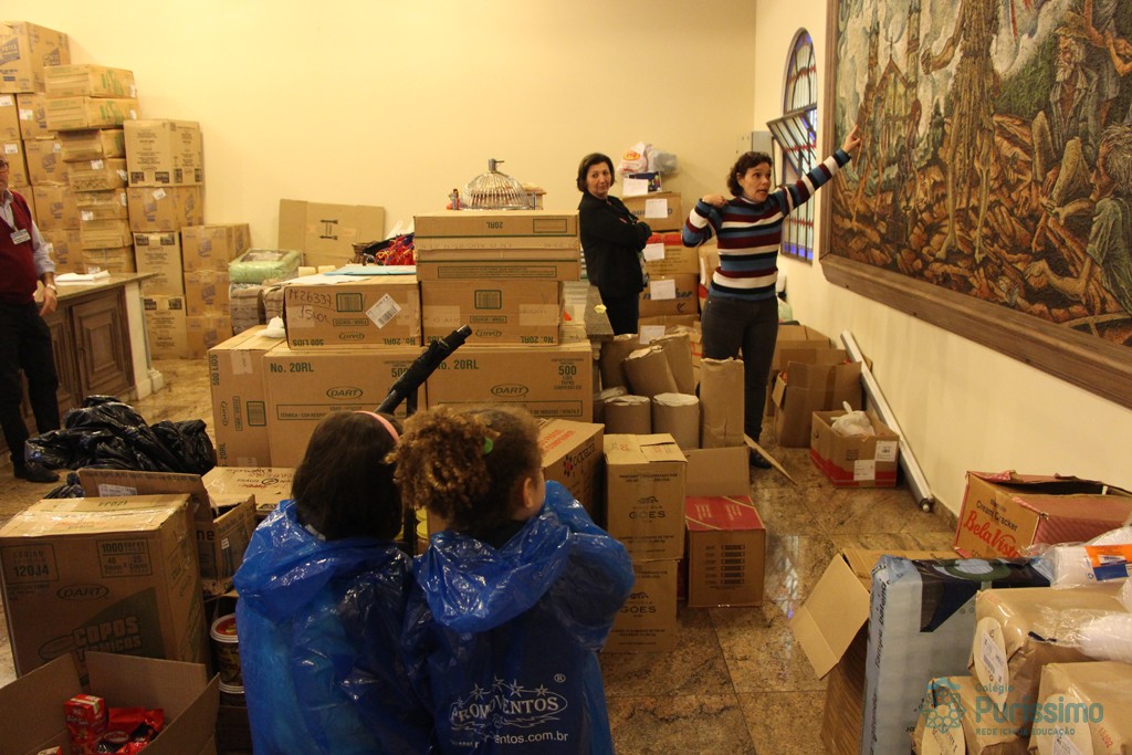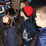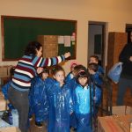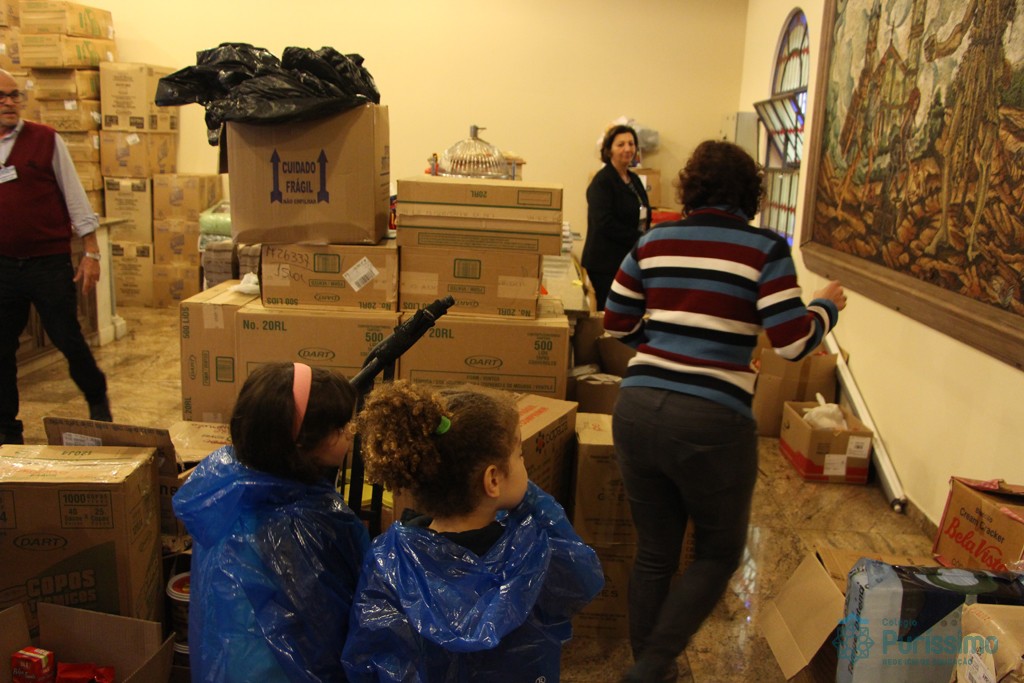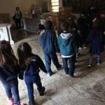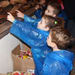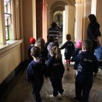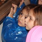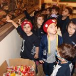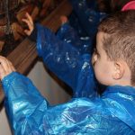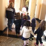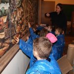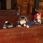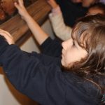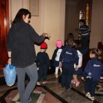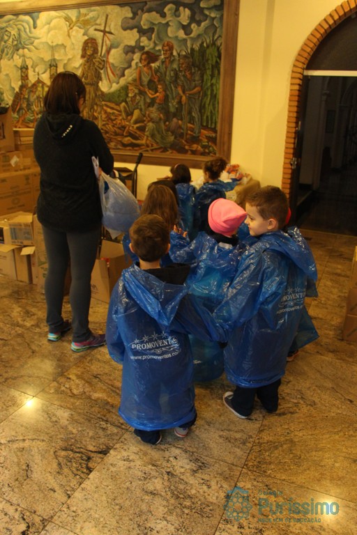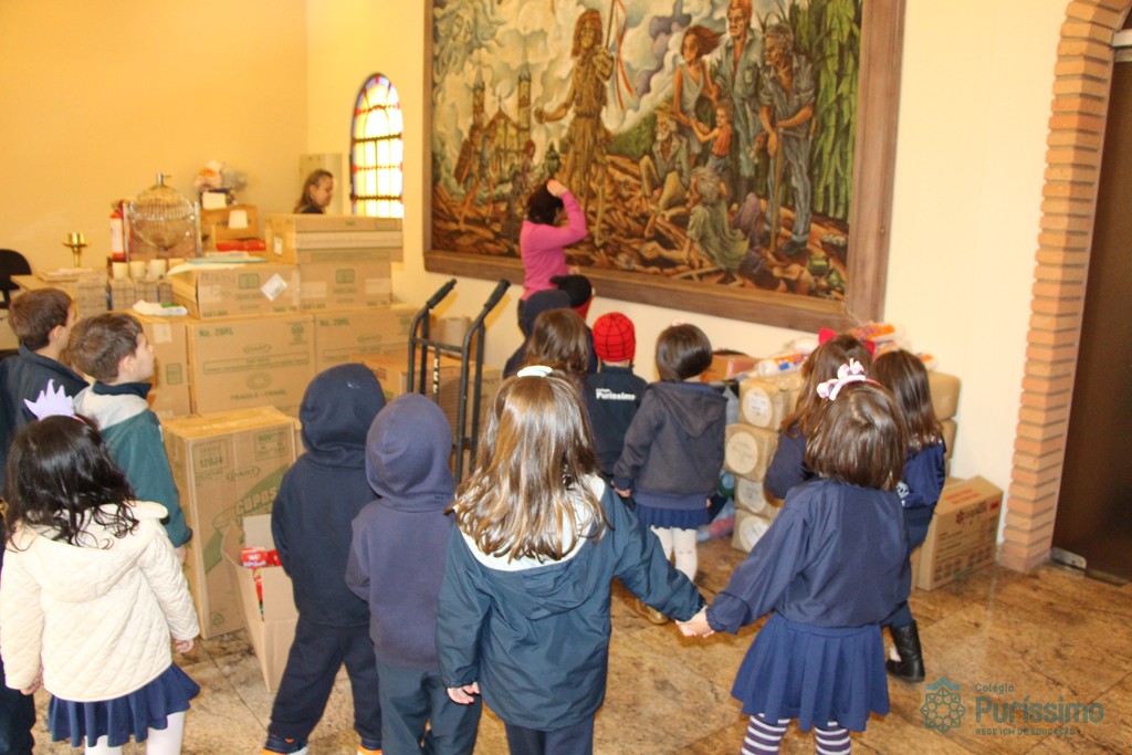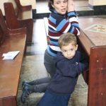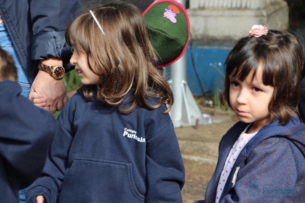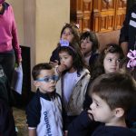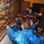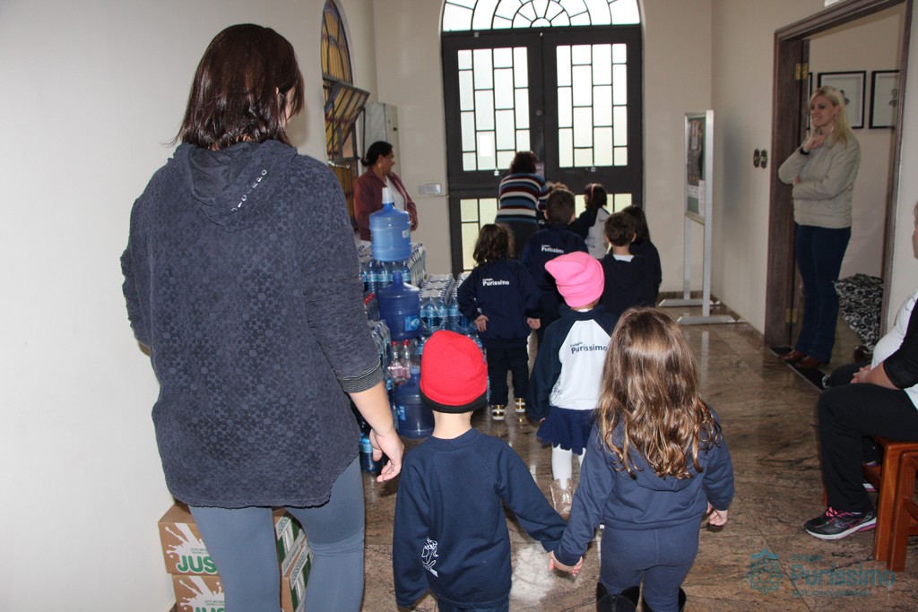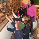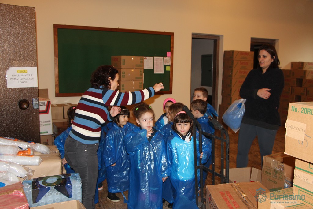 Os pequenos puderam visitar a parte interna da igreja que possui um quadro que usa diferentes materiais artísticos, eles tocaram e puderam sentir elementos como: prego, serragem, madeira, entre outros.