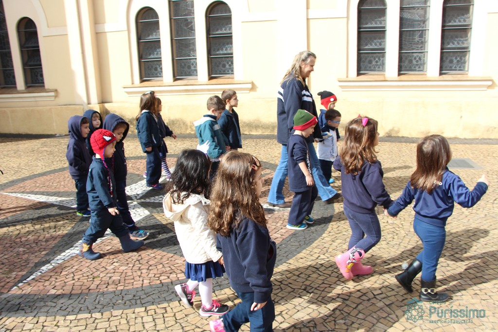 Os nossos pequenos alunos do Jardim I, já começaram a aprender sobre a arte e seus diversos formatos. Com a intenção de fomentar ainda mais esses estudos, eles visitaram na última semana a Igreja Matriz São João Batista, localizada na praça em frente ao colégio.