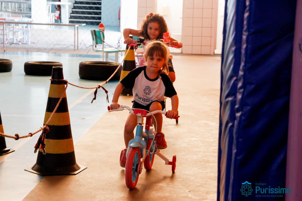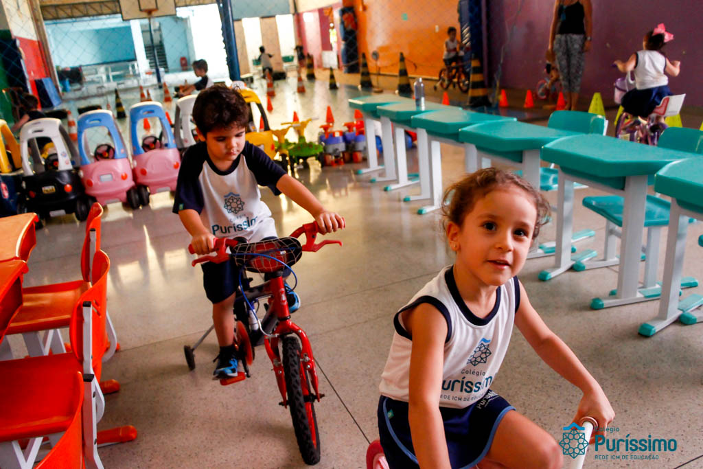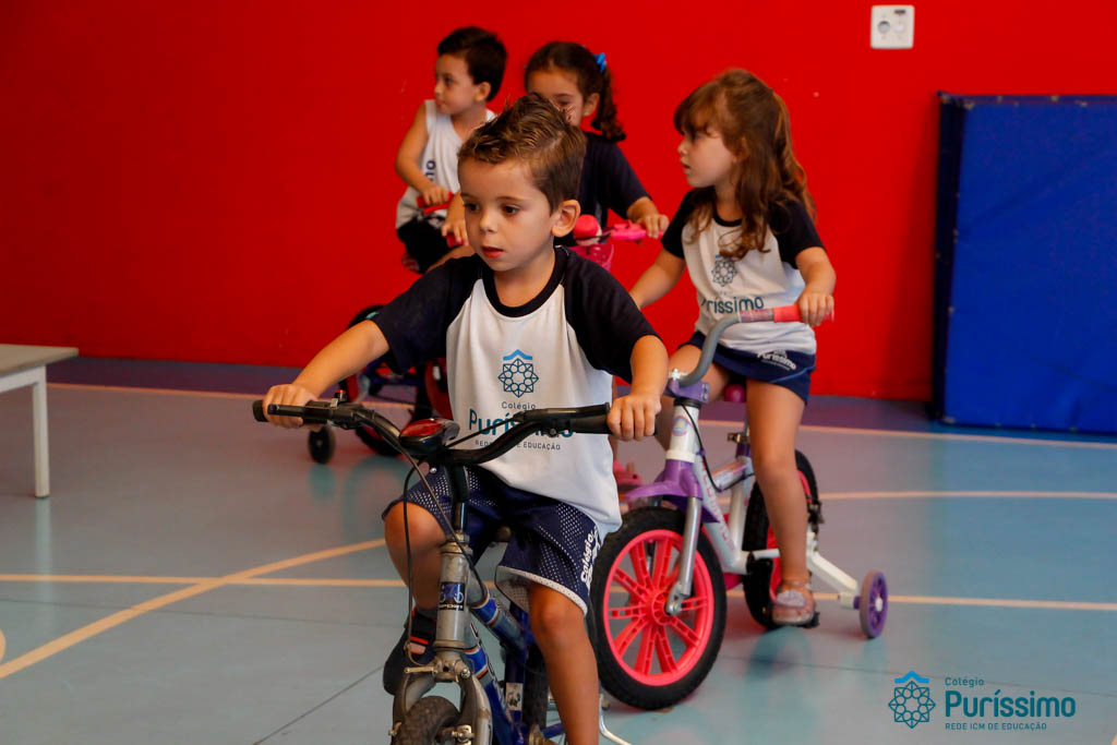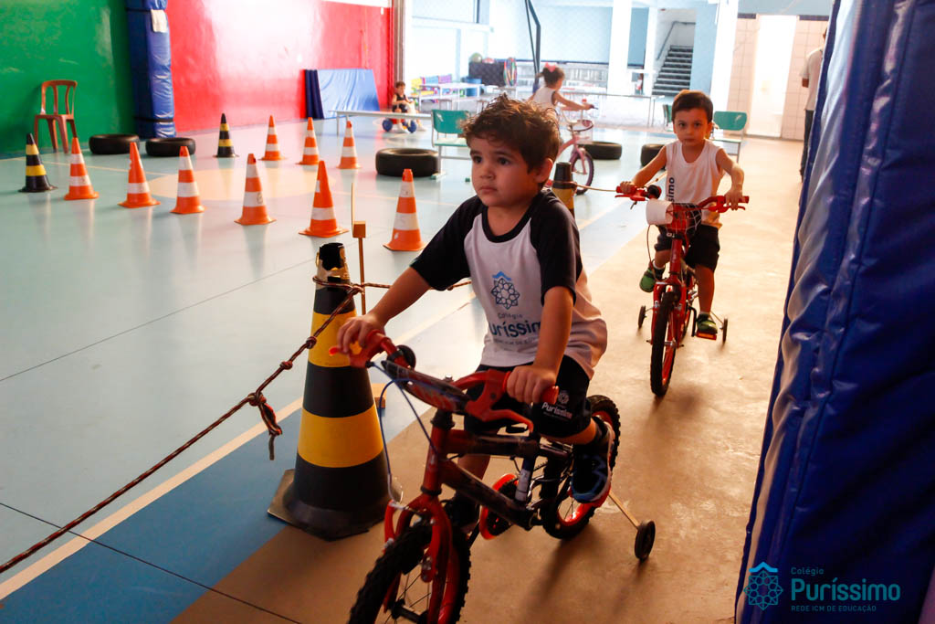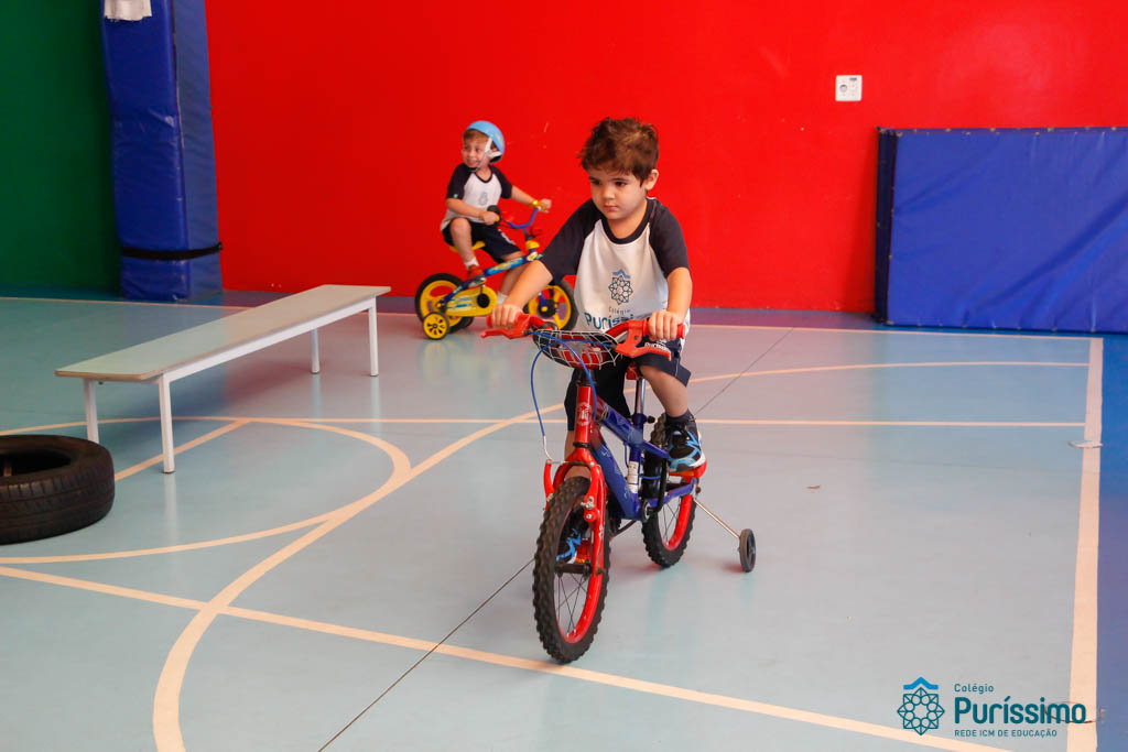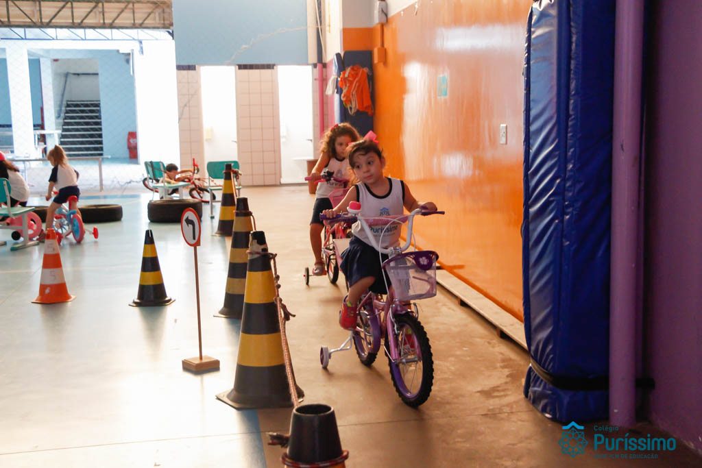 Neste dia, “o dia da pedalada”, as crianças passaram por um circuito. O intuito é deixá-los e/ou ensiná-los a pedalar. Lembrando que pedalar não é instintivo, é um aprendizado e que trabalha a coordenação motora, a força, o equilíbrio e também estimula a atenção, a concentração e a disciplina.