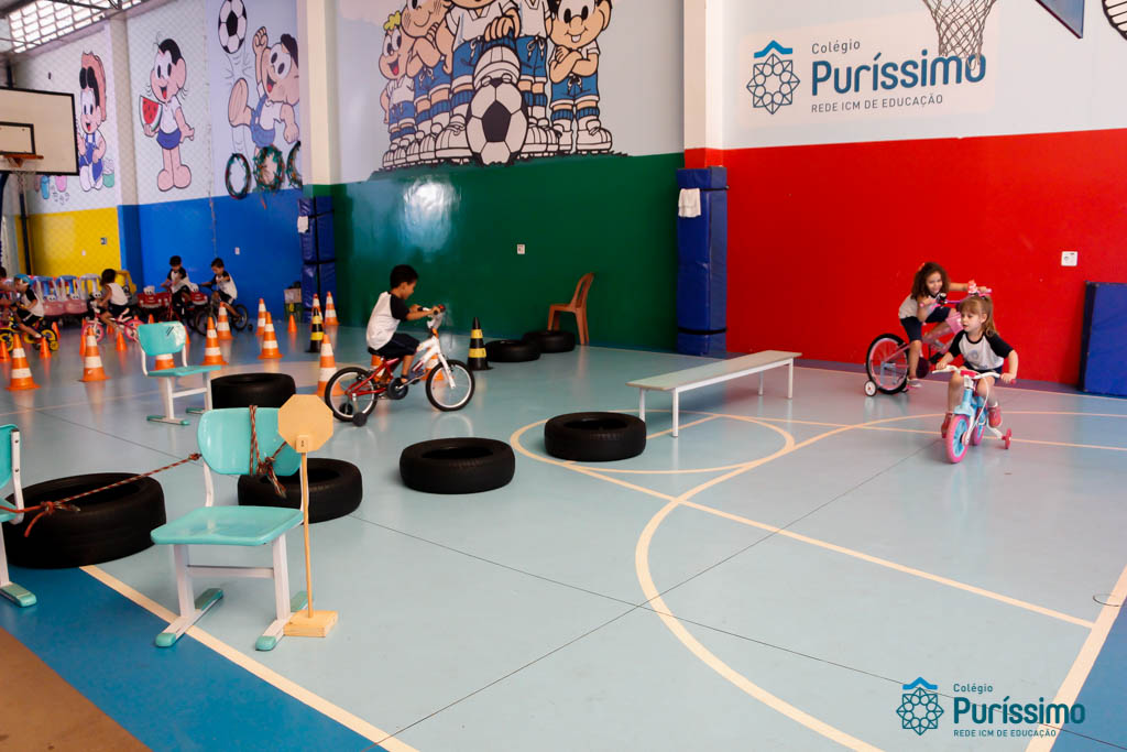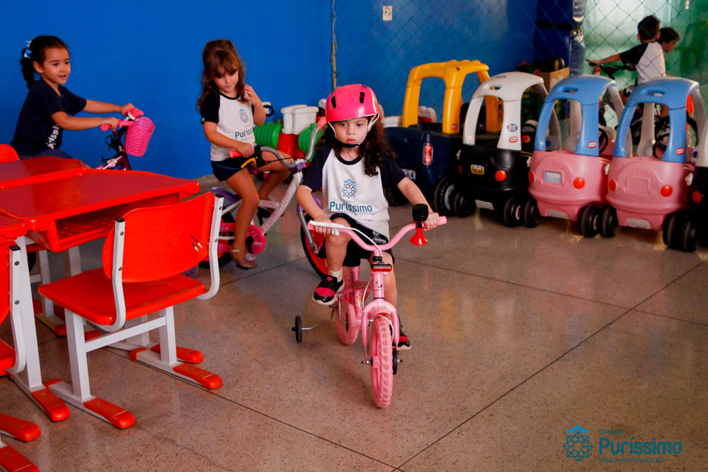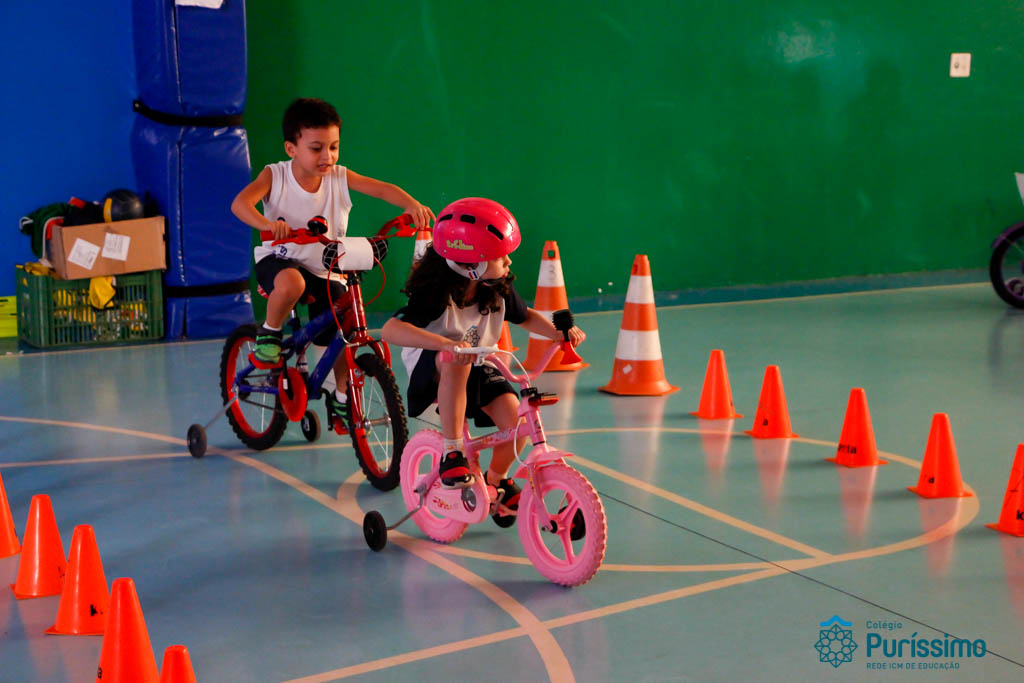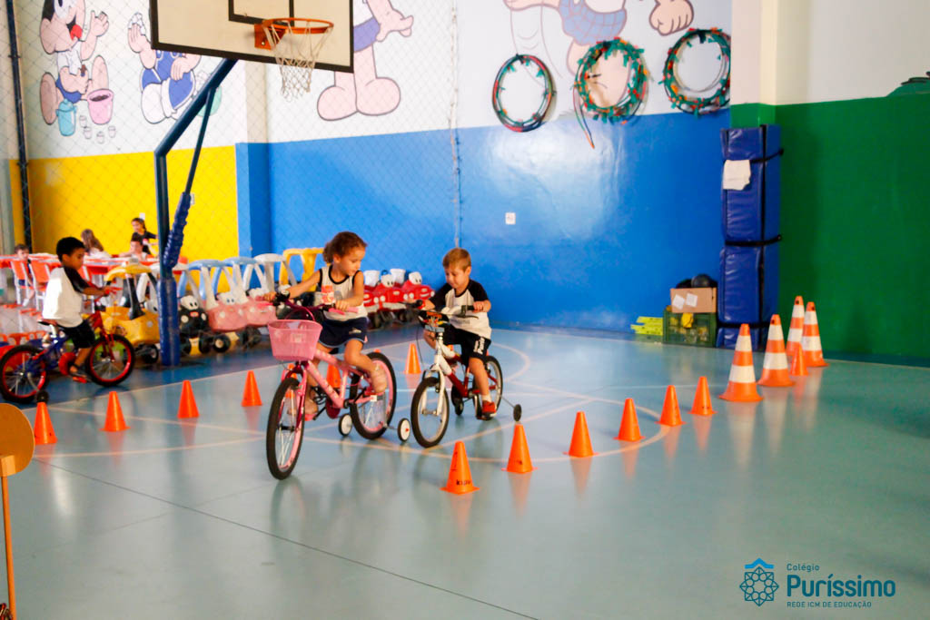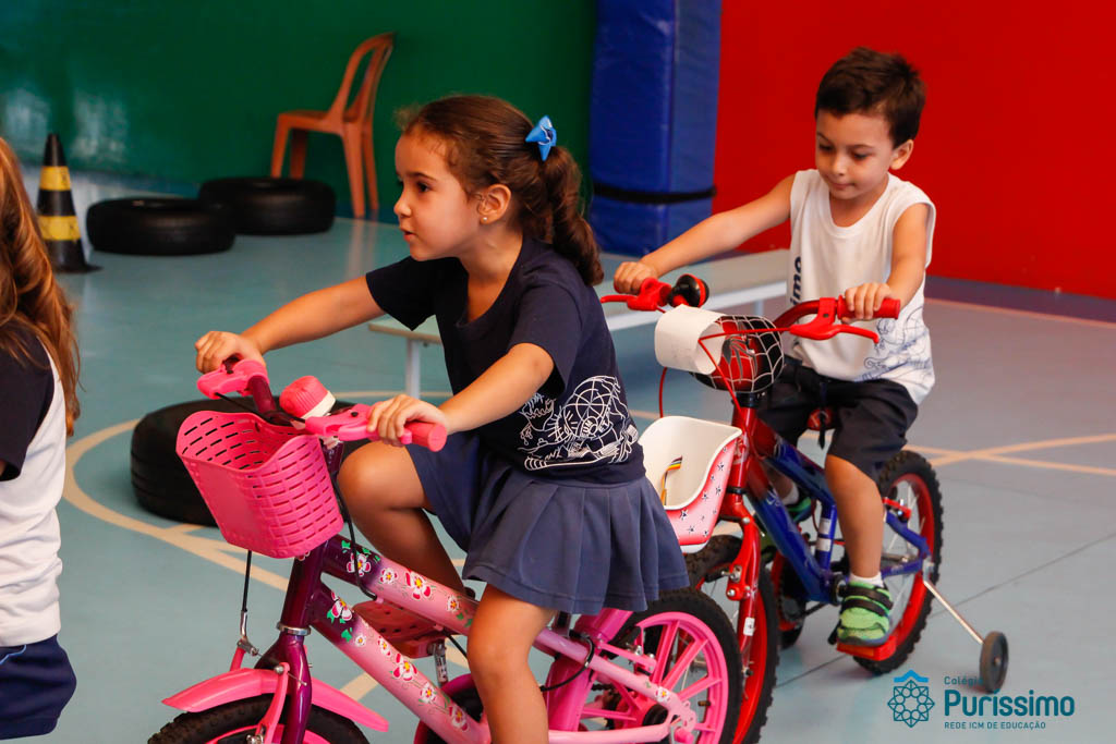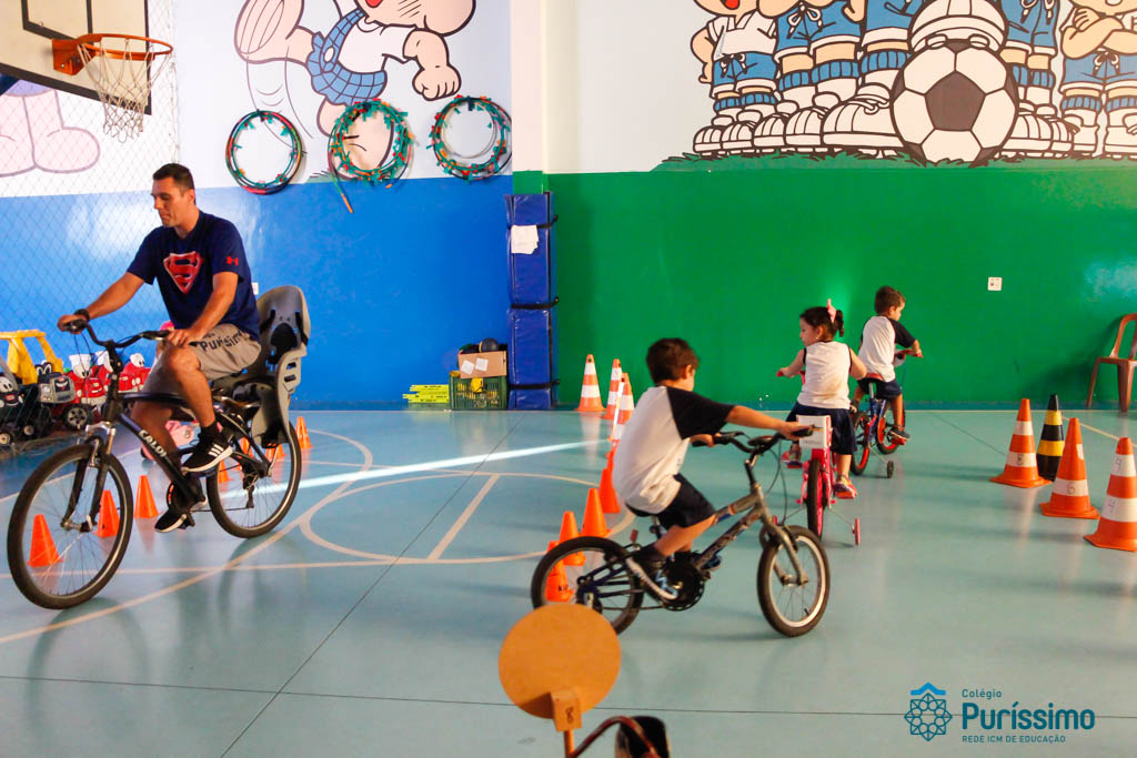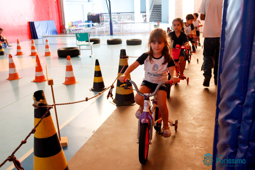 Neste dia, “o dia da pedalada”, as crianças passaram por um circuito. O intuito é deixá-los e/ou ensiná-los a pedalar. Lembrando que pedalar não é instintivo, é um aprendizado e que trabalha a coordenação motora, a força, o equilíbrio e também estimula a atenção, a concentração e a disciplina.