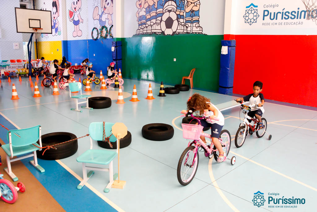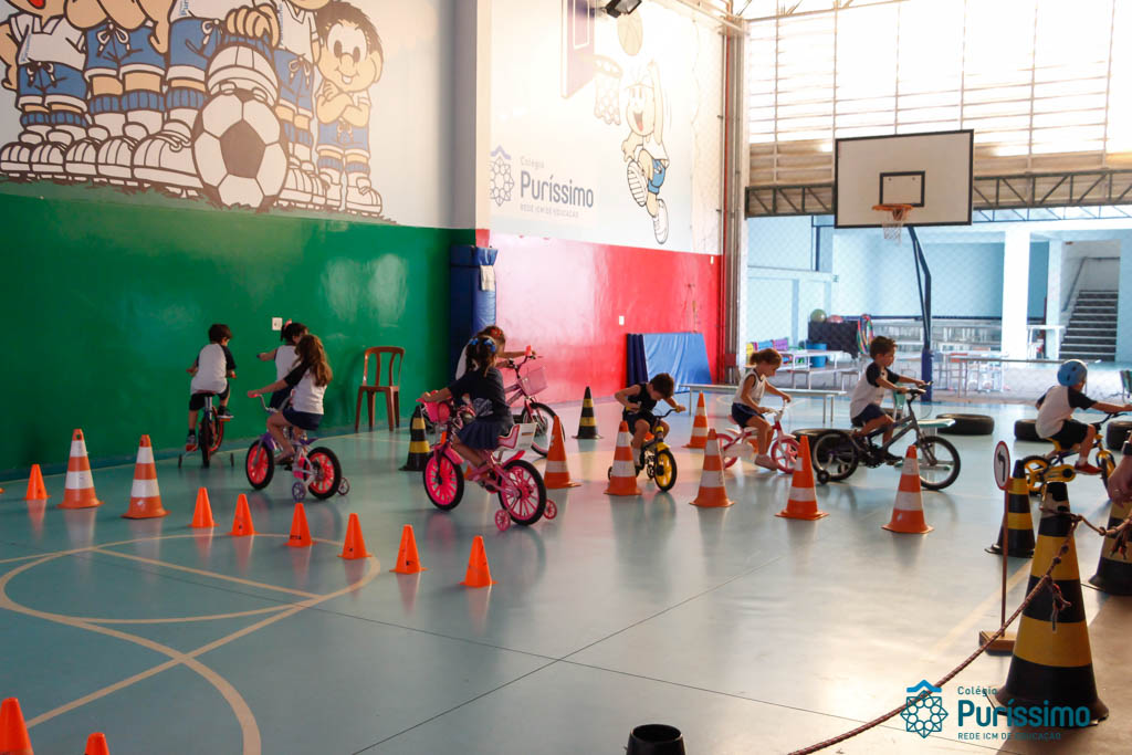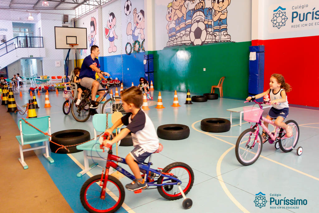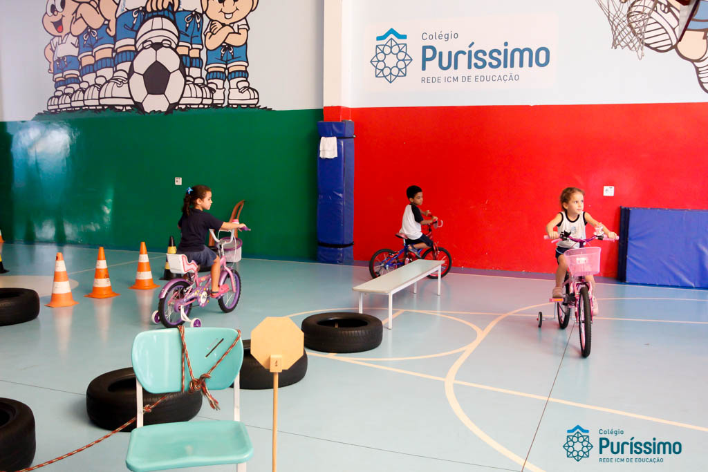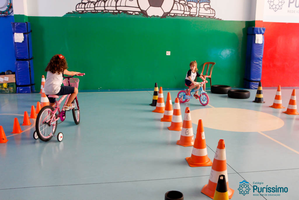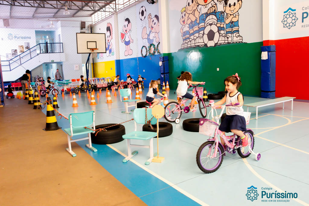 Neste dia, “o dia da pedalada”, as crianças passaram por um circuito. O intuito é deixá-los e/ou ensiná-los a pedalar. Lembrando que pedalar não é instintivo, é um aprendizado e que trabalha a coordenação motora, a força, o equilíbrio e também estimula a atenção, a concentração e a disciplina.