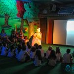 Durante o passeio, as crianças ouviram história da Vó Cotinha, que estava com a casa virada de ponta-cabeça e eles precisavam desvendar esse mistério, para isso, conversaram com o prefeito da Cidade do Livro, onde também aprenderam o valor da amizade, com a Dona Tracinha, que reforçou a importância de respeitar as diferenças e com a Vó Cotinha, que ensinou sobre empatia e respeito. Além disso, eles também conheceram um pouco da história do papel, das histórias em braile, sobre os animais, higiene e, é claro, leram e observaram diversos livros.