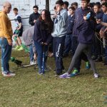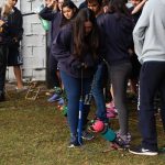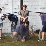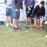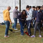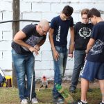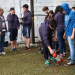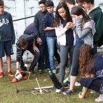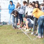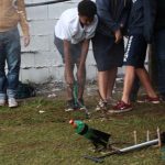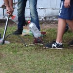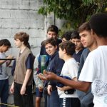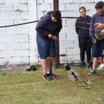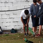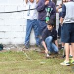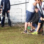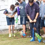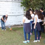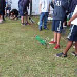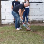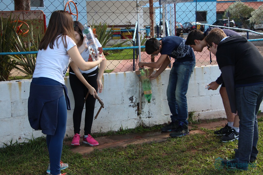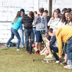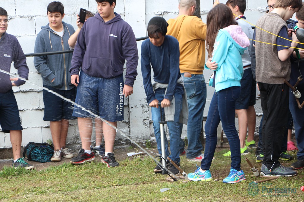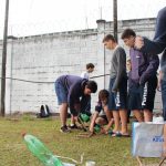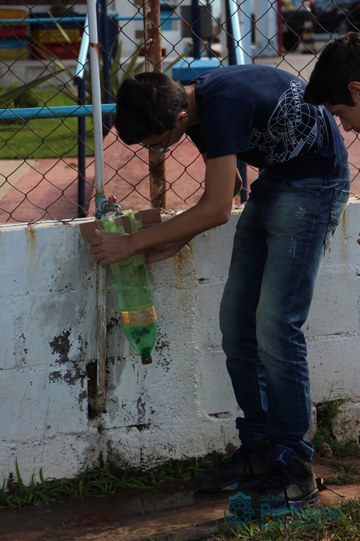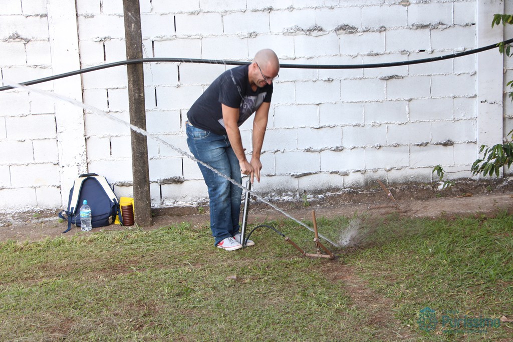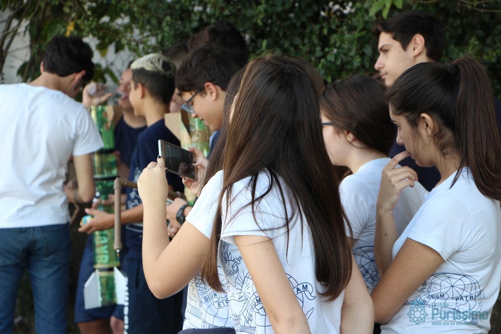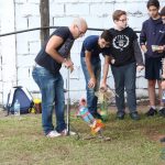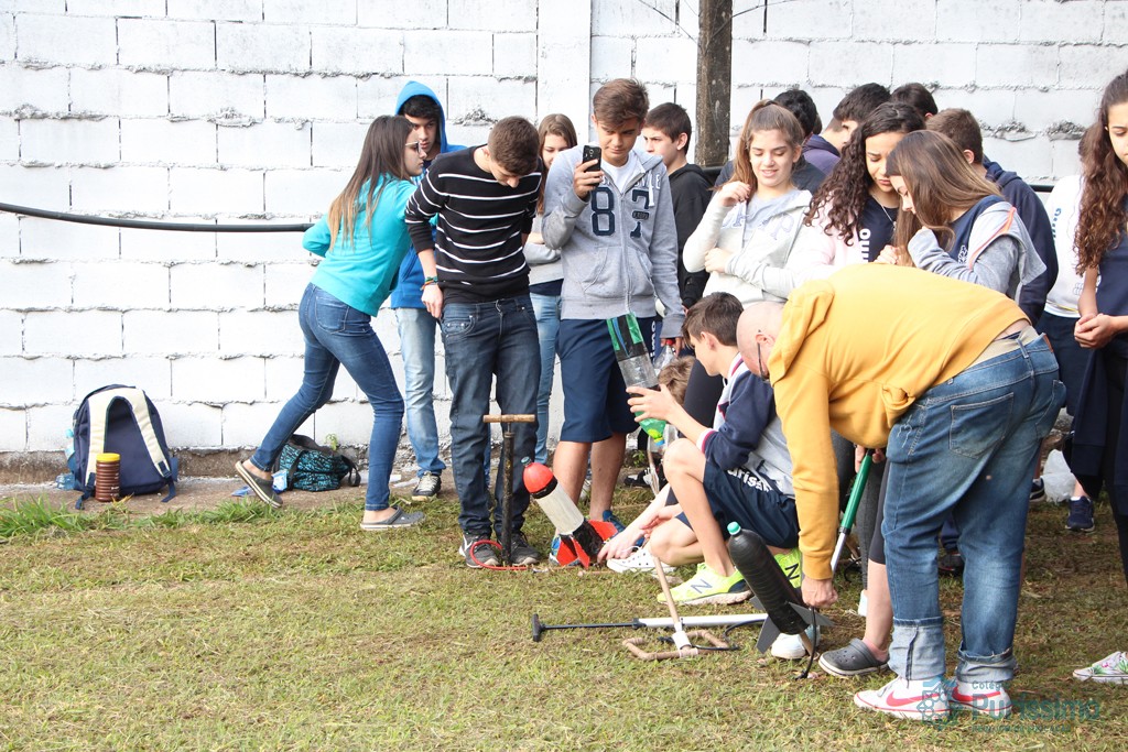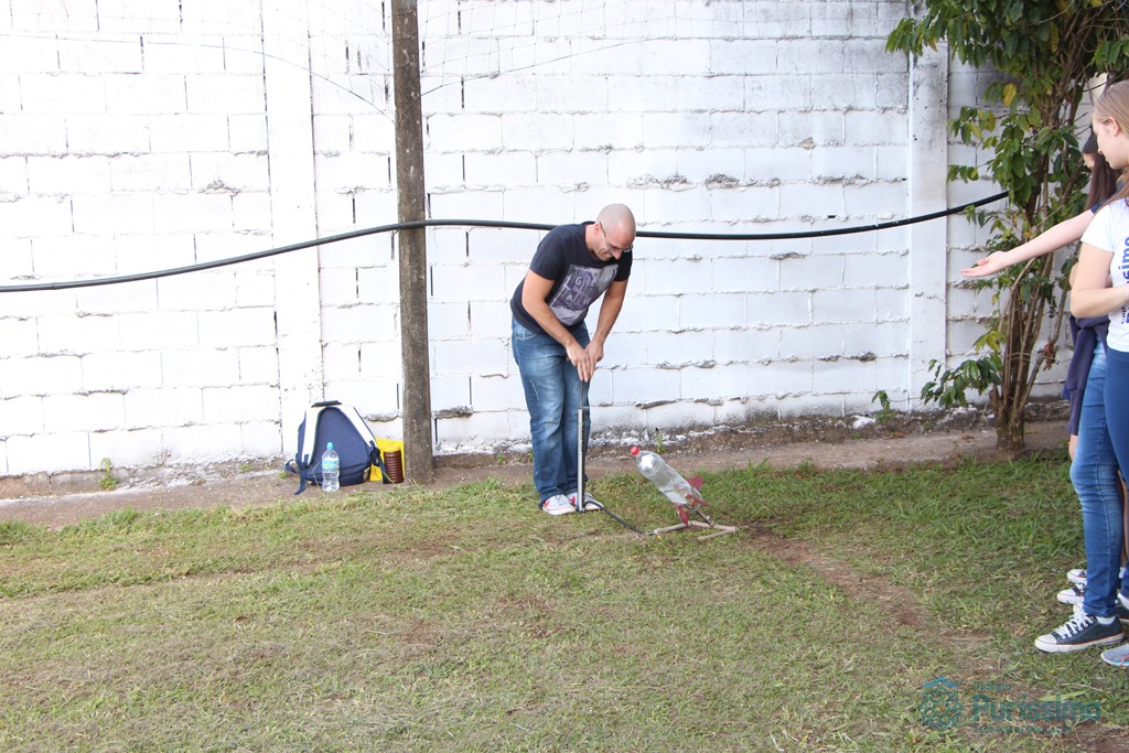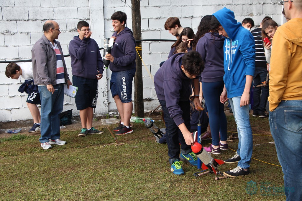 Para lançar os foguetes produzidos com garrafas PET e movidos à água e ar comprimido, os alunos se organizaram em equipes assim realizaram os lançamentos que foram medidos a fim de selecionar os projetos para participar da Mostra Brasileira de Foguetes (MOBFOG).