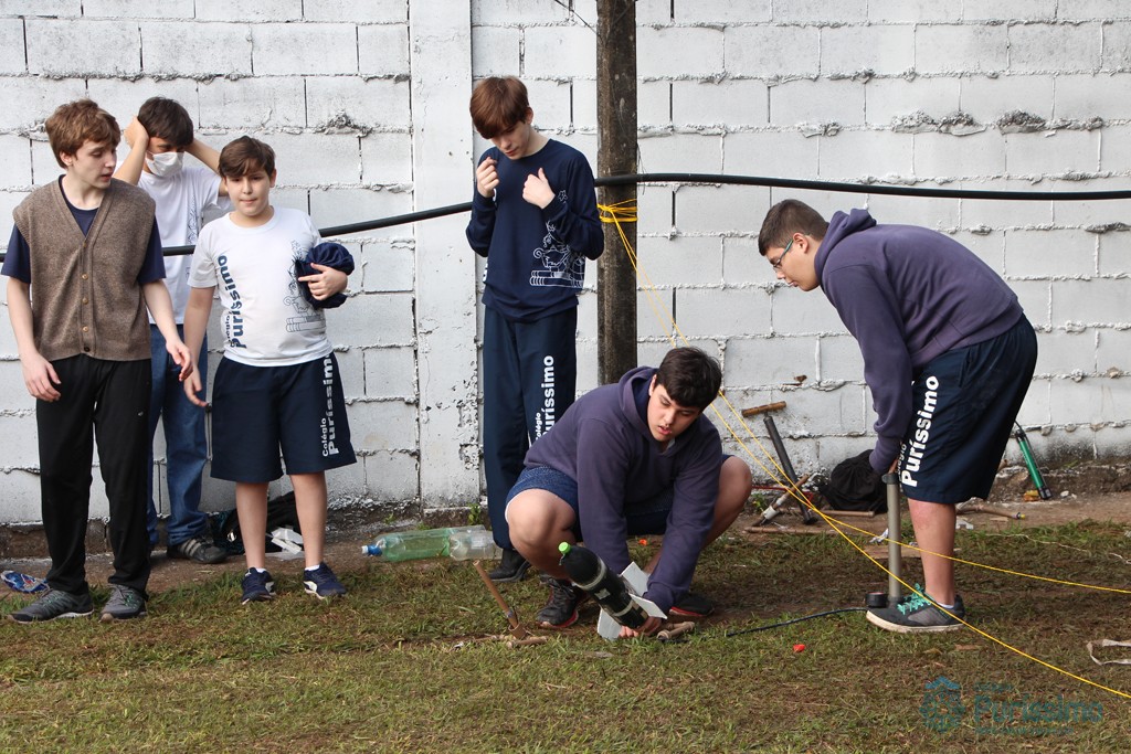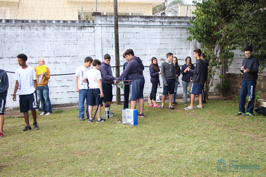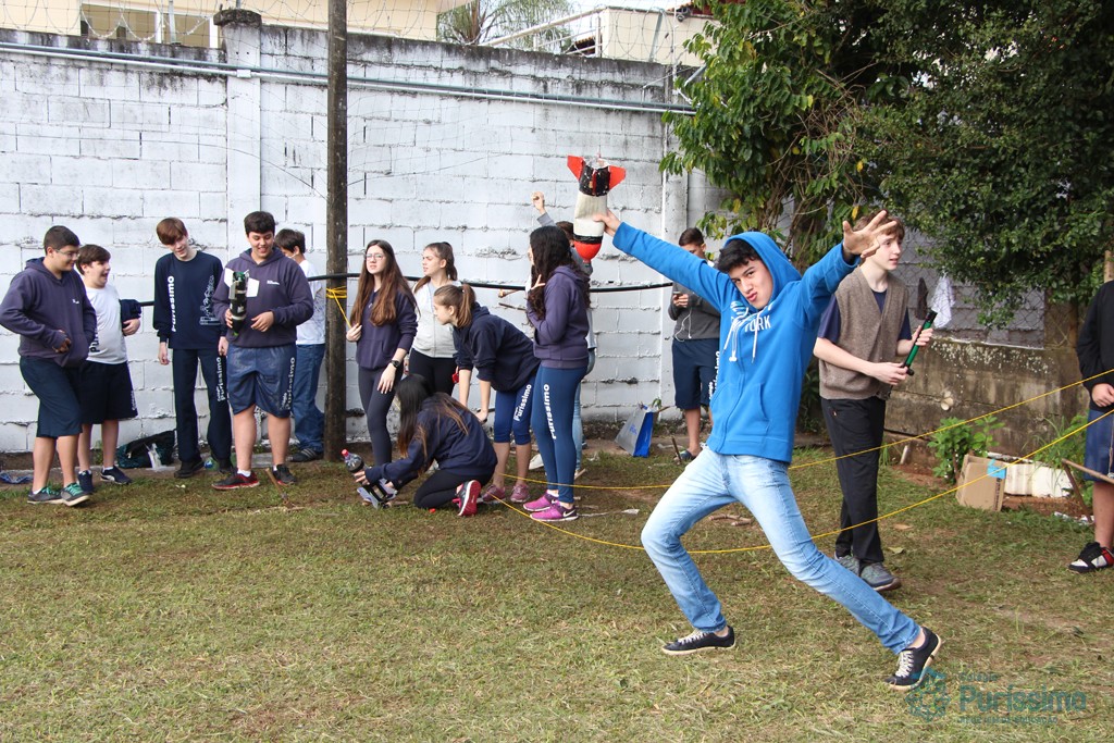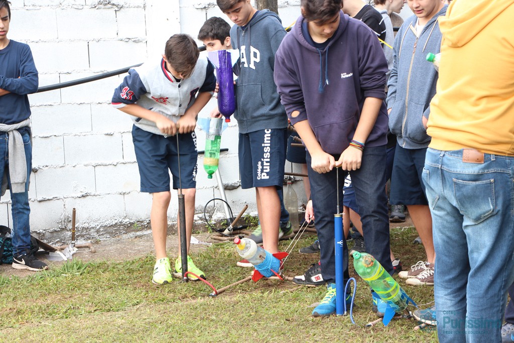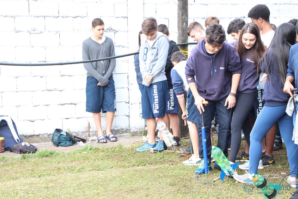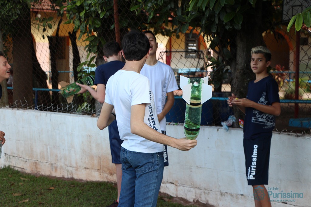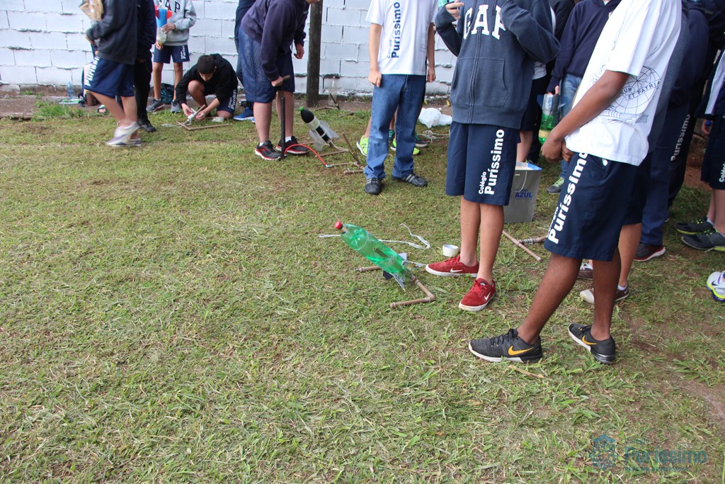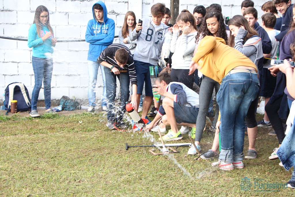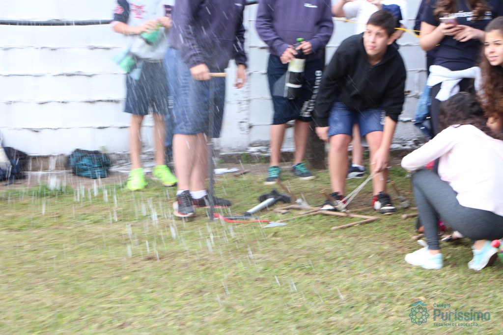Os alunos do 9º ano do Colégio Puríssimo participaram nos dias 19 e 20 de junho do lançamento de foguetes de garrafas Pet, no campo do Abrigo São Vicente de Paulo.