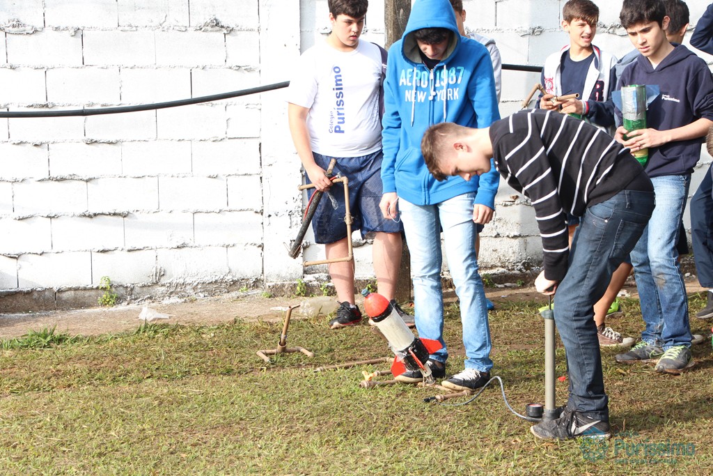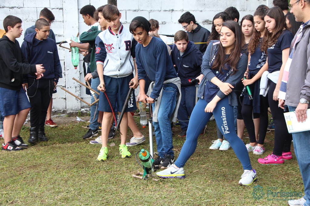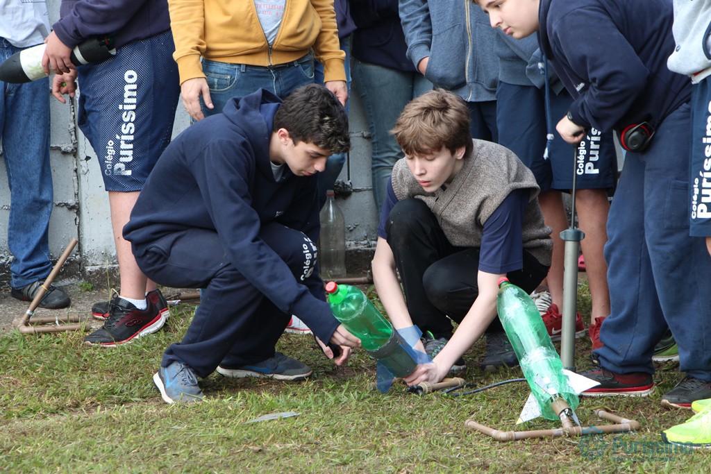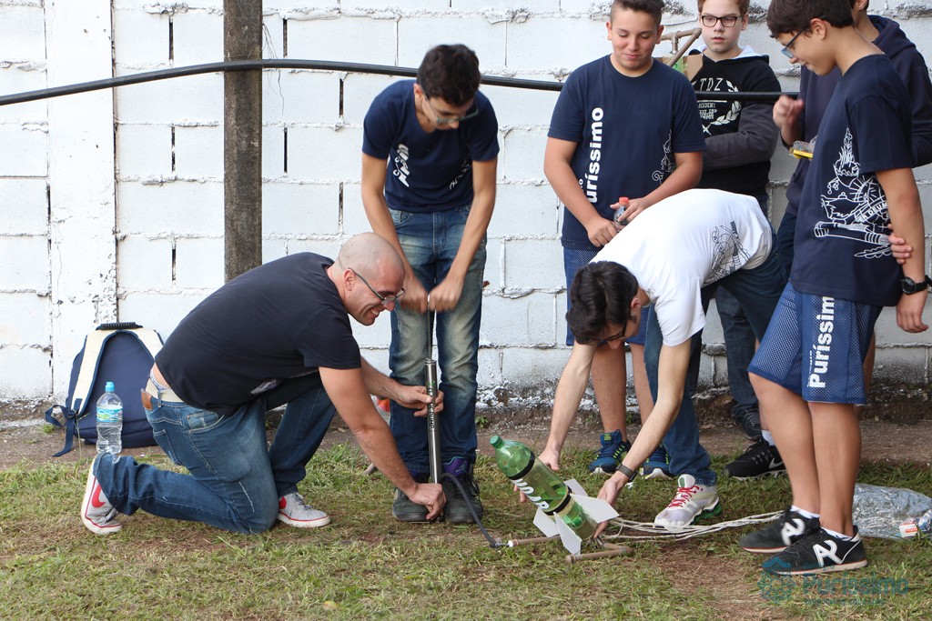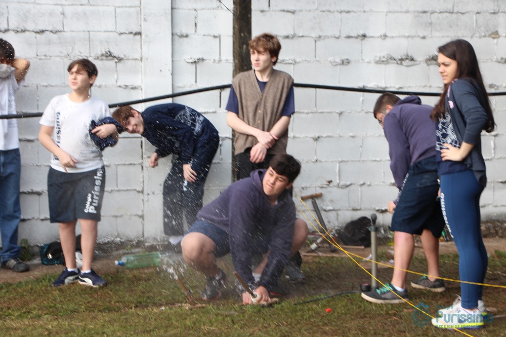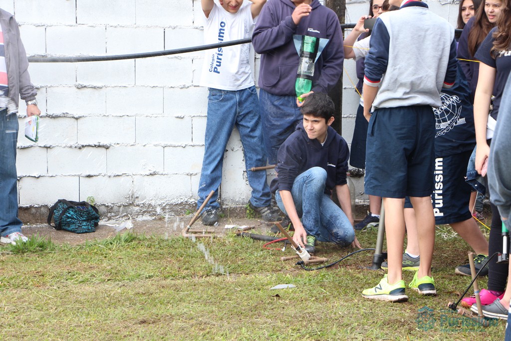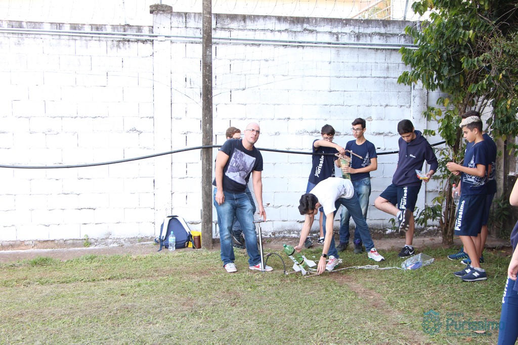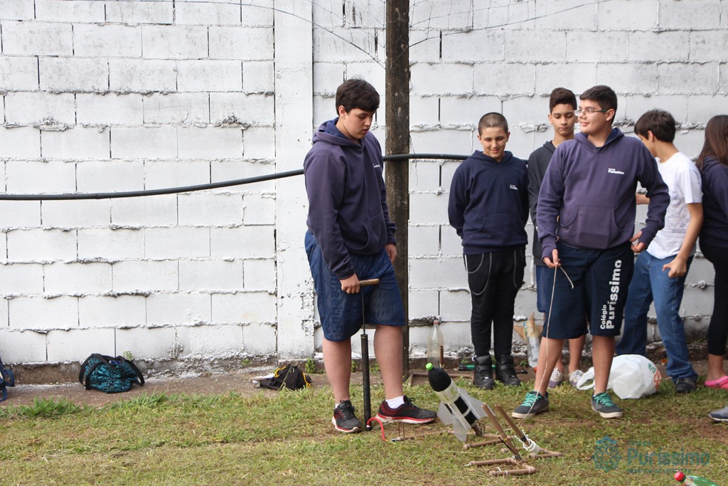 Os alunos do 9º ano do Colégio Puríssimo participaram nos dias 19 e 20 de junho do lançamento de foguetes de garrafas Pet, no campo do Abrigo São Vicente de Paulo.