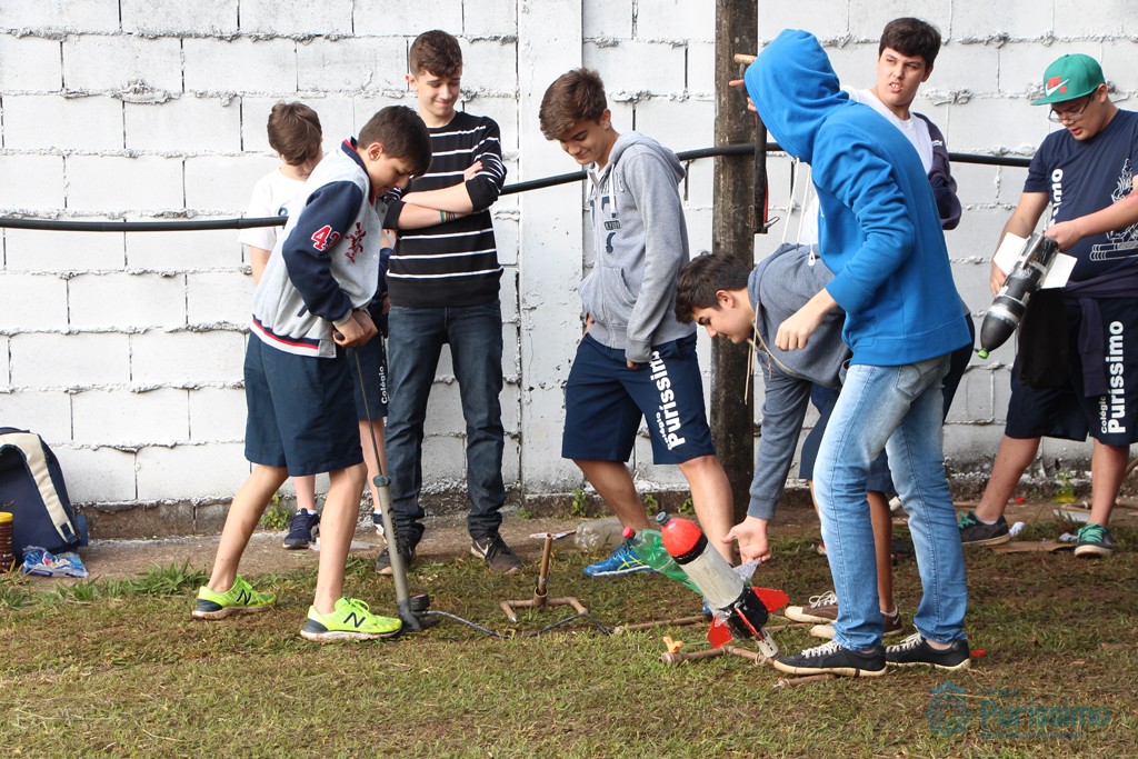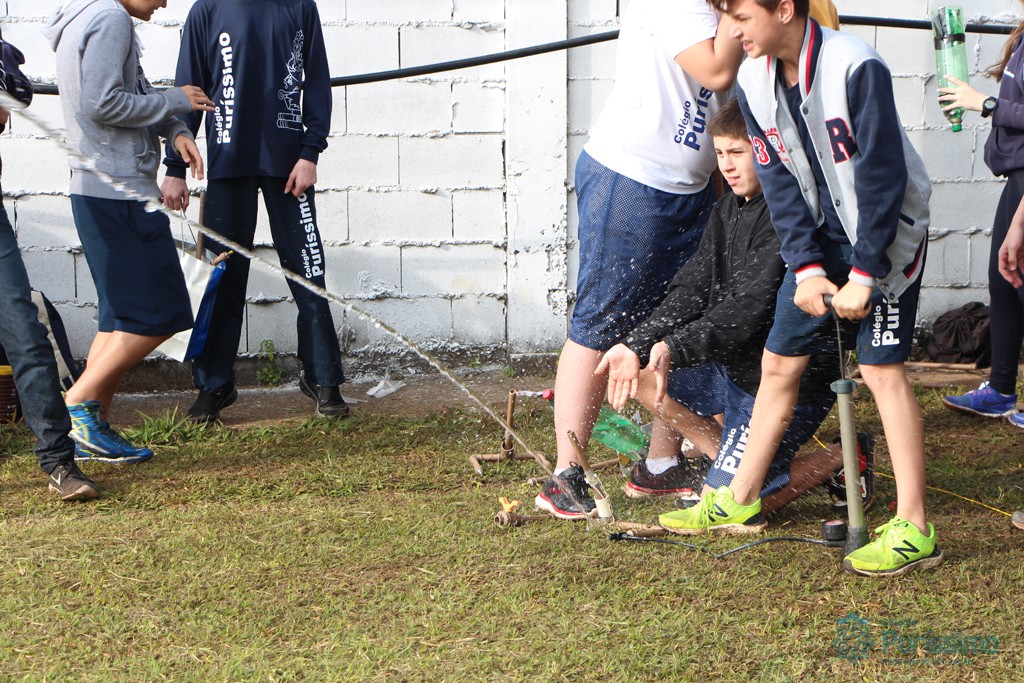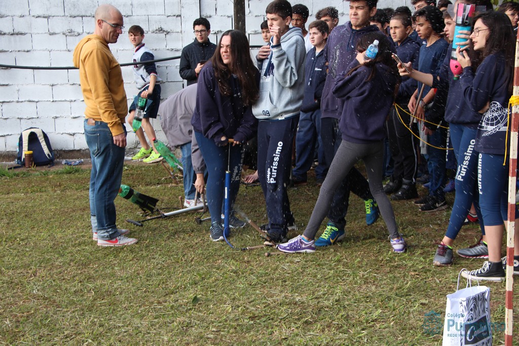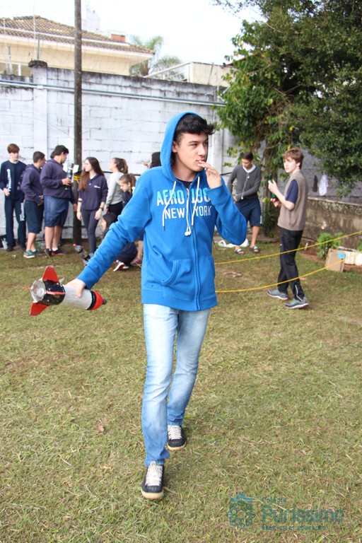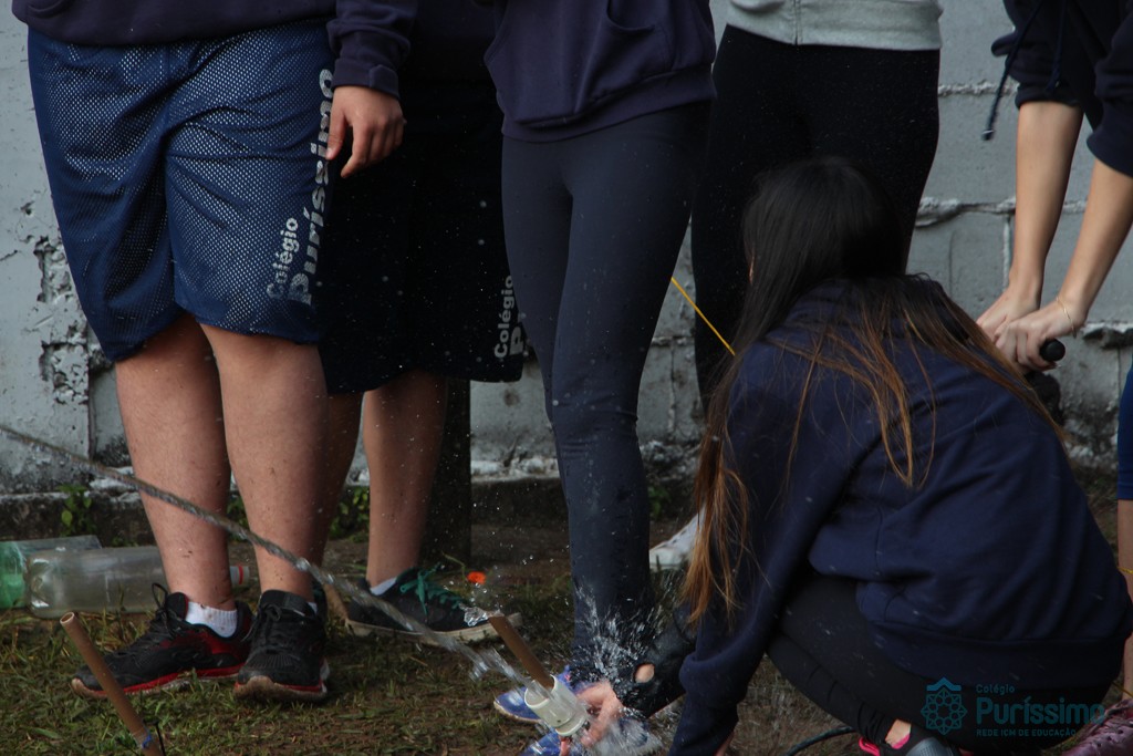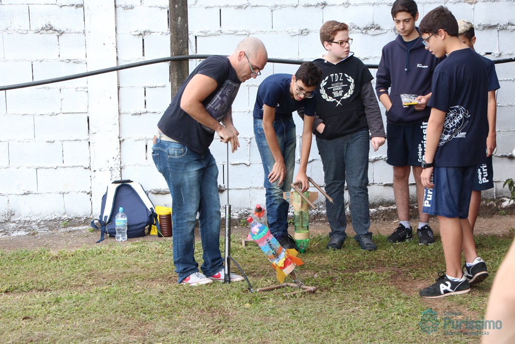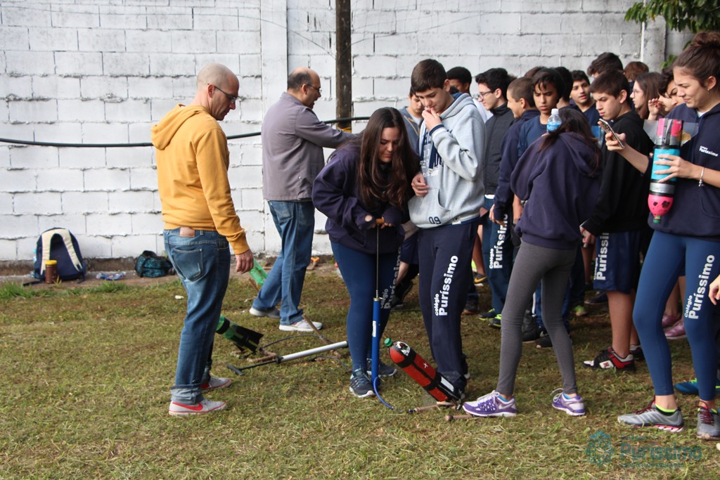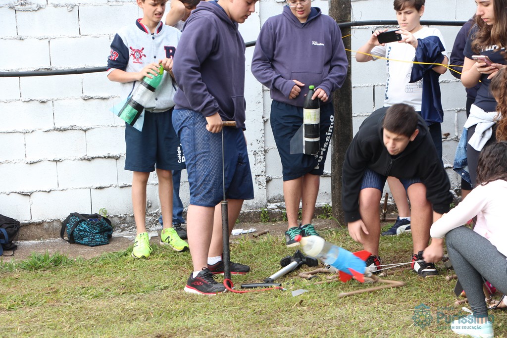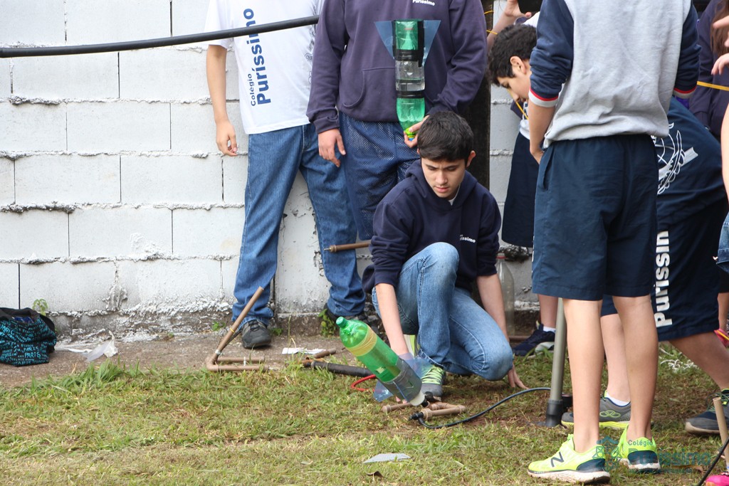 Os alunos do 9º ano do Colégio Puríssimo participaram nos dias 19 e 20 de junho do lançamento de foguetes de garrafas Pet, no campo do Abrigo São Vicente de Paulo.