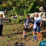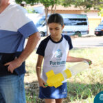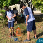 Para isso, cada dupla construiu o seu próprio foguete utilizando garrafa PET e o objetivo era lançar, a partir de uma base, a maior distância possível.