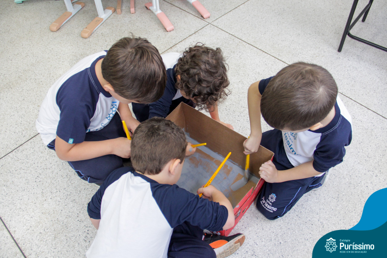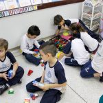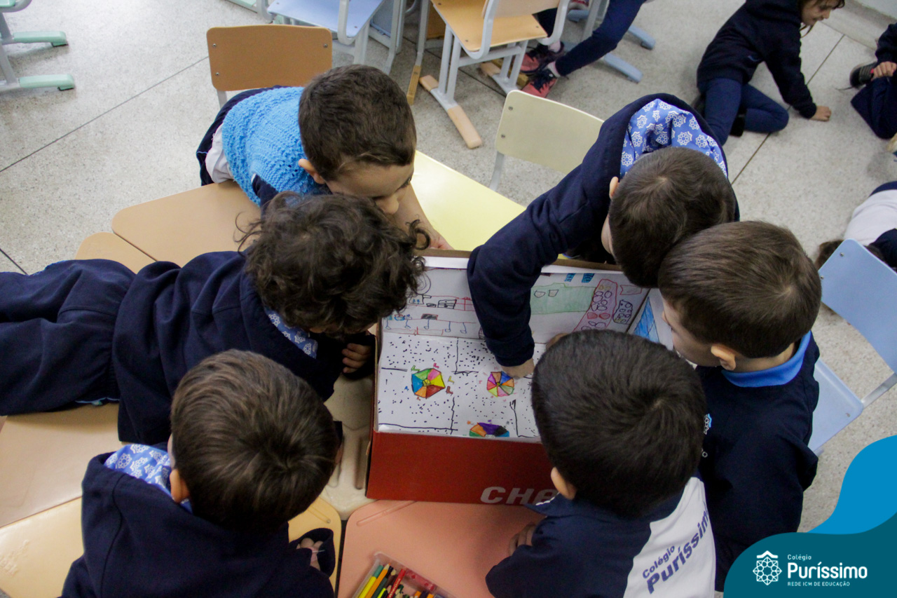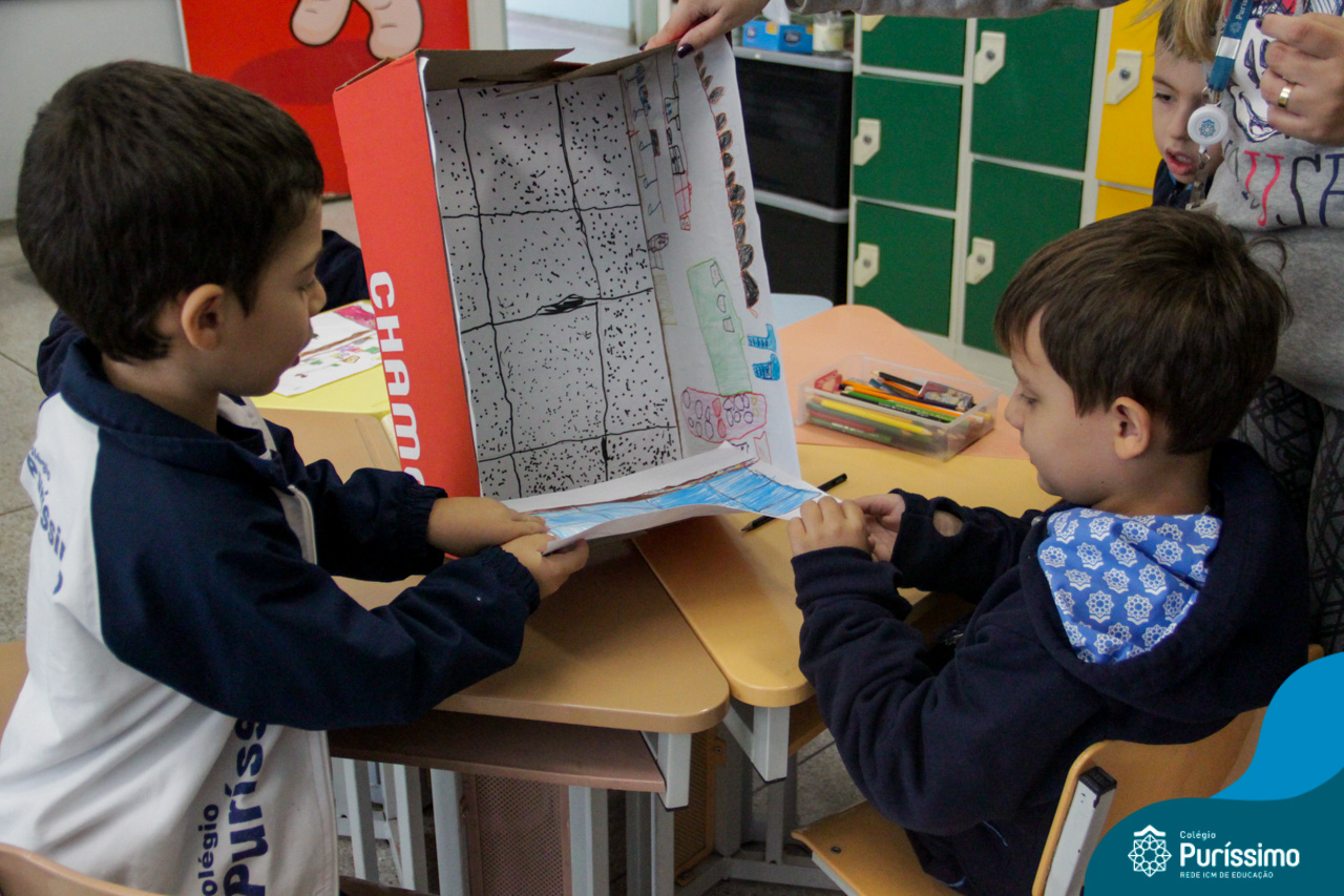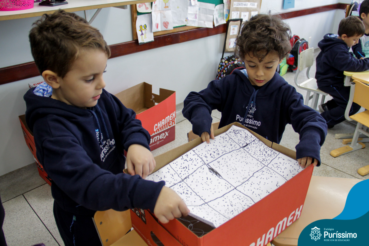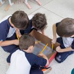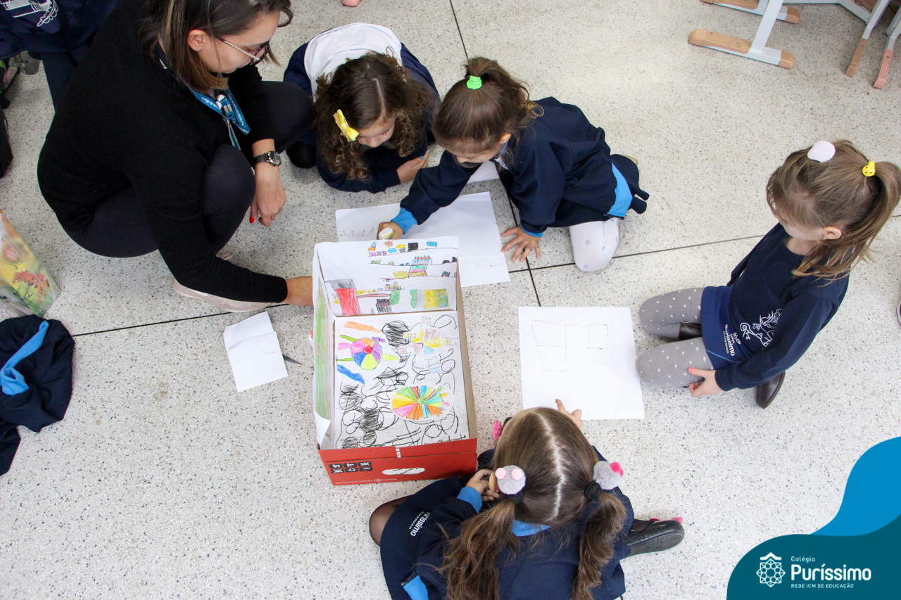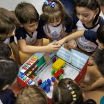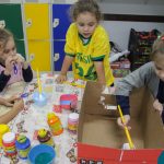 Para isso, iniciaram um projeto com iPads utilizando o jogo “Toca Builders”, onde as crianças tiveram que tentar reproduzir a sala de aula. Após a construção digital, partiram para a construção da maquete 2D onde as crianças divididas em grupos desenharam a sala. A terceira fase foi a construção da maquete com sucata e materiais que tinham na sala, como massinha, tinta e brinquedos.