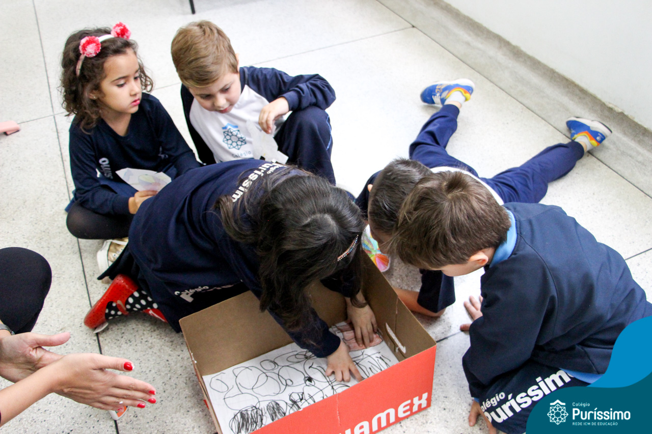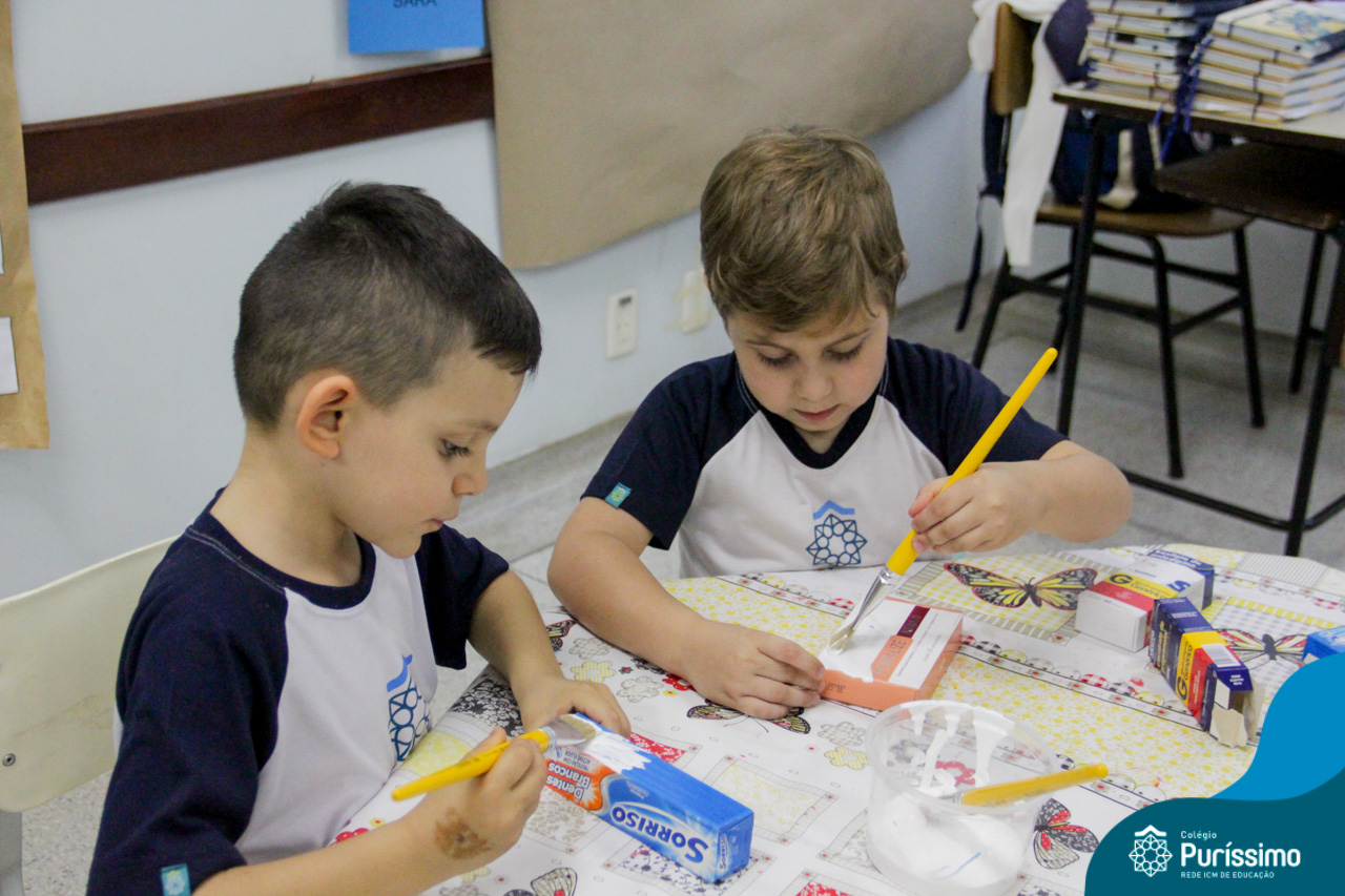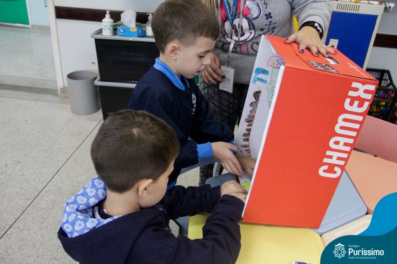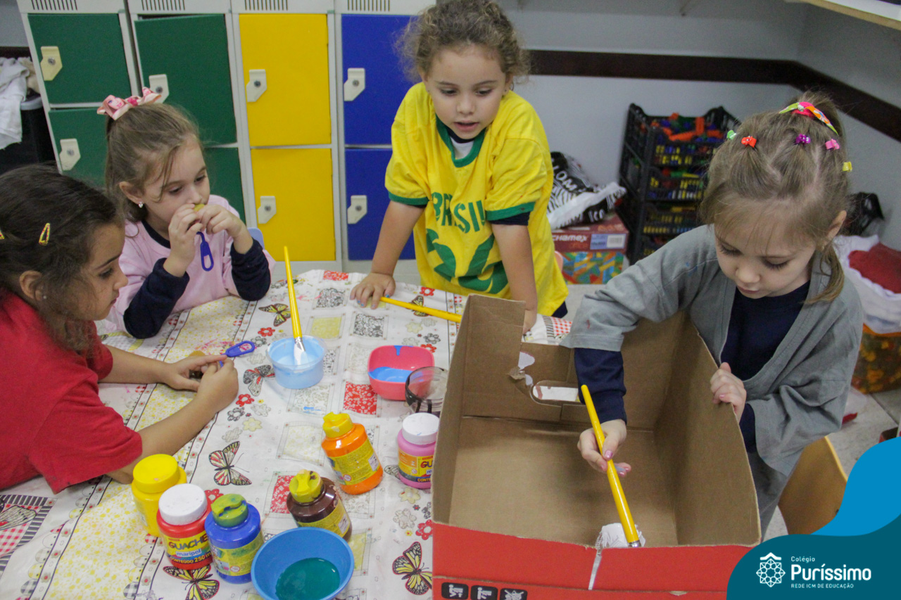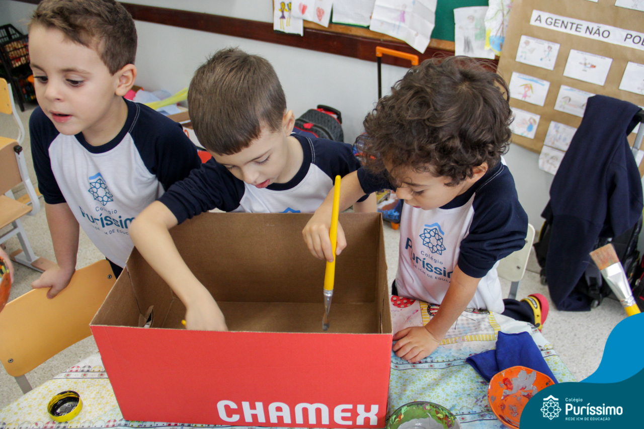 Para isso, iniciaram um projeto com iPads utilizando o jogo “Toca Builders”, onde as crianças tiveram que tentar reproduzir a sala de aula. Após a construção digital, partiram para a construção da maquete 2D onde as crianças divididas em grupos desenharam a sala. A terceira fase foi a construção da maquete com sucata e materiais que tinham na sala, como massinha, tinta e brinquedos.