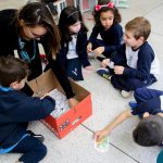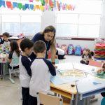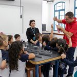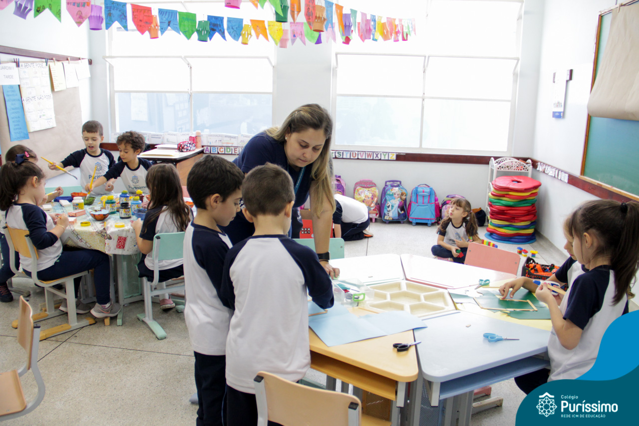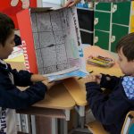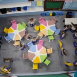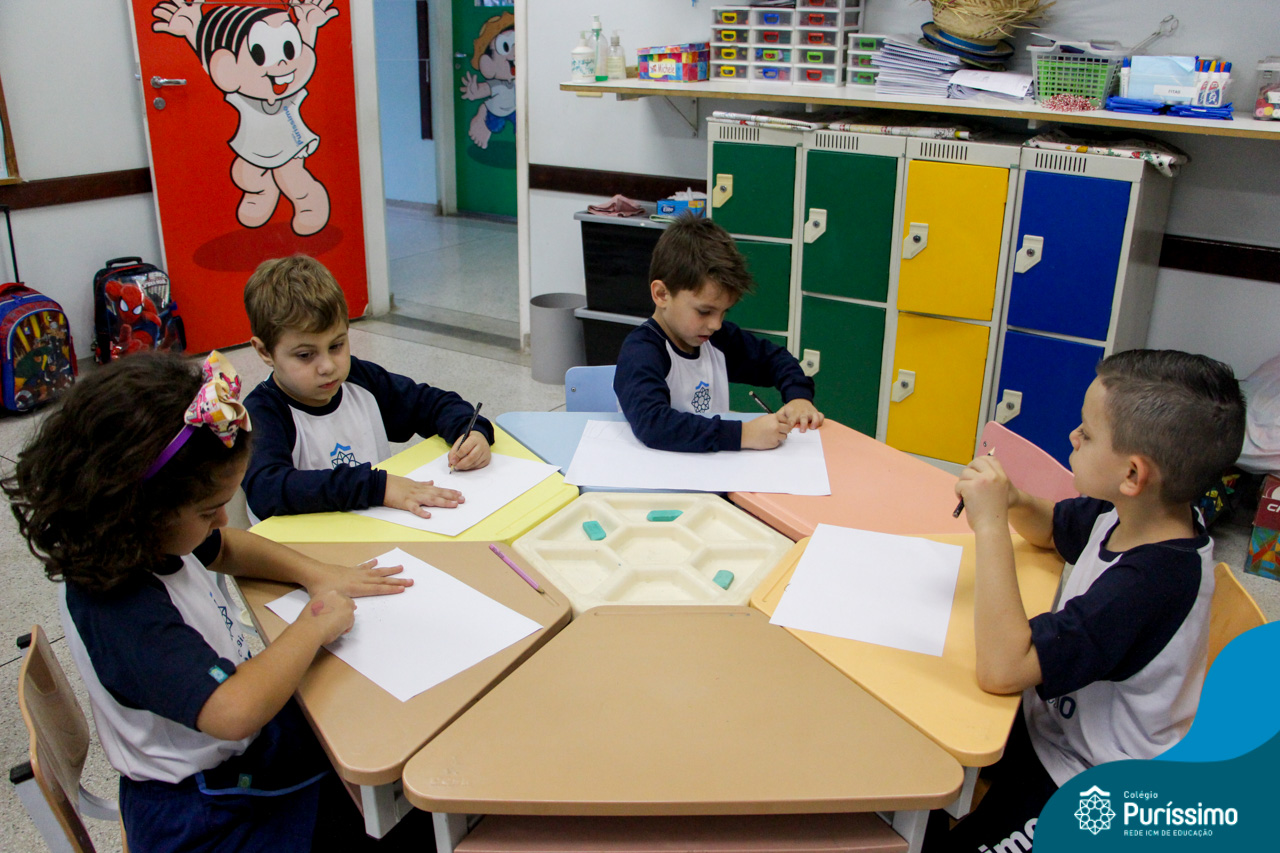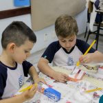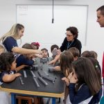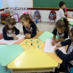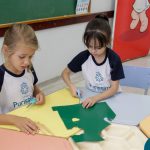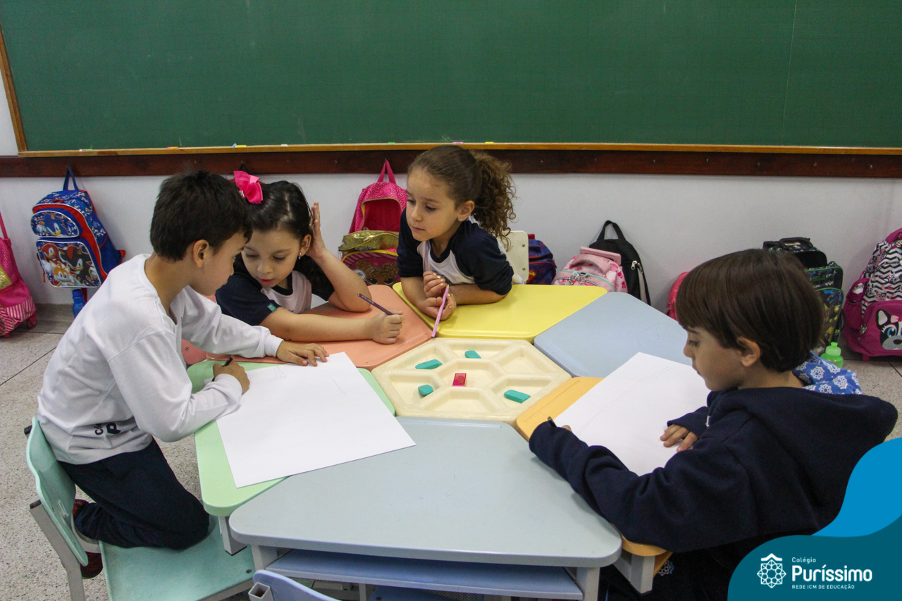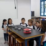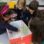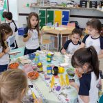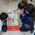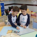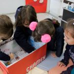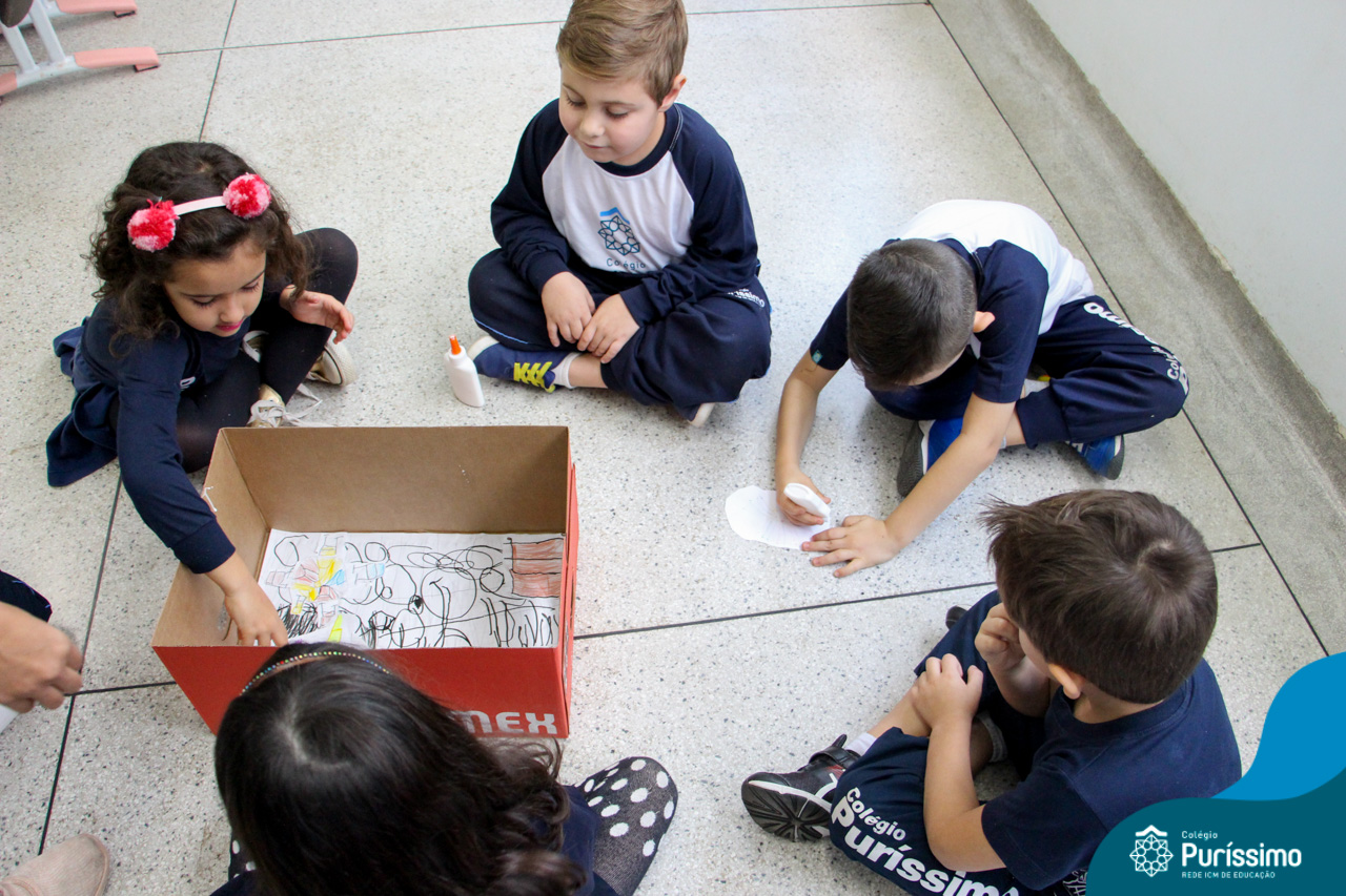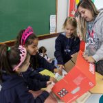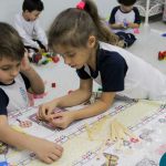 Para isso, iniciaram um projeto com iPads utilizando o jogo “Toca Builders”, onde as crianças tiveram que tentar reproduzir a sala de aula. Após a construção digital, partiram para a construção da maquete 2D onde as crianças divididas em grupos desenharam a sala. A terceira fase foi a construção da maquete com sucata e materiais que tinham na sala, como massinha, tinta e brinquedos.