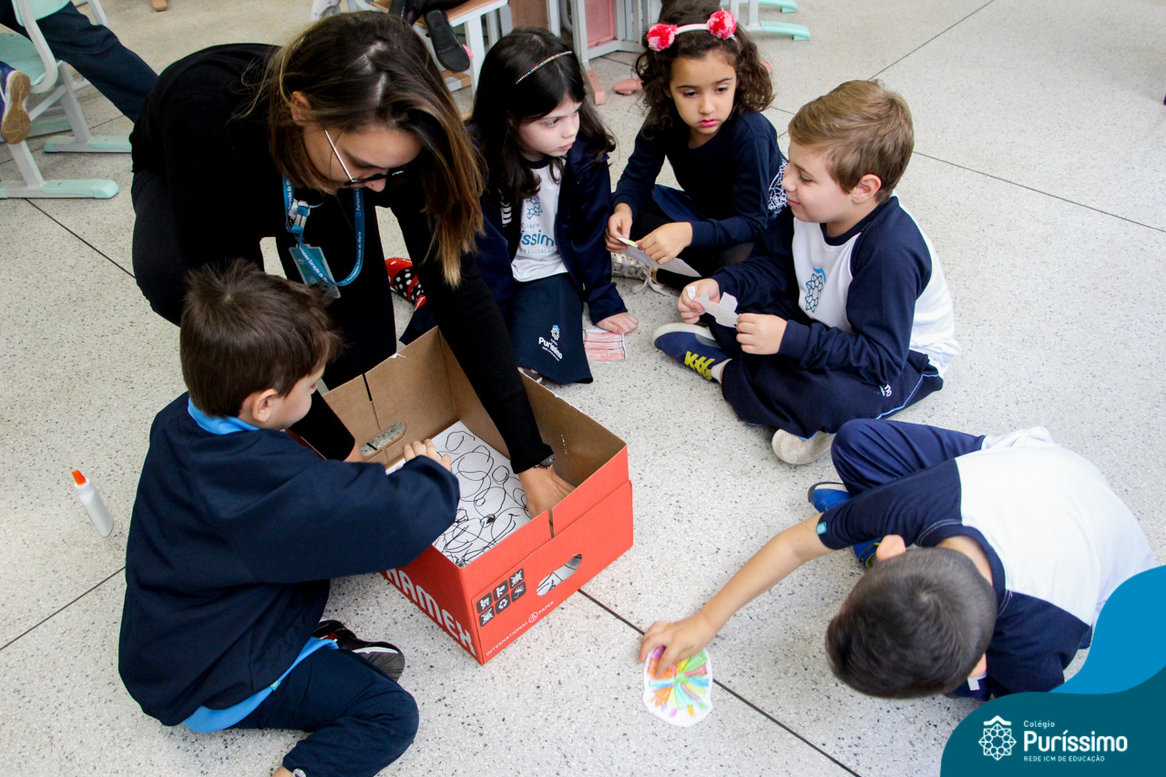 Em busca de inserir os alunos na Cultura Maker, as professoras do Pré N2, resolveram construir uma maquete da sala de aula, já que as turmas estavam trabalhando sobre o Espaço.
