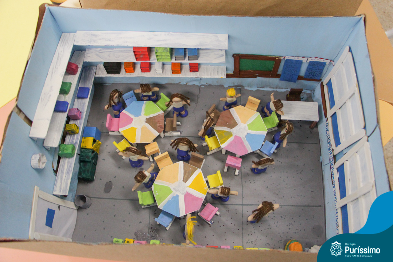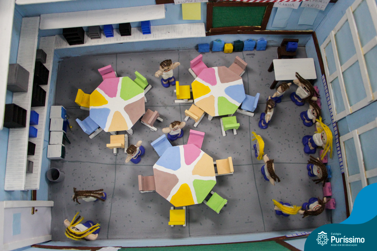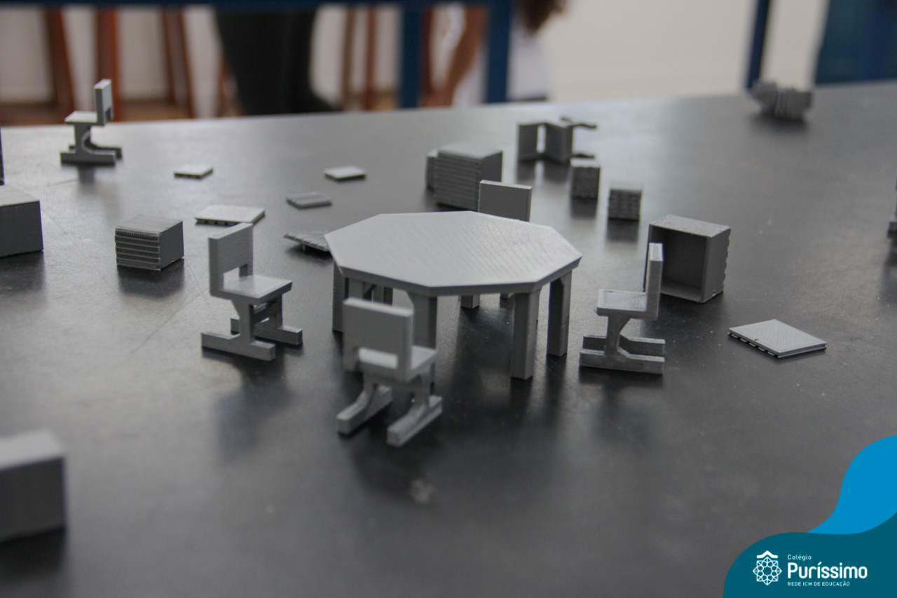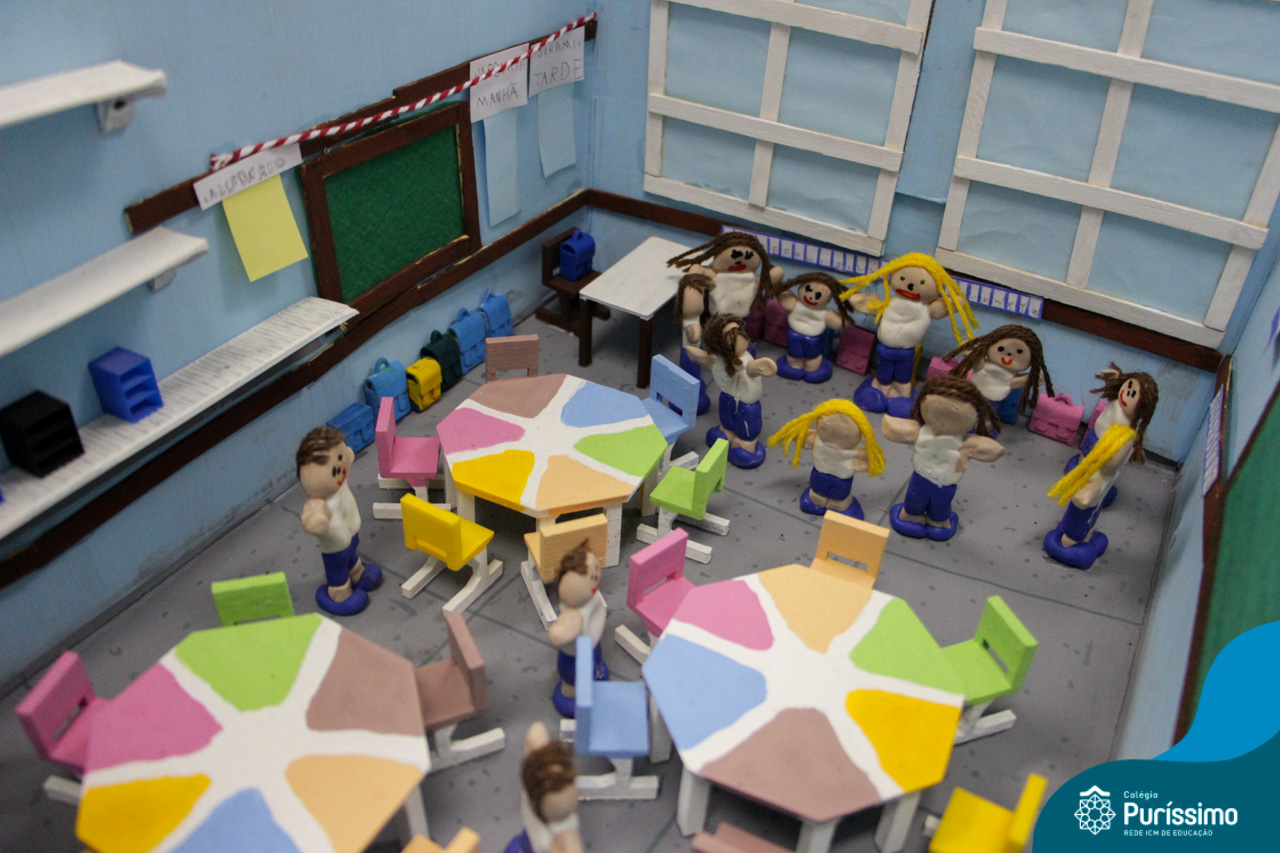 Para finalizar o projeto, foi feita uma maquete com peças feitas na impressora 3D onde as crianças conseguiram reproduzir o mais próximo do real o espaço da sala de aula, as crianças confeccionaram também o próprio bonequinho com biscuit para colocar dentro da sala.