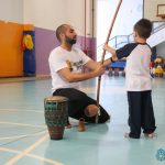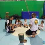 Ele juntamente com seu filho demonstrou a capoeira, fazendo as crianças se divertirem e aprenderem um pouco desta arte, bem como a música, instrumentos e movimentos. Tudo foi feito através de brincadeiras onde as crianças se envolveram. Foi um momento muito prazeroso.