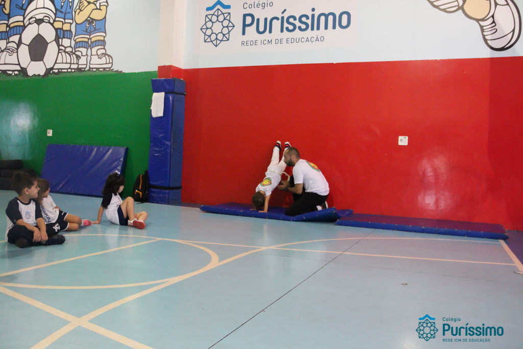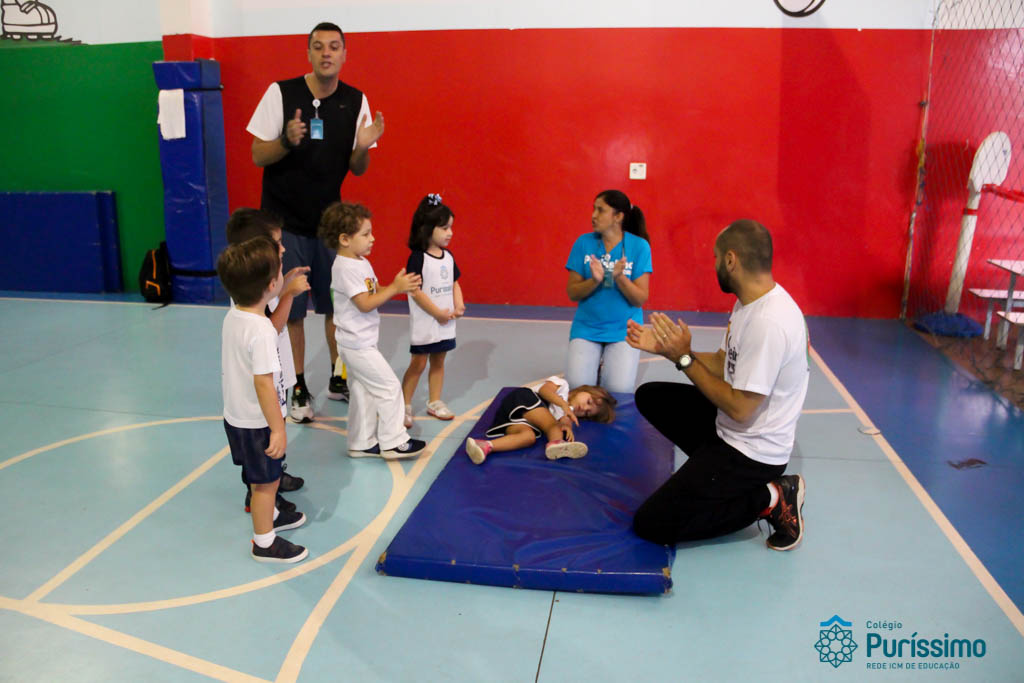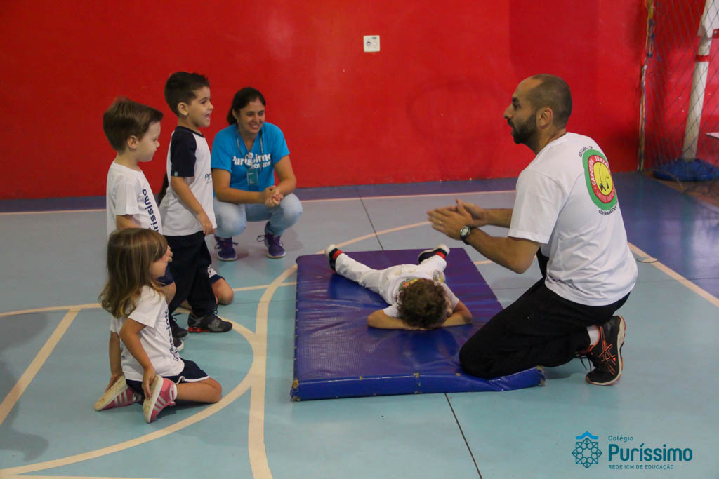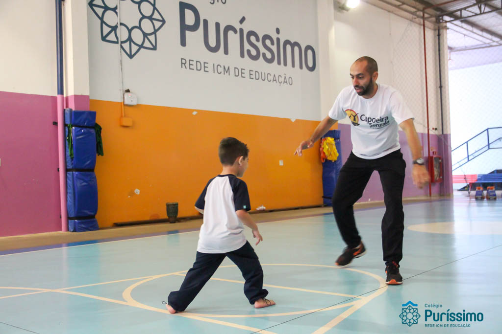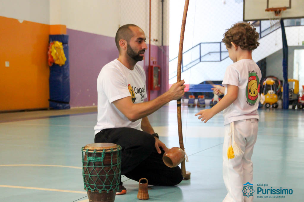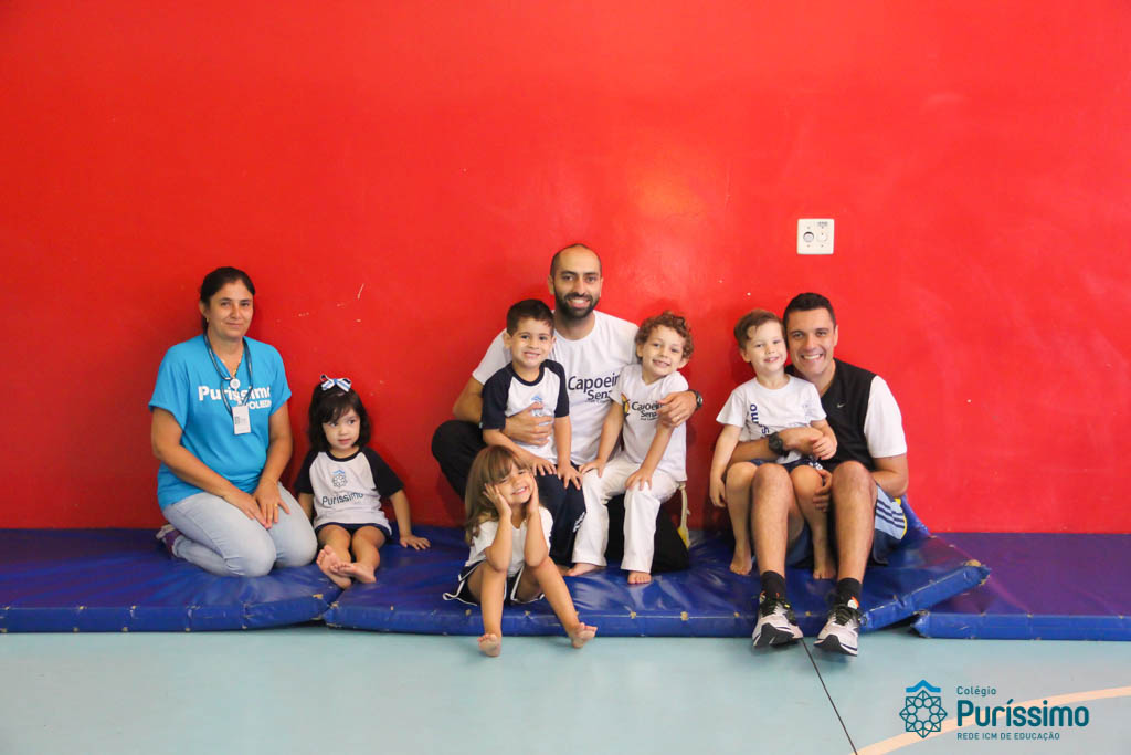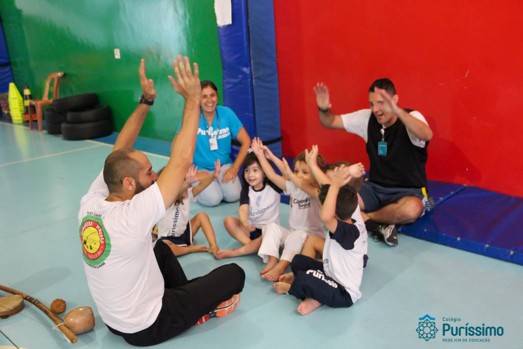 Ontem, 21/03, as crianças do Maternal II da manhã, juntamente com o Tio Lú e a Tia Fran, receberam a visita do Prof. Thercio, pai do aluno Antônio e que é capoeirista.