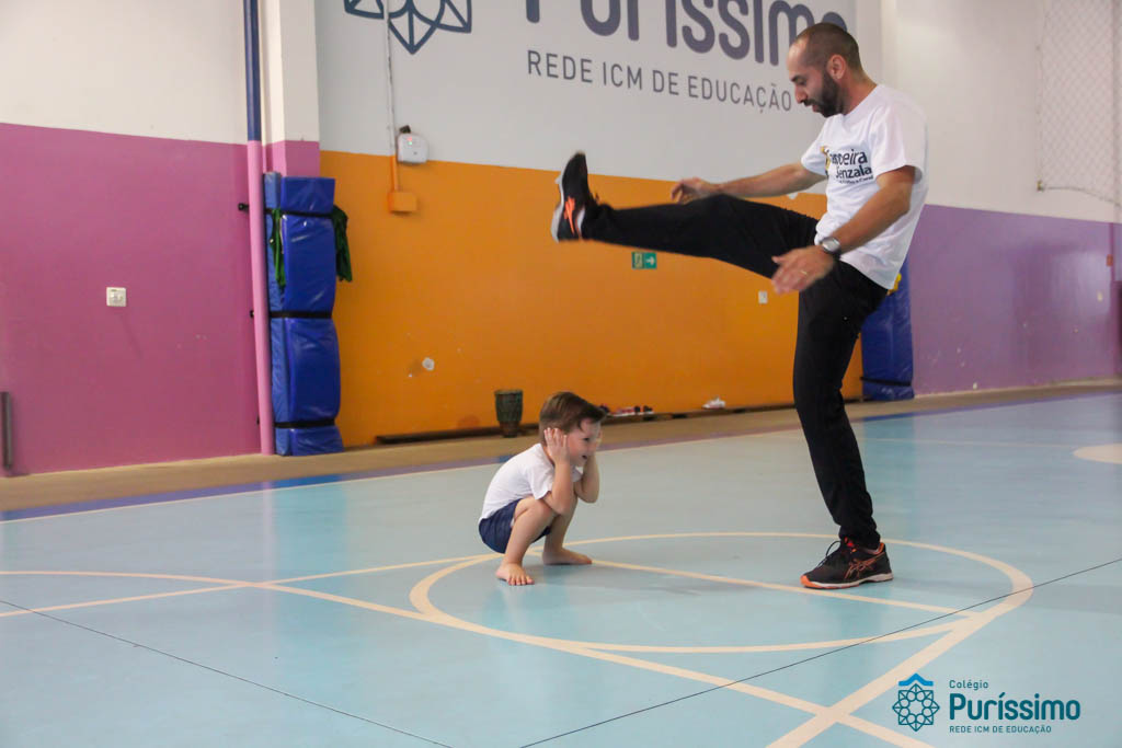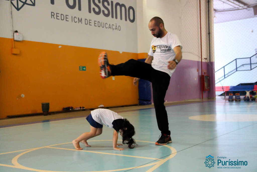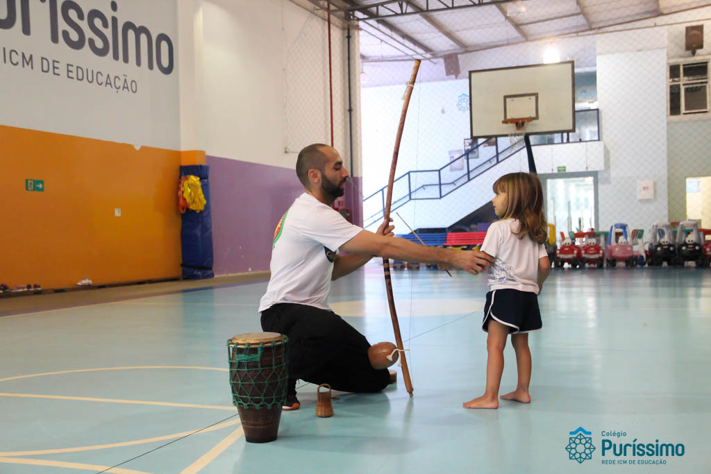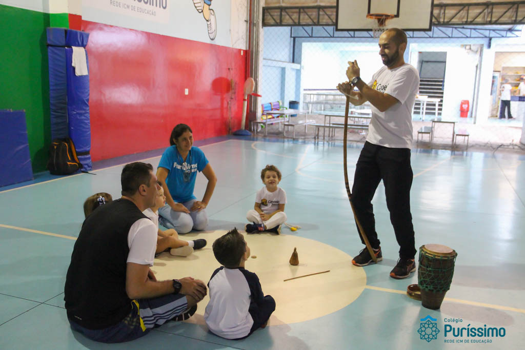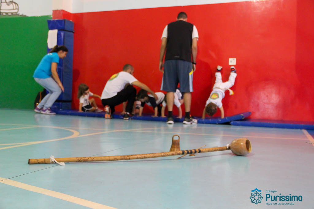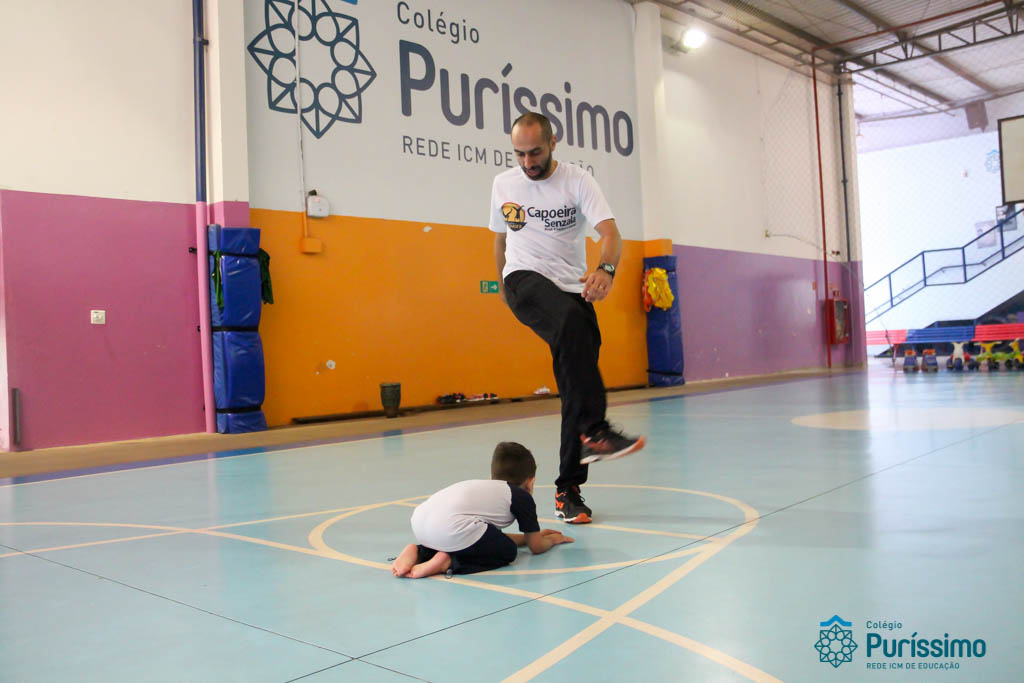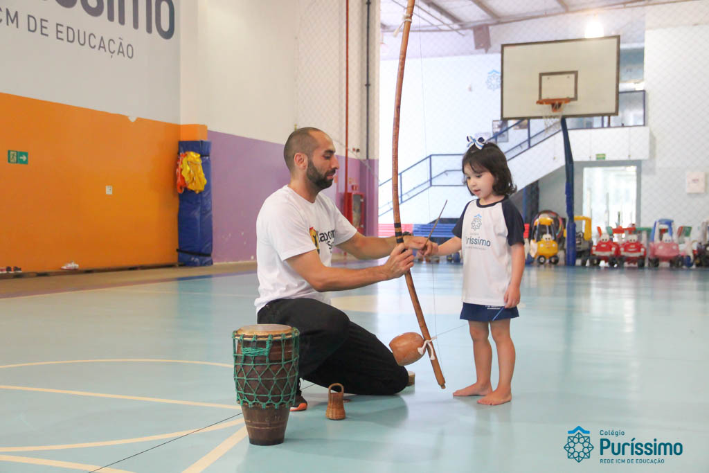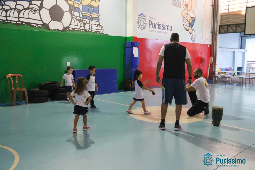 Ele juntamente com seu filho demonstrou a capoeira, fazendo as crianças se divertirem e aprenderem um pouco desta arte, bem como a música, instrumentos e movimentos. Tudo foi feito através de brincadeiras onde as crianças se envolveram. Foi um momento muito prazeroso.