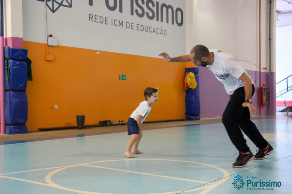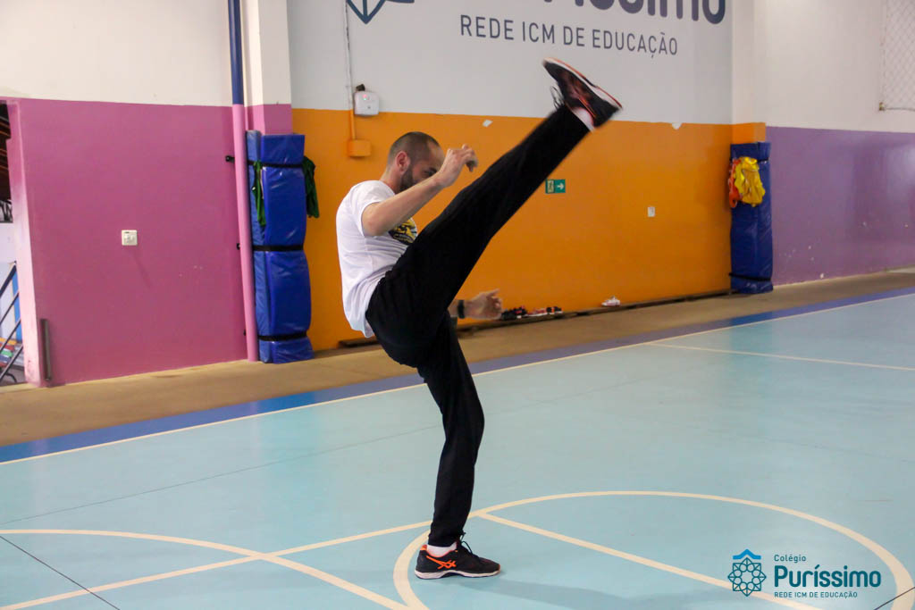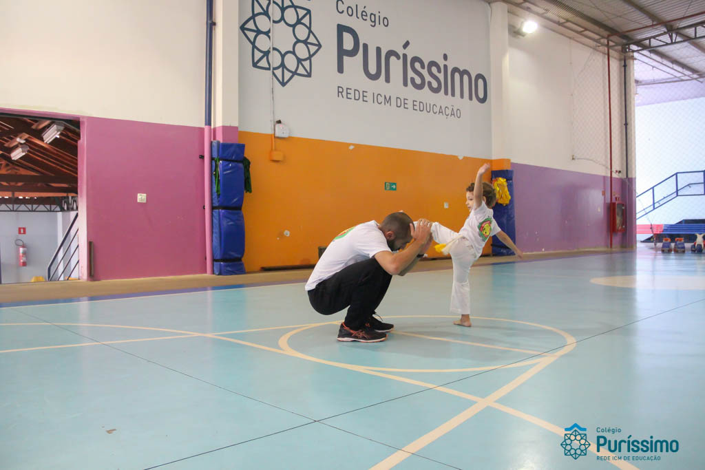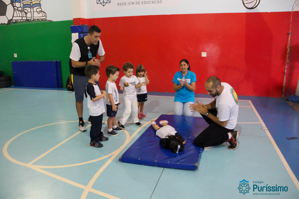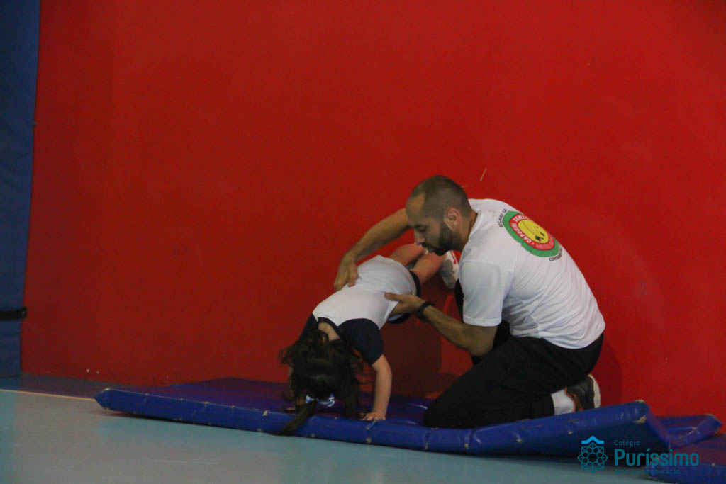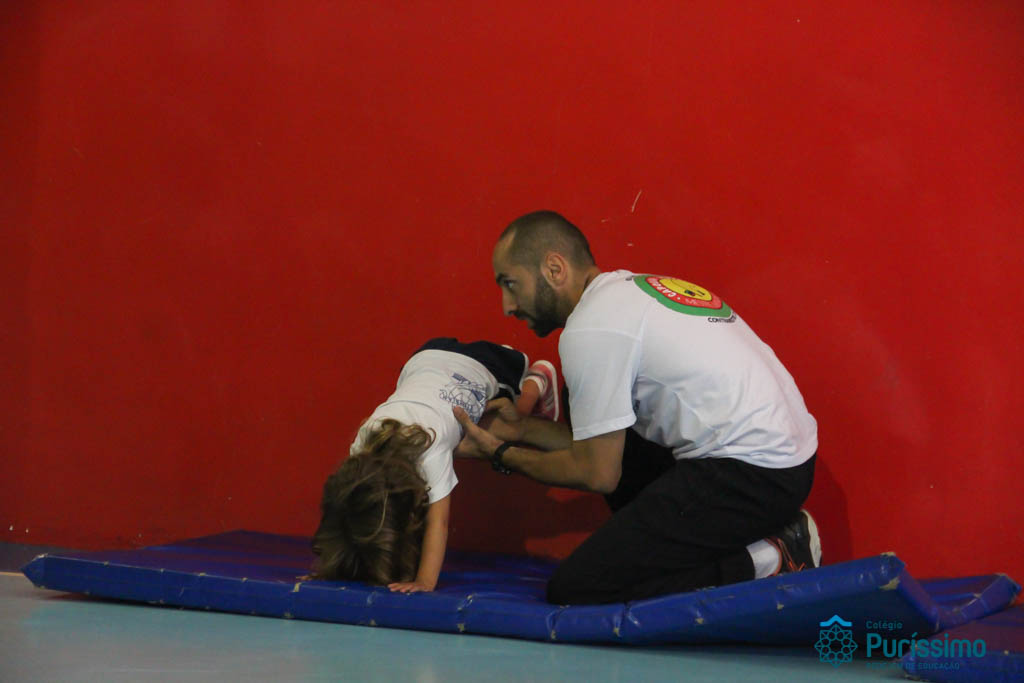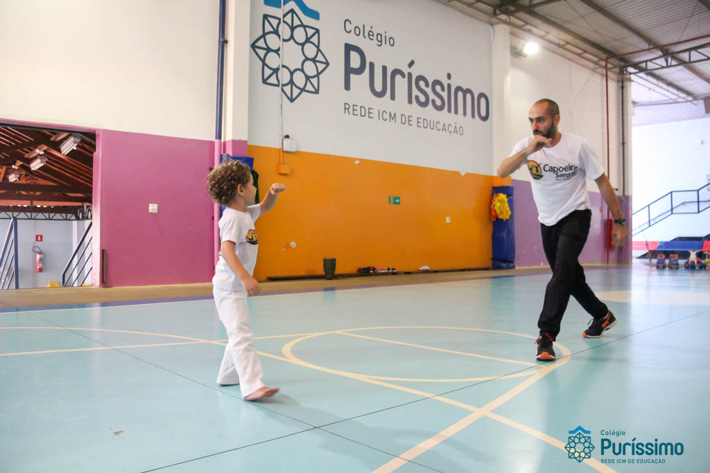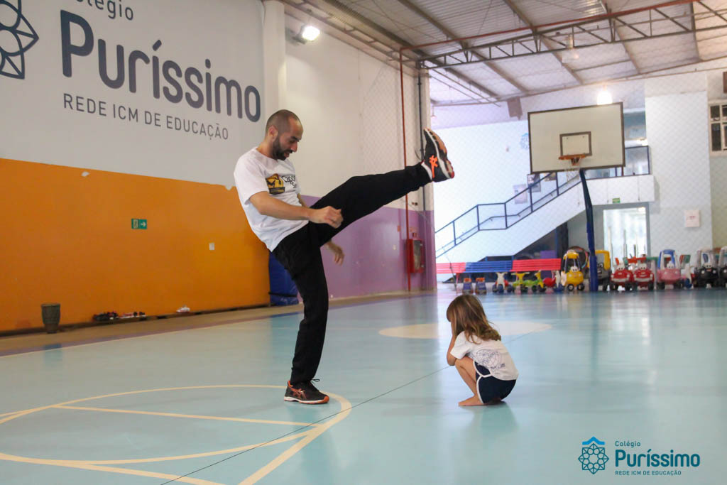 Ele juntamente com seu filho demonstrou a capoeira, fazendo as crianças se divertirem e aprenderem um pouco desta arte, bem como a música, instrumentos e movimentos. Tudo foi feito através de brincadeiras onde as crianças se envolveram. Foi um momento muito prazeroso.