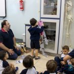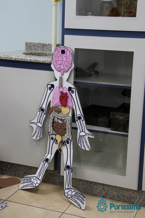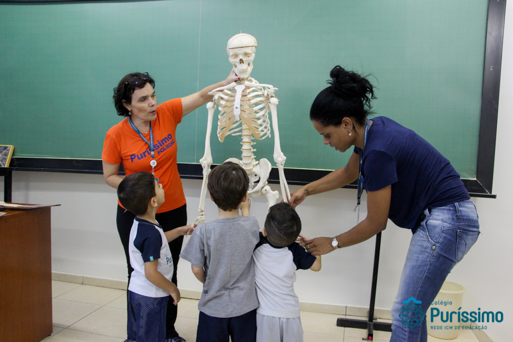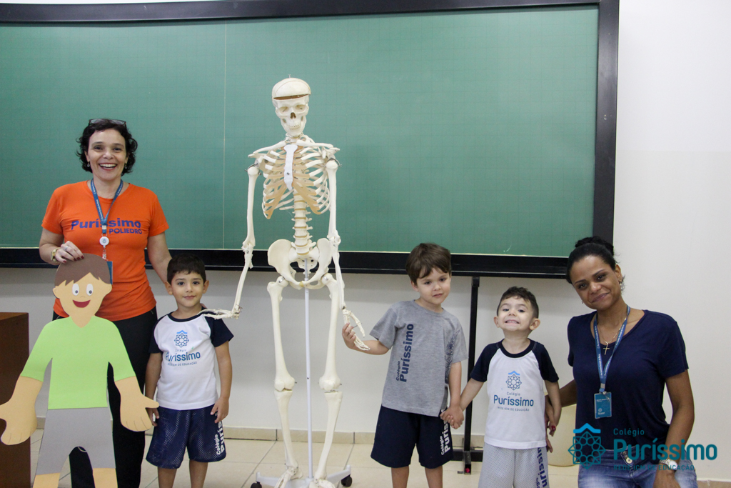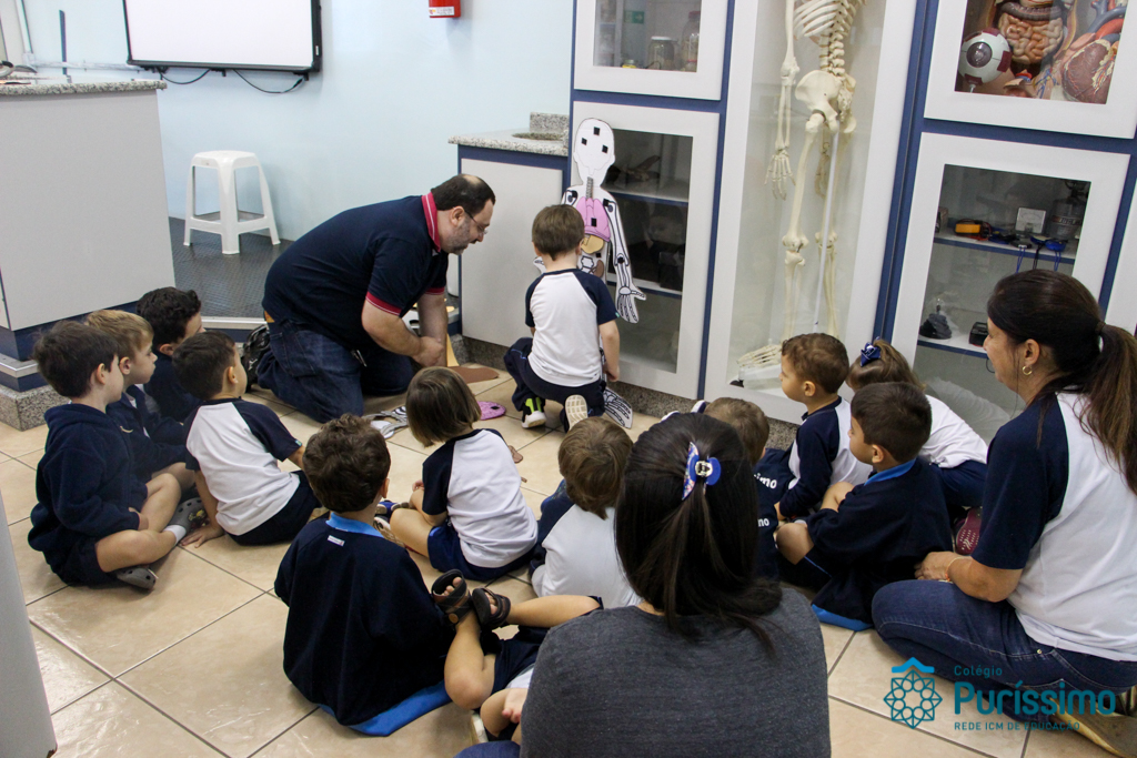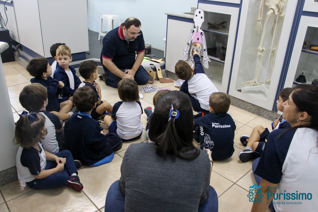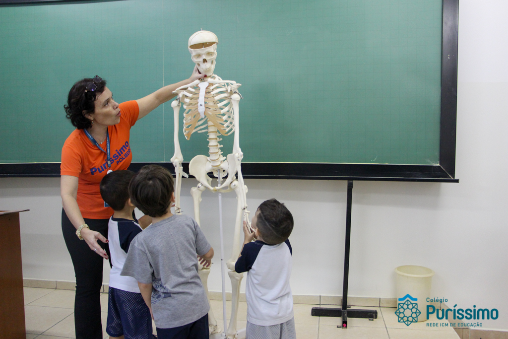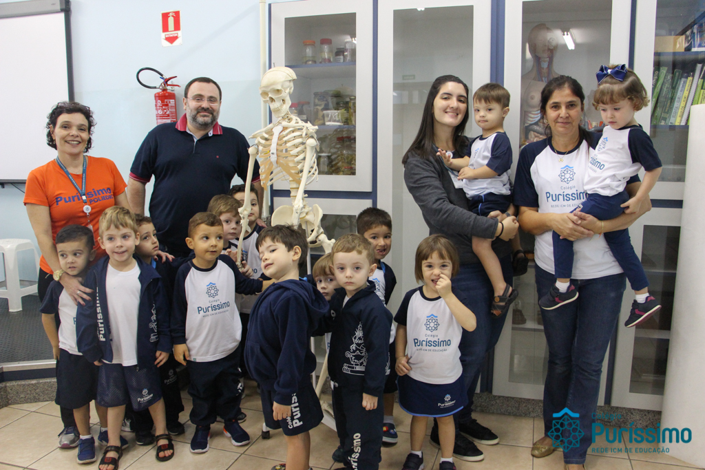 Em maio recebemos a visita do pai do Arthur (Maternal 2 manhã), o Dr. Marcelo Chiode Bueno. As crianças fizeram uma visita ao laboratório de Biologia do Ensino Médio e conversaram sobre o corpo humano, elas observaram e ajudaram a montar os órgãos em um boneco e o esqueleto humano.
