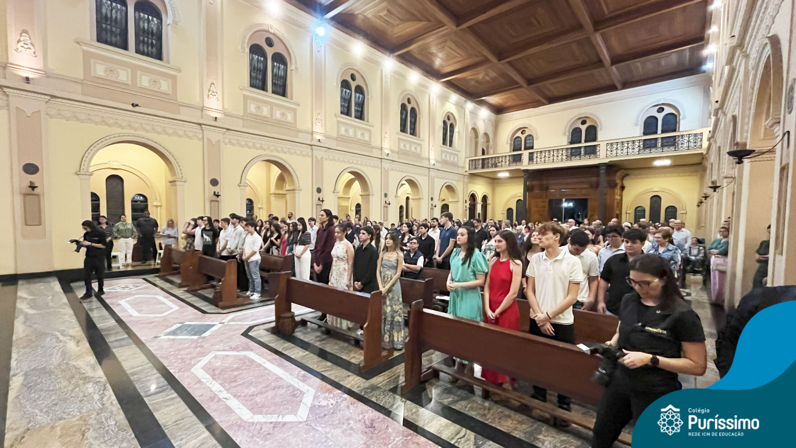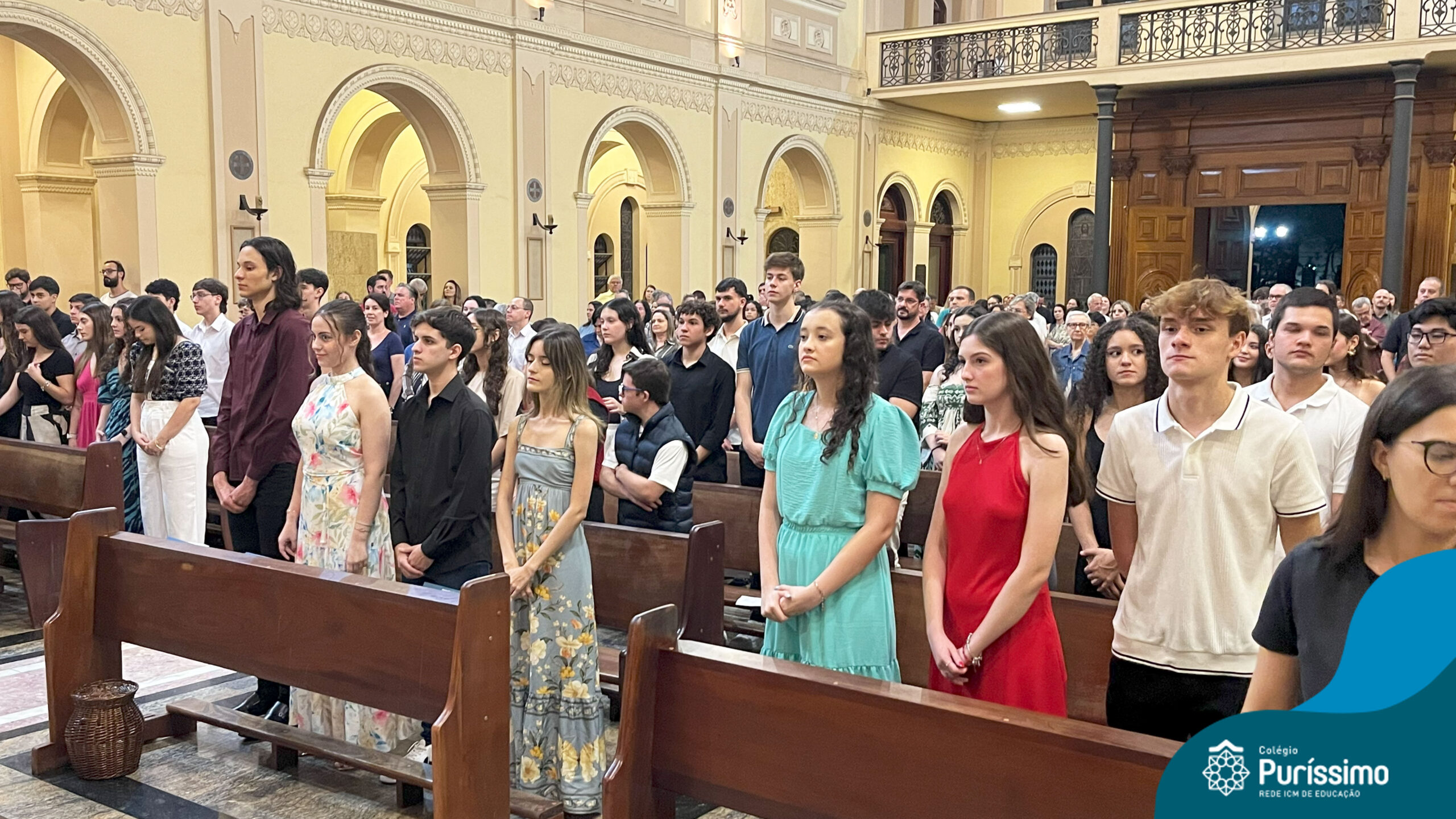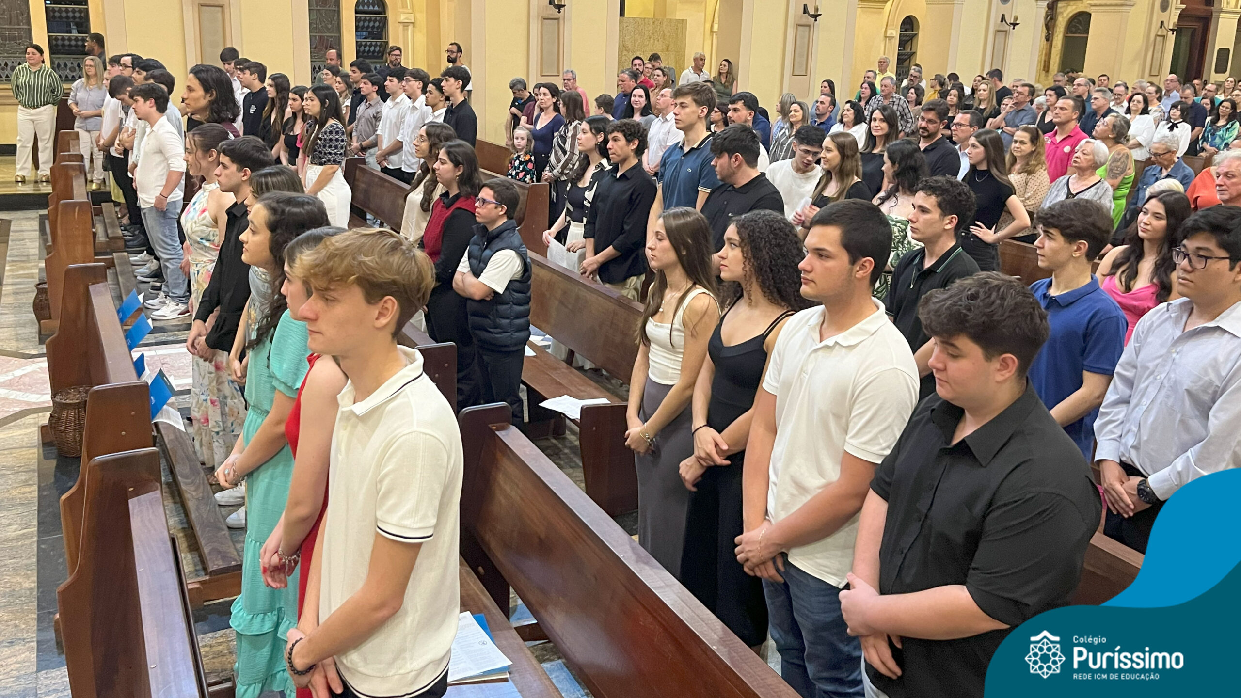 Com espírito de alegria e gratidão, os alunos das 3ªs séries do Ensino Médio participaram da missa em ação de graças, um momento para louvar e agradecer pela caminhada percorrida, que agora os conduz a uma nova etapa. Na Eucaristia, os alunos foram convidados a fazer de Deus a rocha que sustentará seus próximos passos e as decisões futuras.