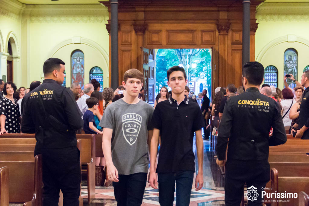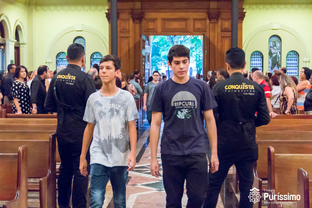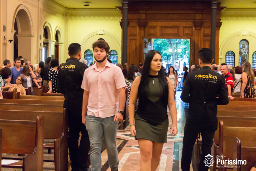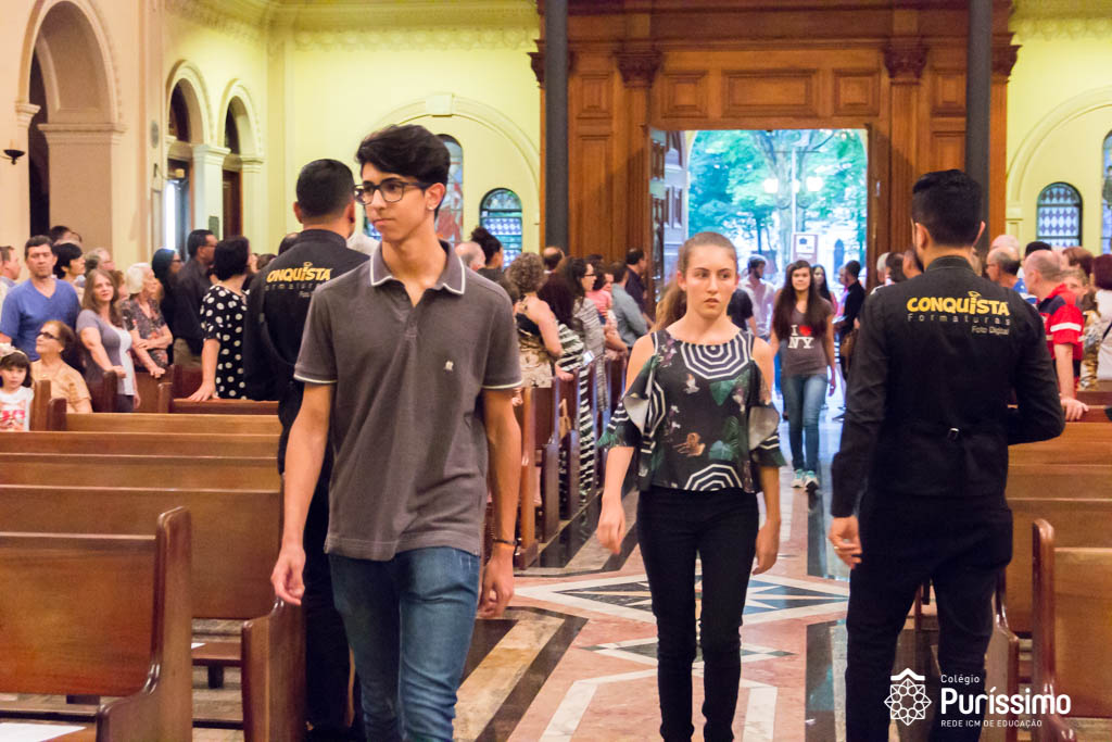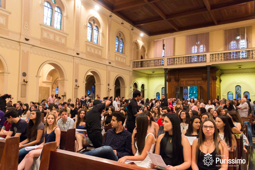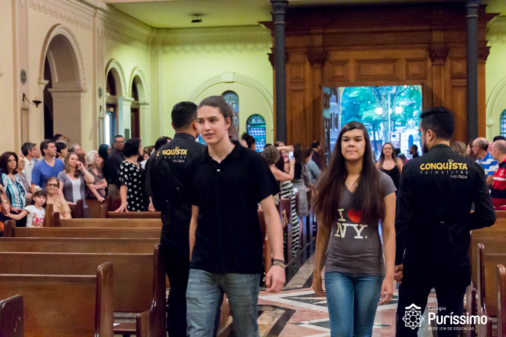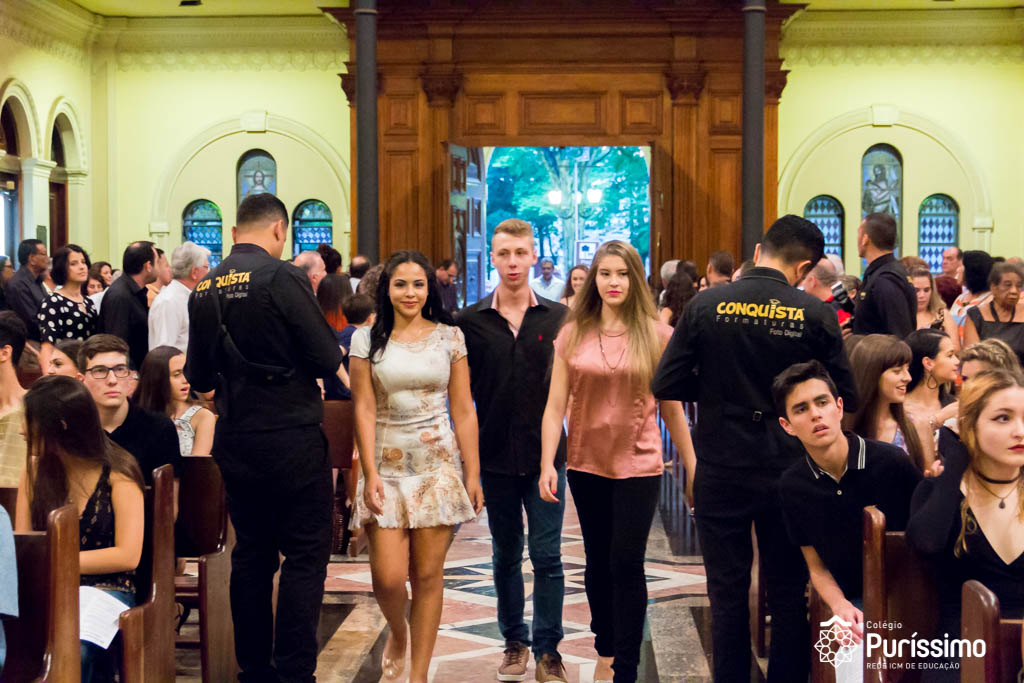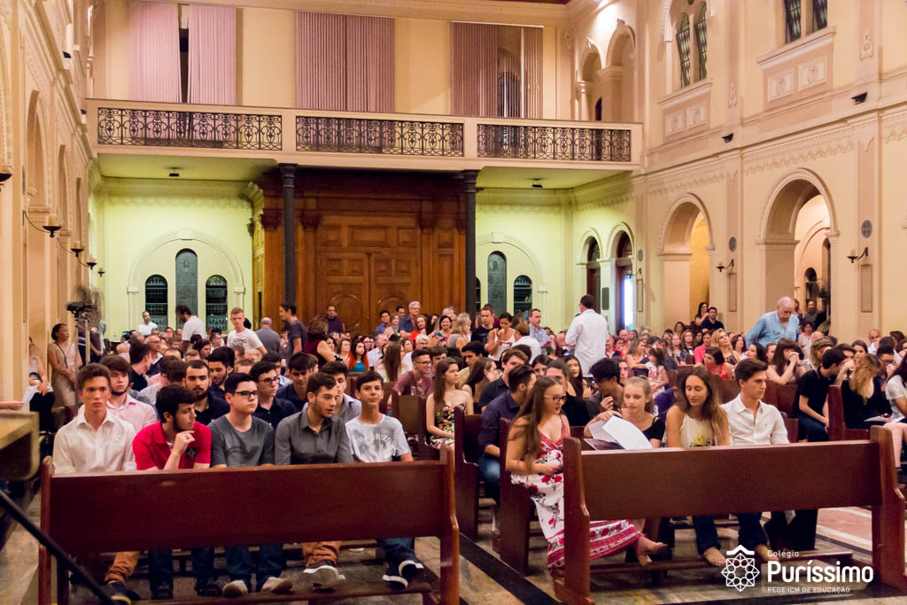A comunidade educativa do Colégio Puríssimo, reuniu-se na última sexta, dia 24/11, na Igreja Matriz São João Batista, para a celebração de ação de graças. Direção, coordenadores, professores, pais e formandos, fizeram o agradecimento a Deus, por esta etapa vencida. A liturgia contou com o coral Juventude ICM e a participação dos formandos. Durante a celebração, cada aluno foi exortado para a pratica do bem, para a escolha que melhor lhe representa para a vida, bem como a colaborar na construção de uma sociedade mais justa.